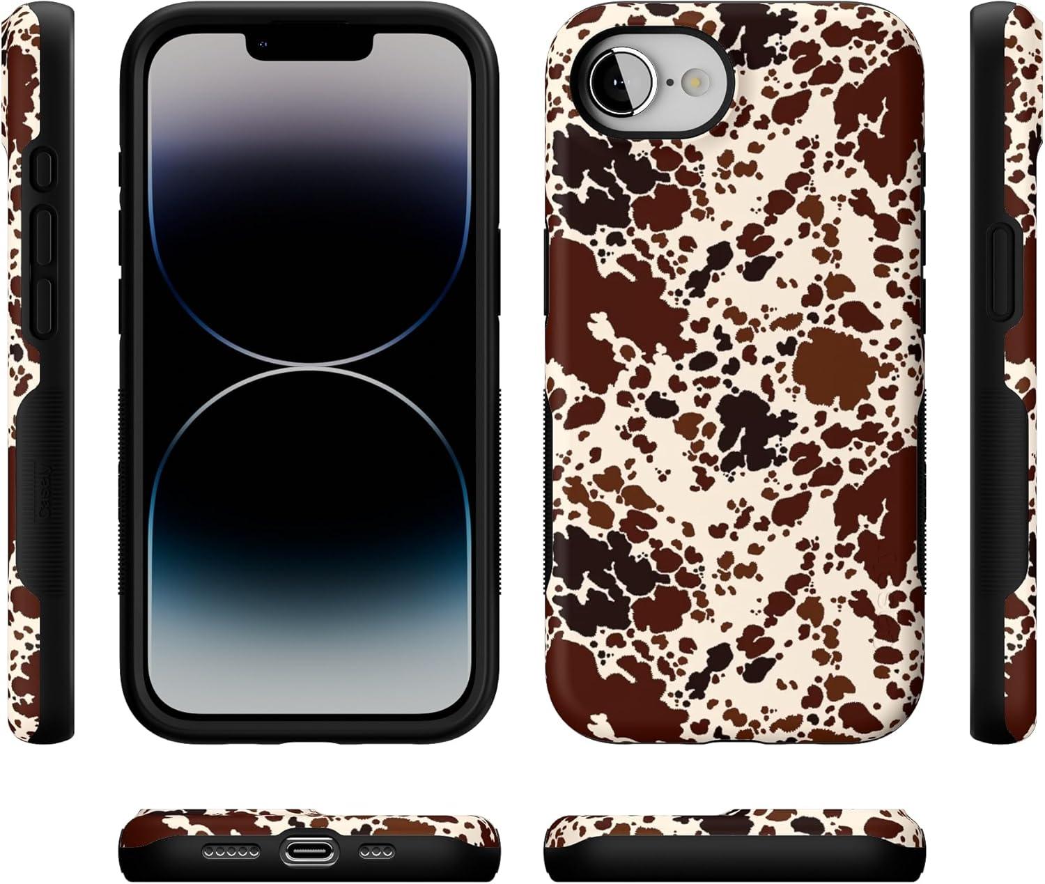 Casely iPhone 16e Case | Love Me Knot | Blue Bow | Bold Protective Design | Compatible with MagSafe(Cowgirl Envy | Cow Print)