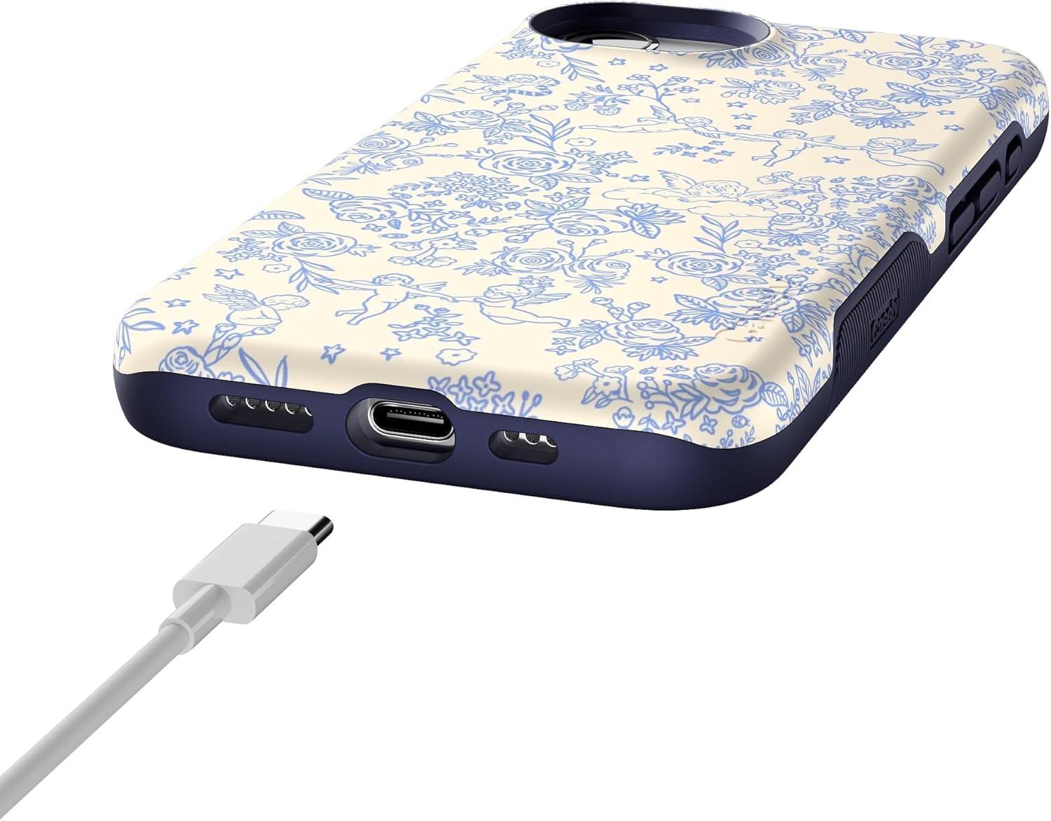 Casely iPhone 16e Case | Love Me Knot | Blue Bow | Bold Protective Design | Compatible with MagSafe(Cupid’s Canvas | Periwinkle Floral)