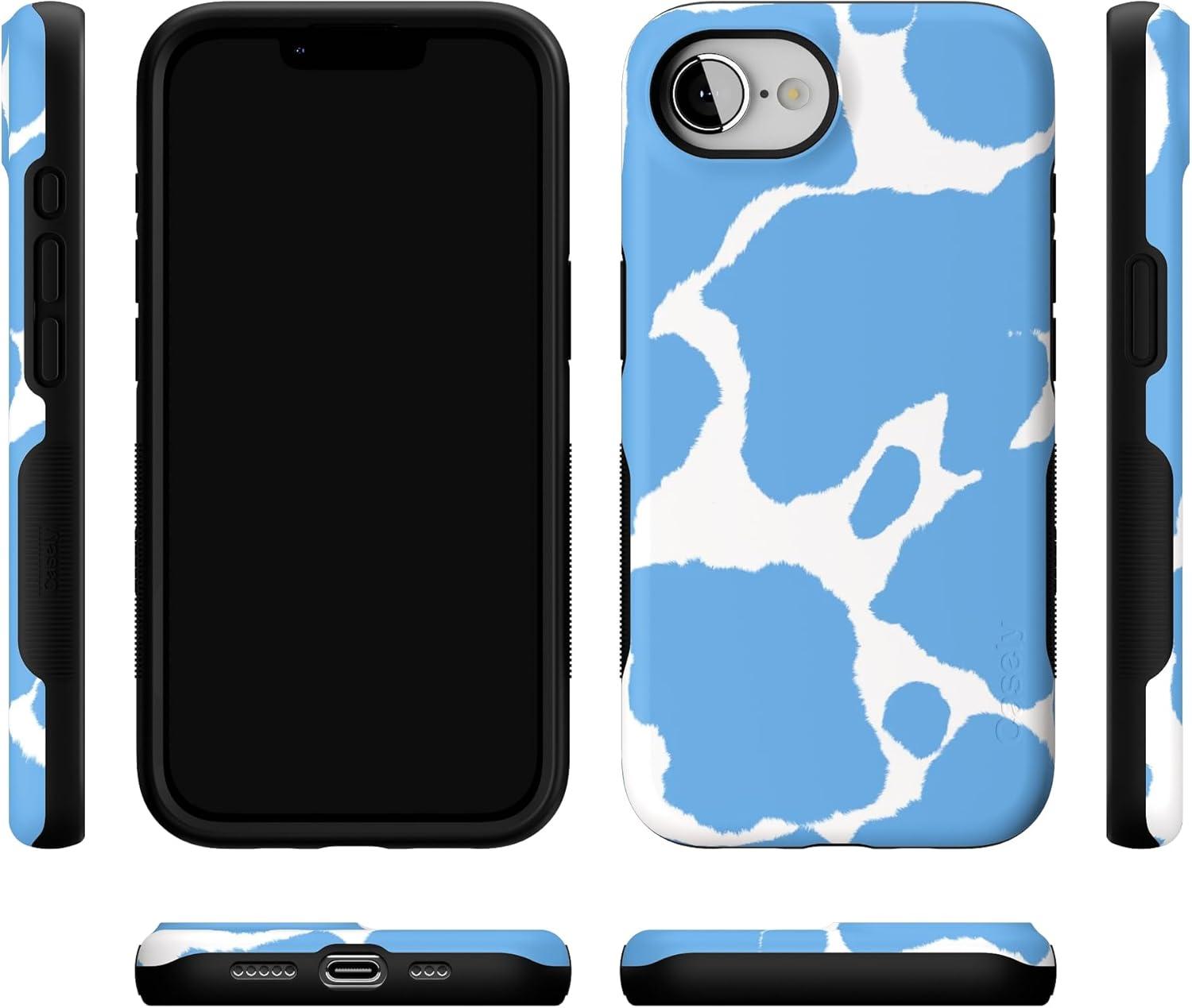 Casely iPhone 16e Case | Love Me Knot | Blue Bow | Bold Protective Design | Compatible with MagSafe(Current MOOd | Light Blue Cow Print)
