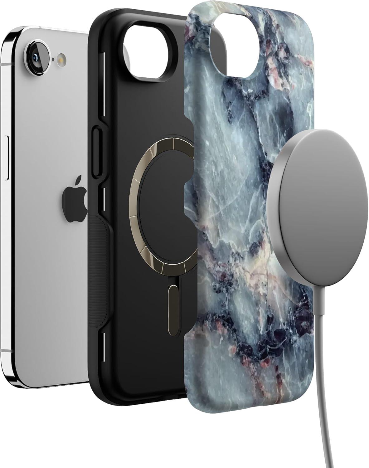 Casely iPhone 16e Case | Love Me Knot | Blue Bow | Bold Protective Design | Compatible with MagSafe(Deep Sea | Blue Marble)