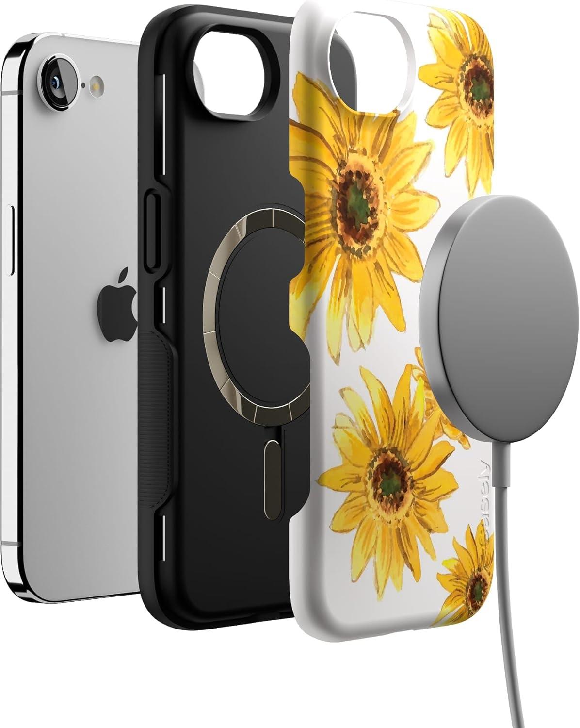 Casely iPhone 16e Case | Love Me Knot | Blue Bow | Bold Protective Design | Compatible with MagSafe(Golden Garden | Yellow Sunflower Floral)