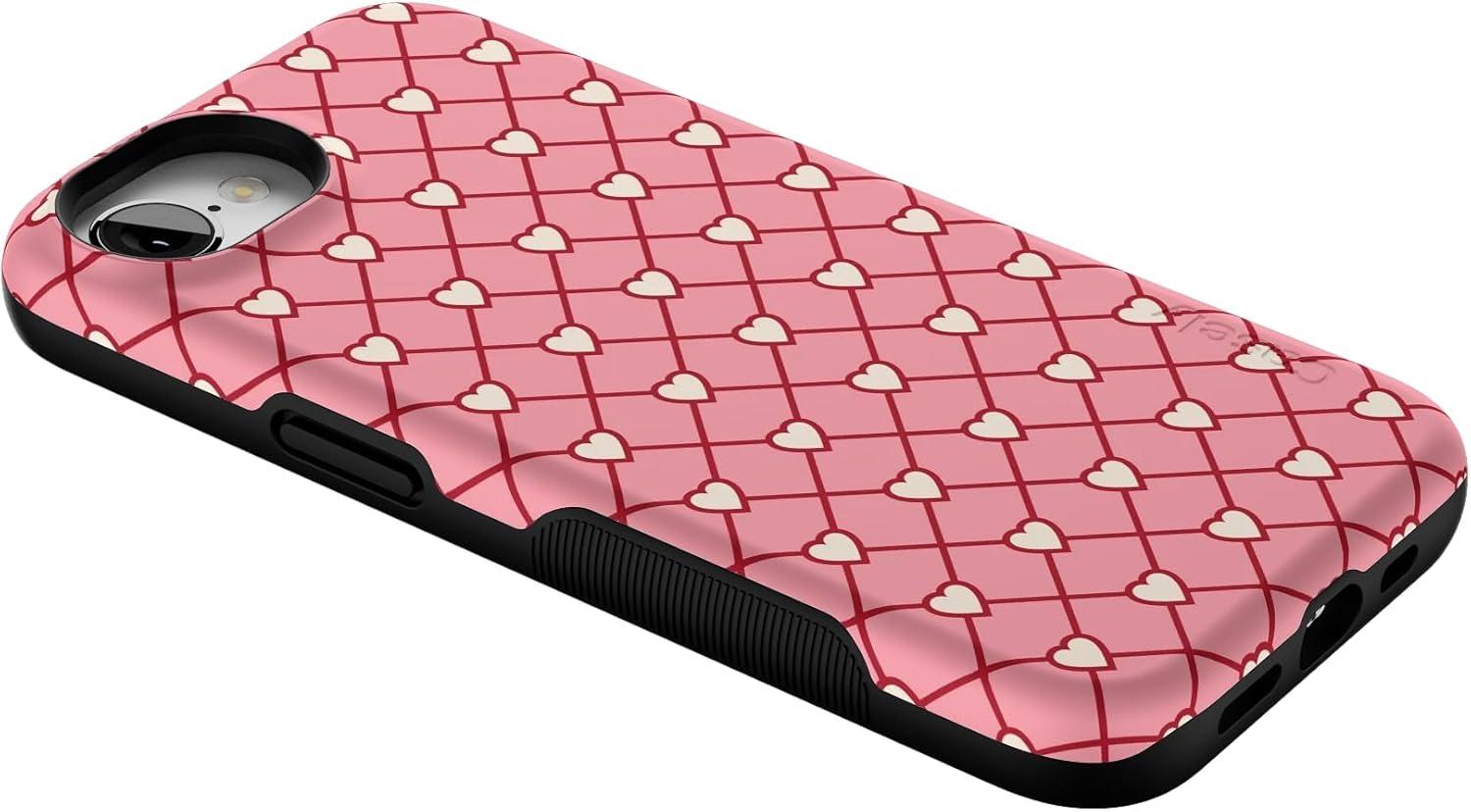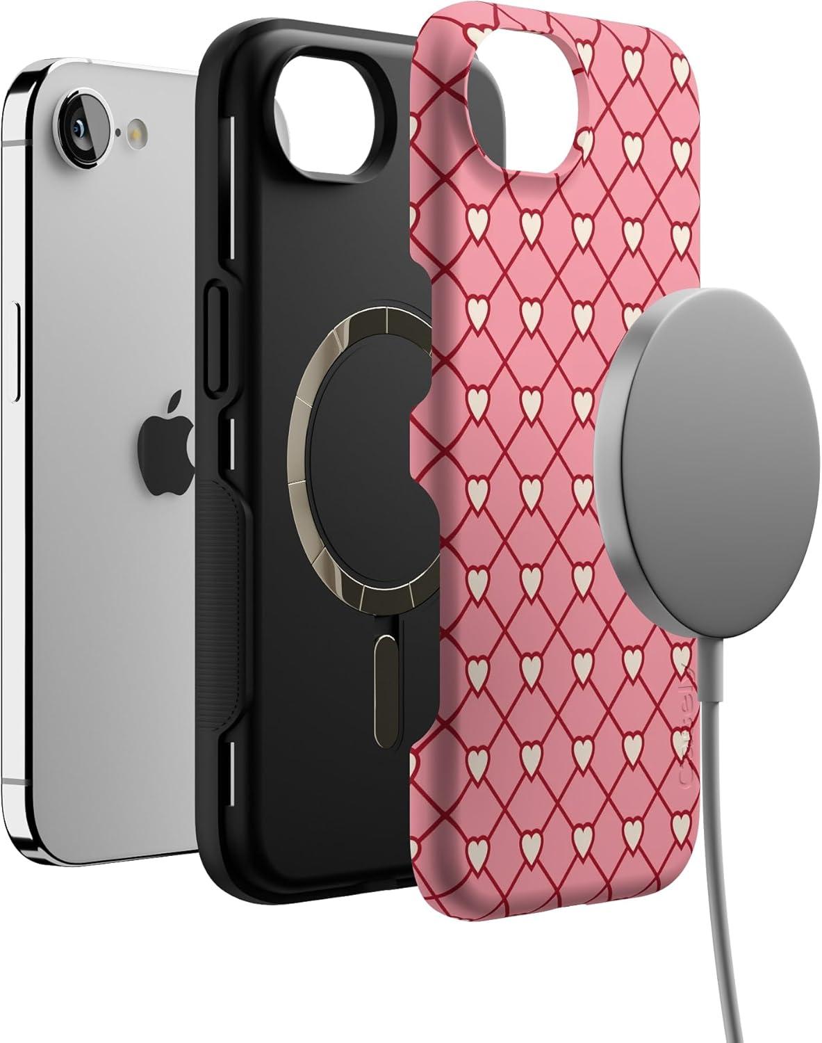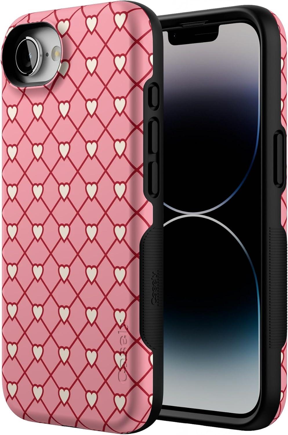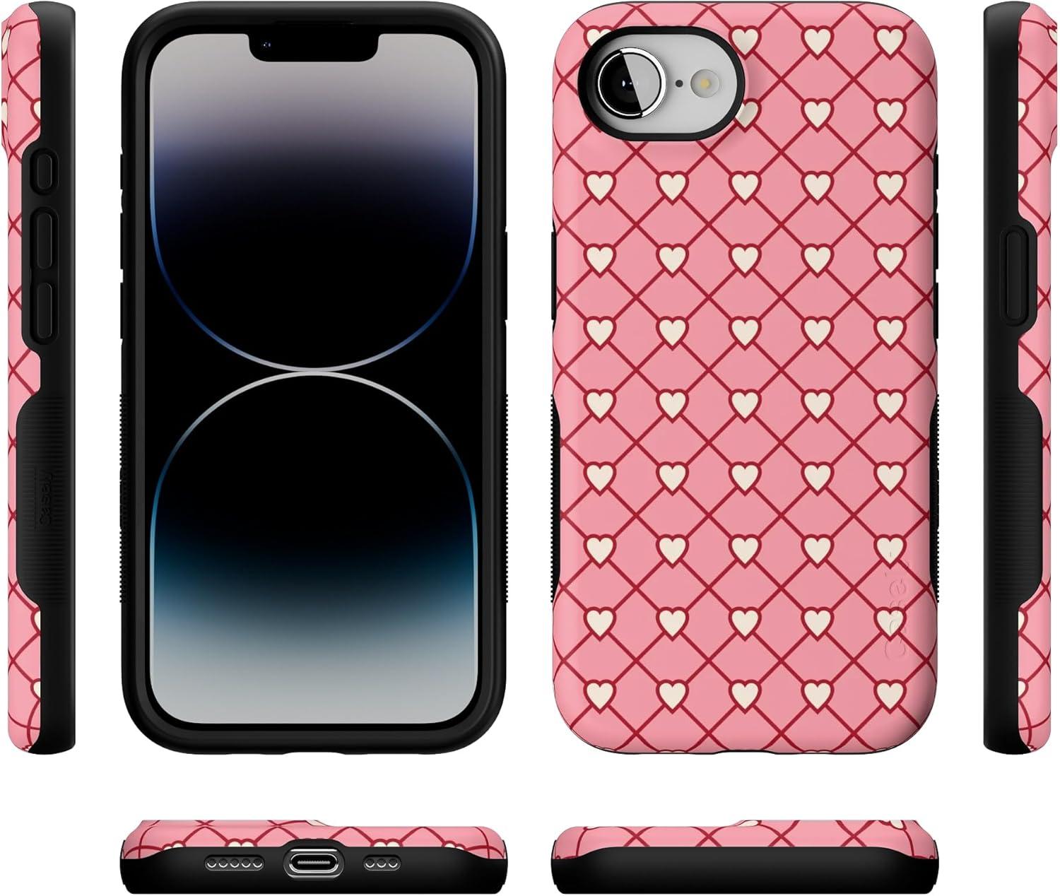 Casely iPhone 16e Case | Love Me Knot | Blue Bow | Bold Protective Design | Compatible with MagSafe(Love Locks | Pink Hearts)