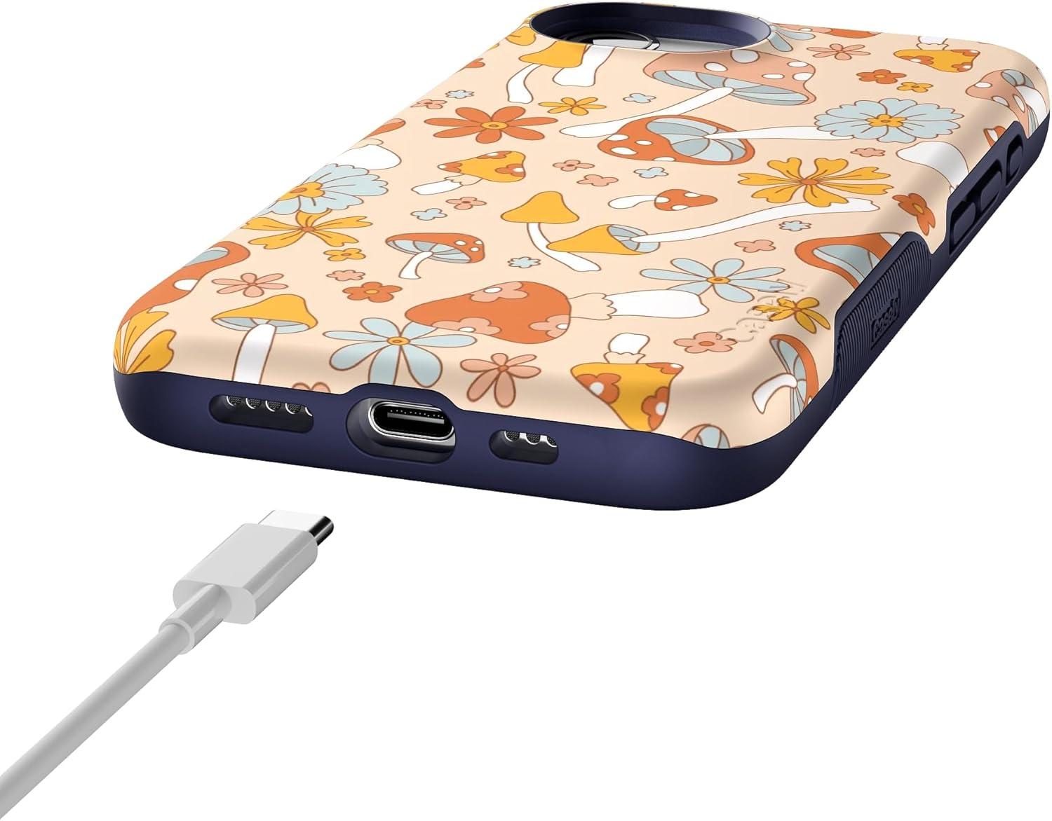 Casely iPhone 16e Case | Love Me Knot | Blue Bow | Bold Protective Design | Compatible with MagSafe(Mushroom Magic | Retro Floral)