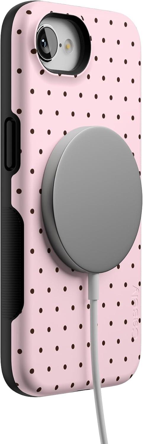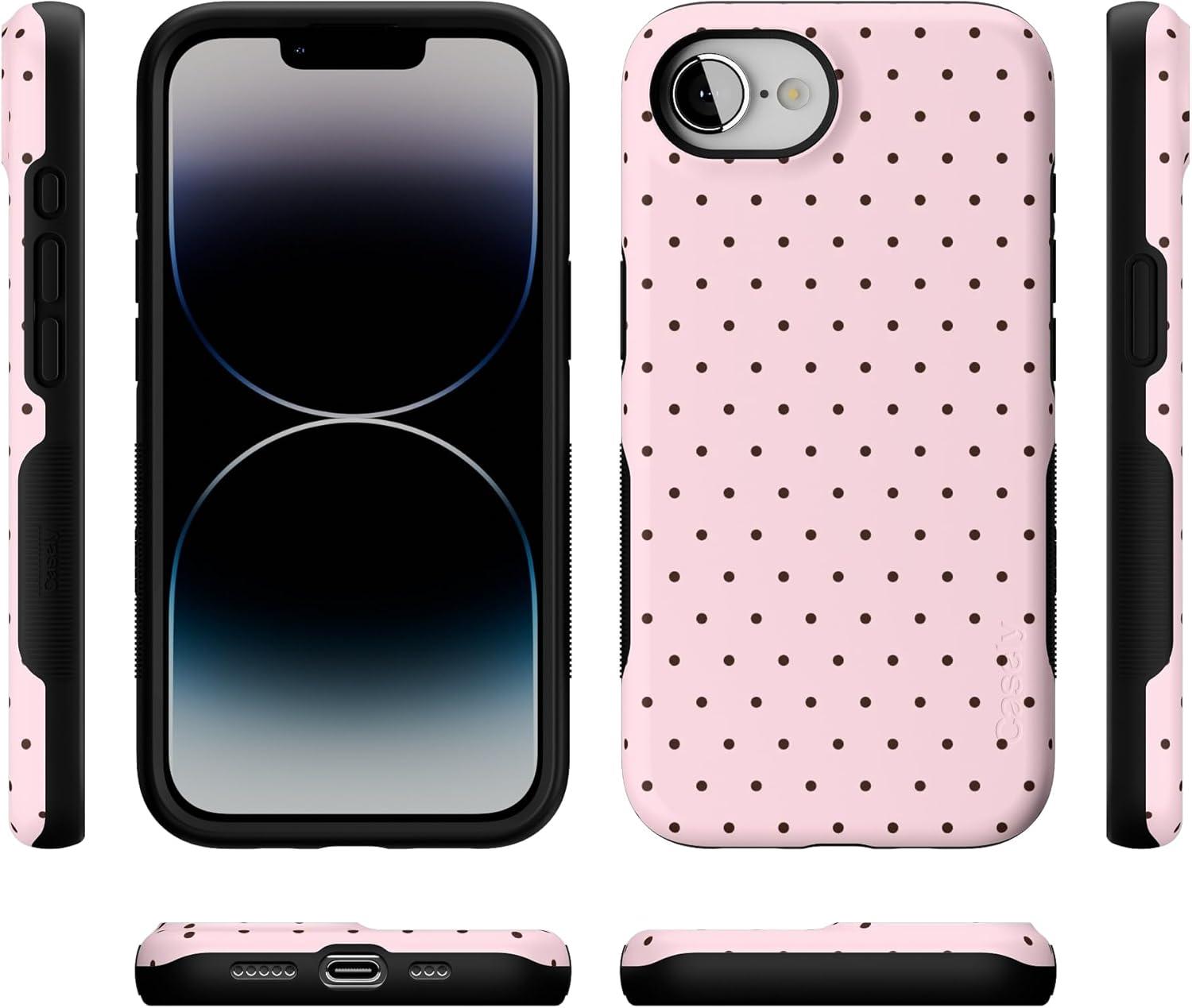 Casely iPhone 16e Case | Love Me Knot | Blue Bow | Bold Protective Design | Compatible with MagSafe(On the Dot | Pink & Brown Polka Dot)