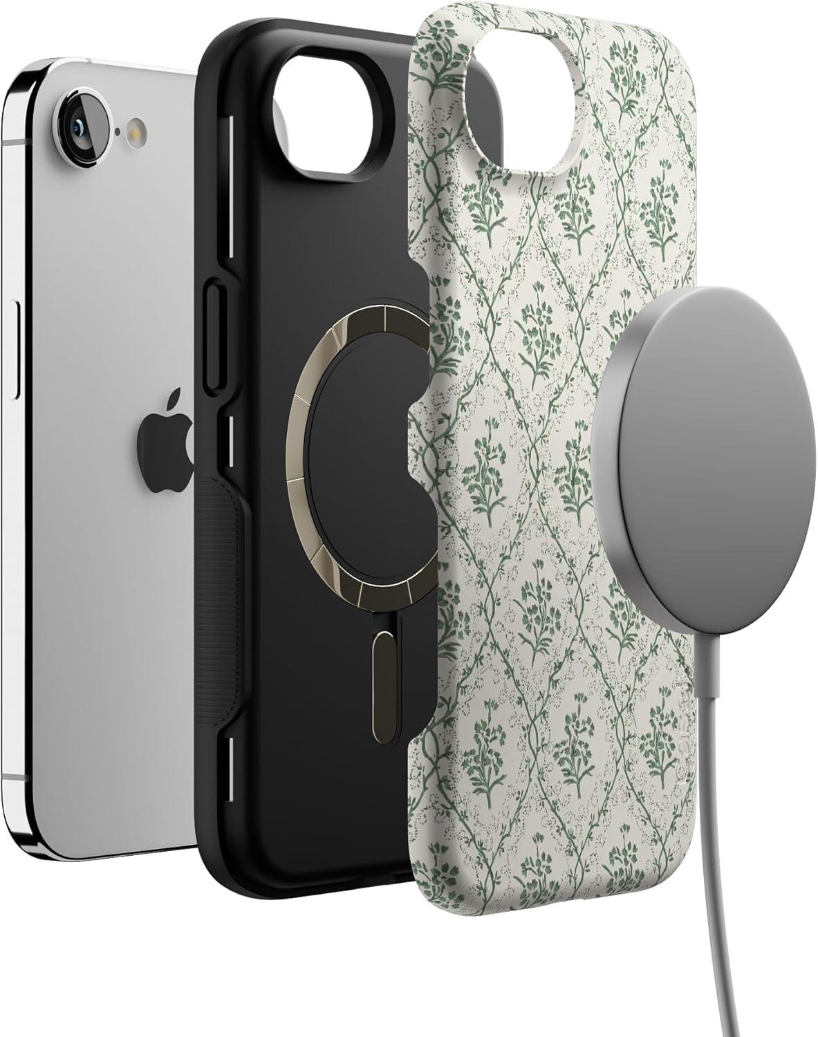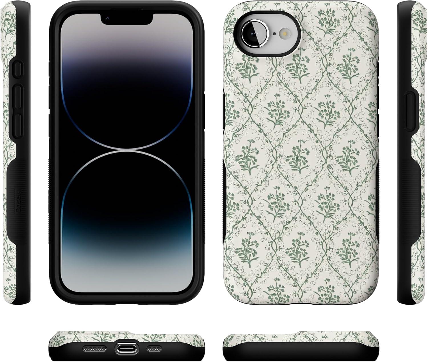 Casely iPhone 16e Case | Love Me Knot | Blue Bow | Bold Protective Design | Compatible with MagSafe(Sage Tapestry | Floral Vines)