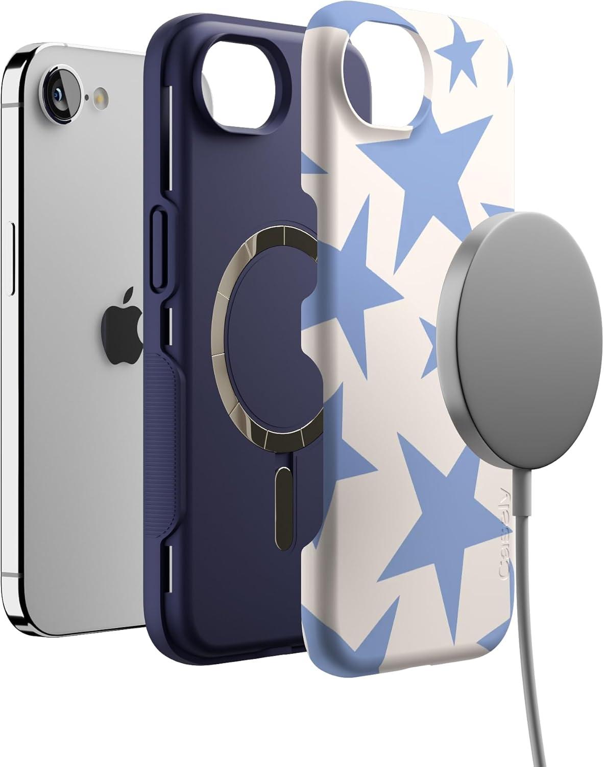 Casely iPhone 16e Case | Love Me Knot | Blue Bow | Bold Protective Design | Compatible with MagSafe(Stars Align | Blue & White Stars)