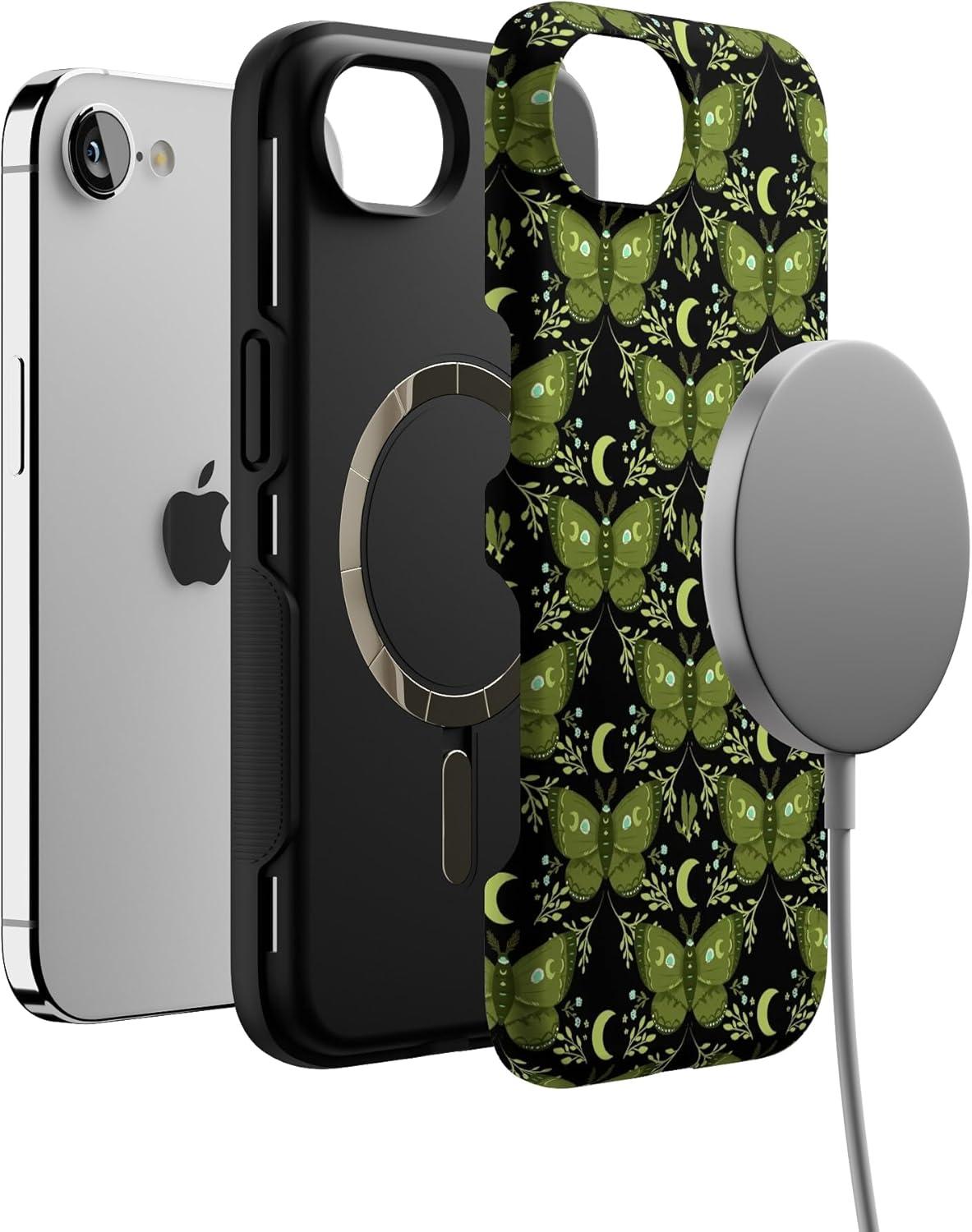 Casely iPhone 16e Case | Mystic Moths | Green Twilight | Bold Protective Design | MagSafe Compatible Design