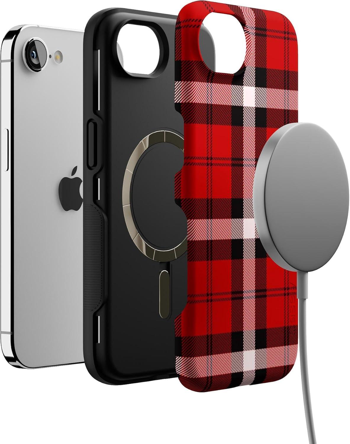 Casely iPhone 16e Case | Pandora | The Met Museum | Bold Protective Design | Compatible with MagSafe(As if! | Red Plaid)