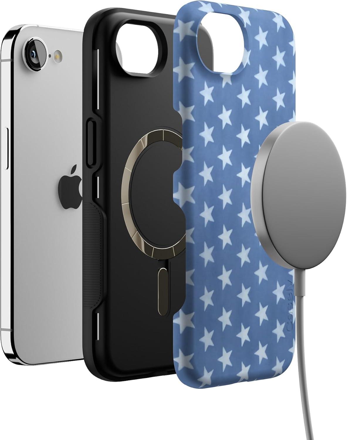 Casely iPhone 16e Case | Pandora | The Met Museum | Bold Protective Design | Compatible with MagSafe(Coastal Blues | Denim Stars)