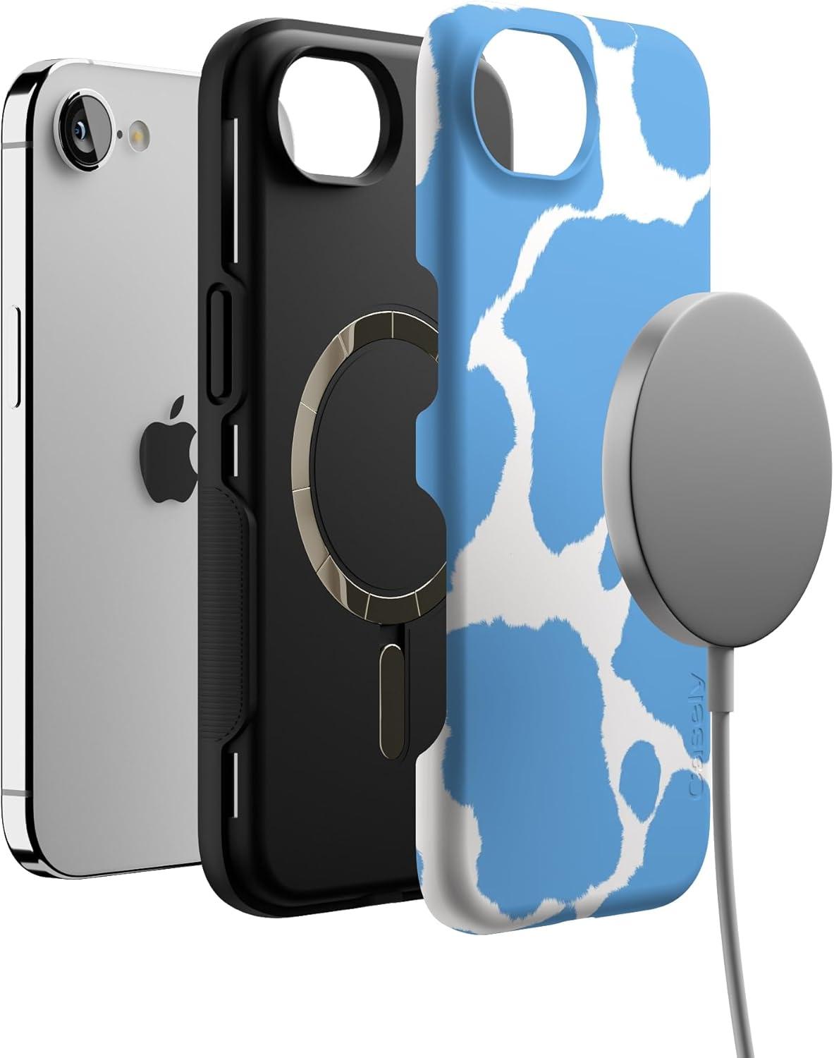 Casely iPhone 16e Case | Pandora | The Met Museum | Bold Protective Design | Compatible with MagSafe(Current MOOd | Light Blue Cow Print)