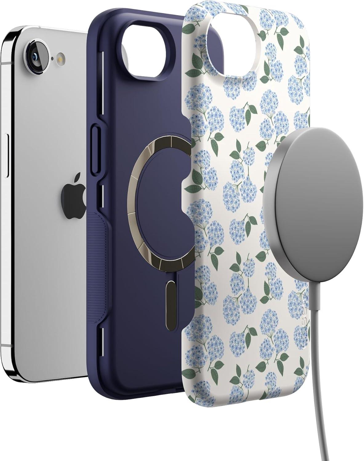 Casely iPhone 16e Case | Pandora | The Met Museum | Bold Protective Design | Compatible with MagSafe(Nantucket Cottage | Blue Hydrangea)
