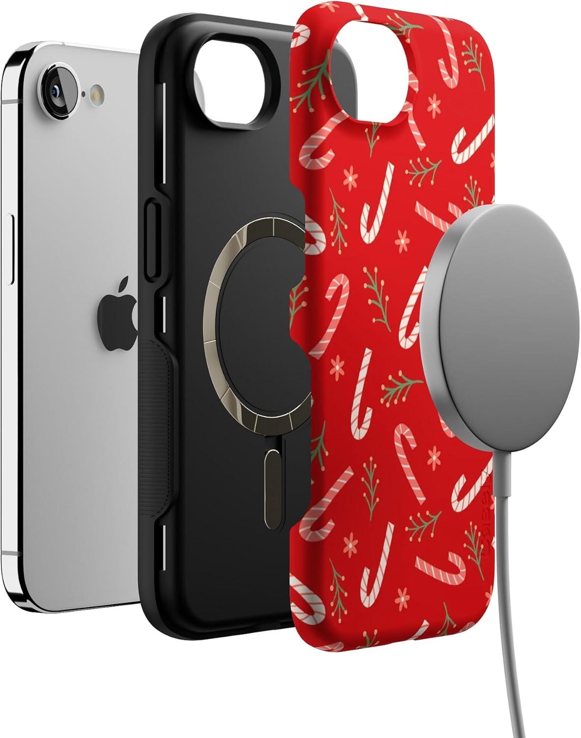 Casely iPhone 16e Case | Peppermint Kiss | Candy Cane | Bold Protective Design | MagSafe Compatible Design
