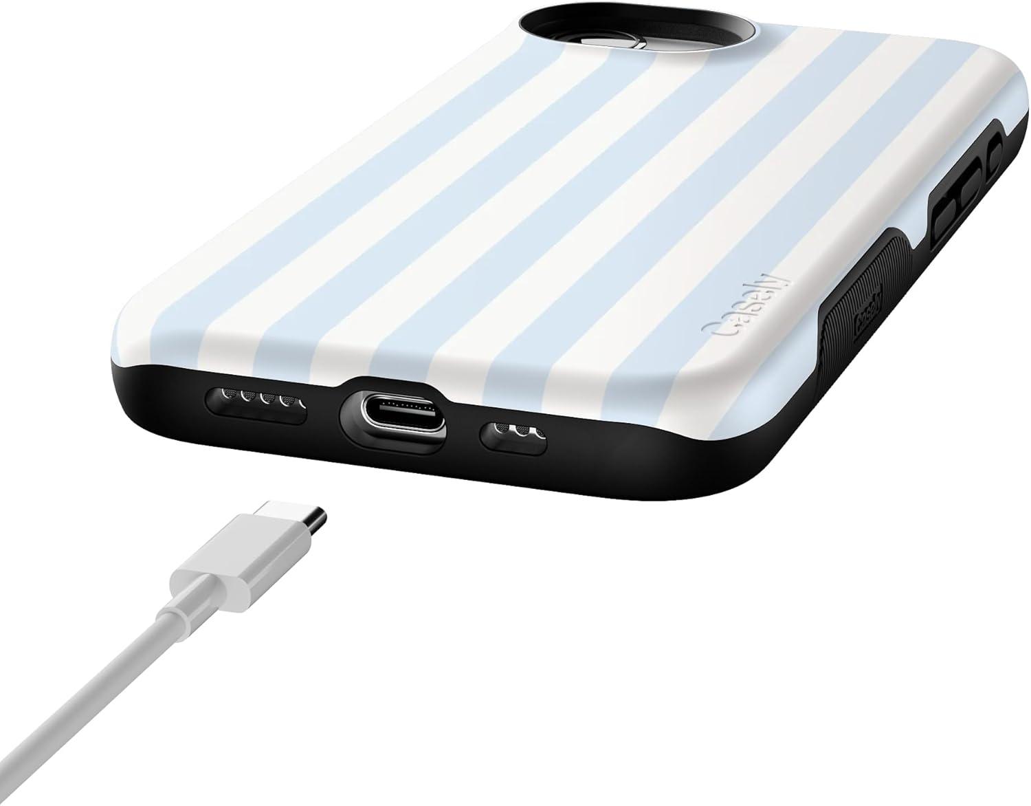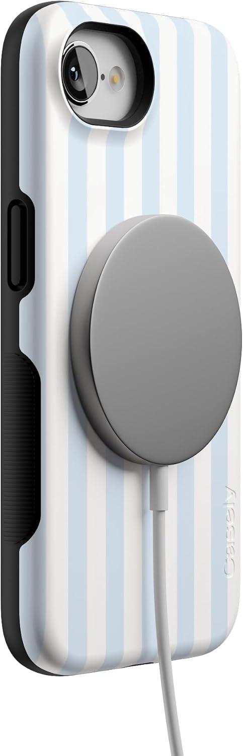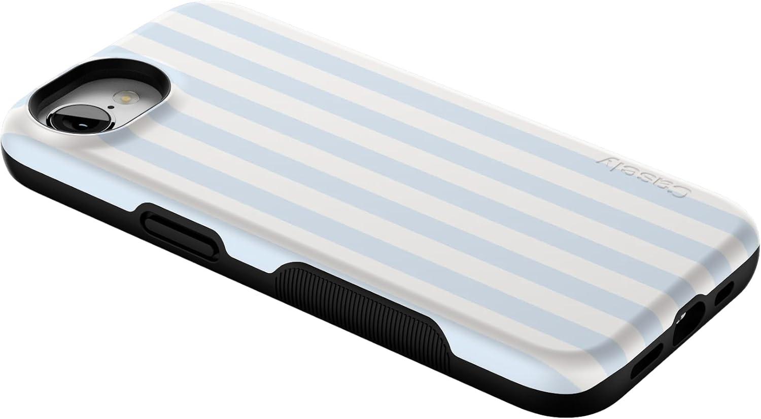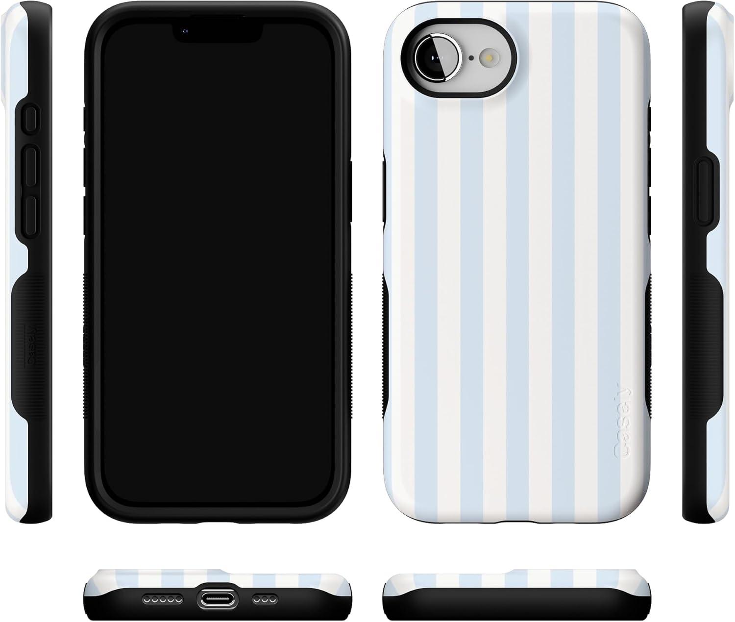Casely iPhone 16e Case | Pretty in Pastel | Blush Stripes | Bold Protective Design | Compatible with MagSafe(Blue Stripes | Sunday Best)