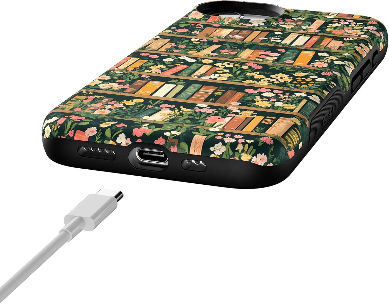 Casely iPhone 16e Case | Pretty in Pastel | Blush Stripes | Bold Protective Design | Compatible with MagSafe(Book Nook | Floral Library)