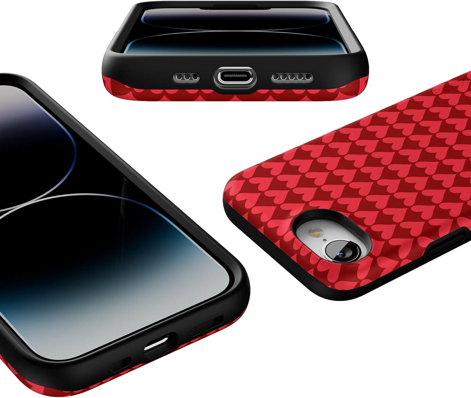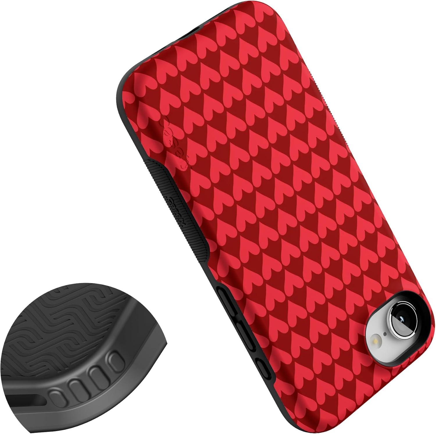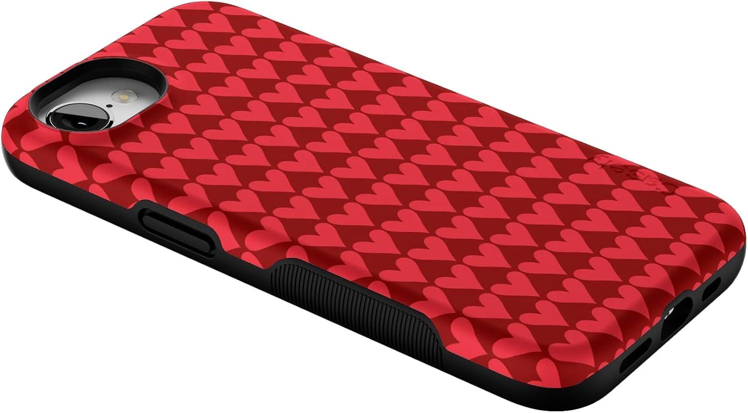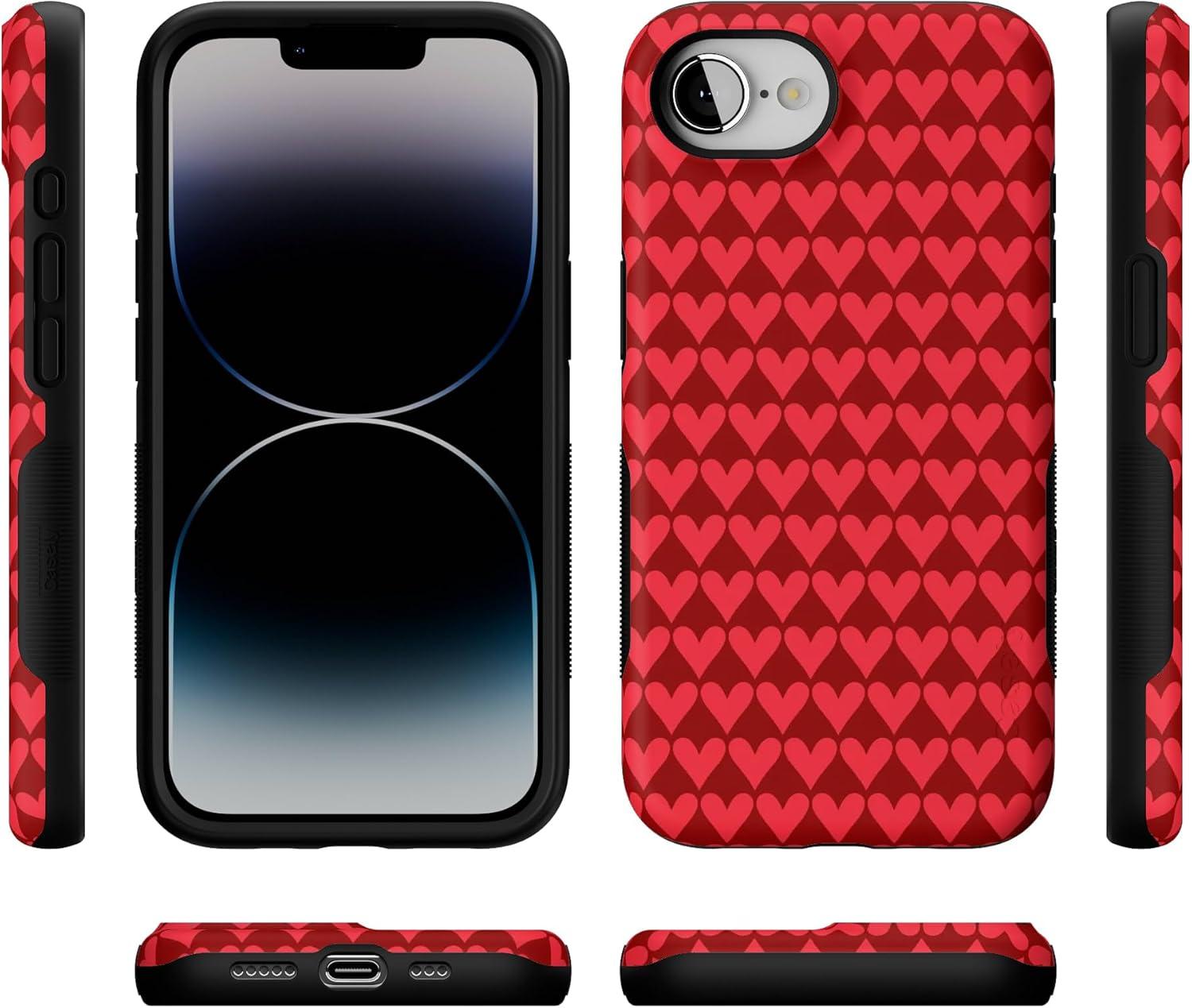 Casely iPhone 16e Case | Pretty in Pastel | Blush Stripes | Bold Protective Design | Compatible with MagSafe(Crazy in Love | Red Hearts)