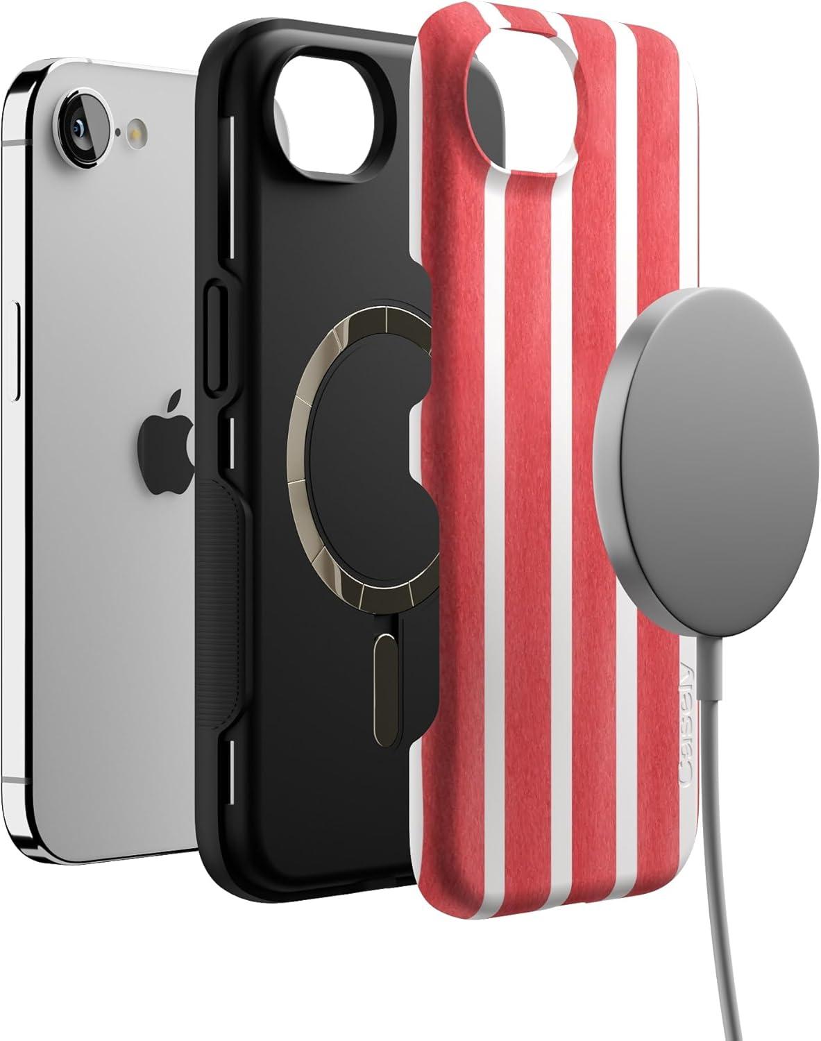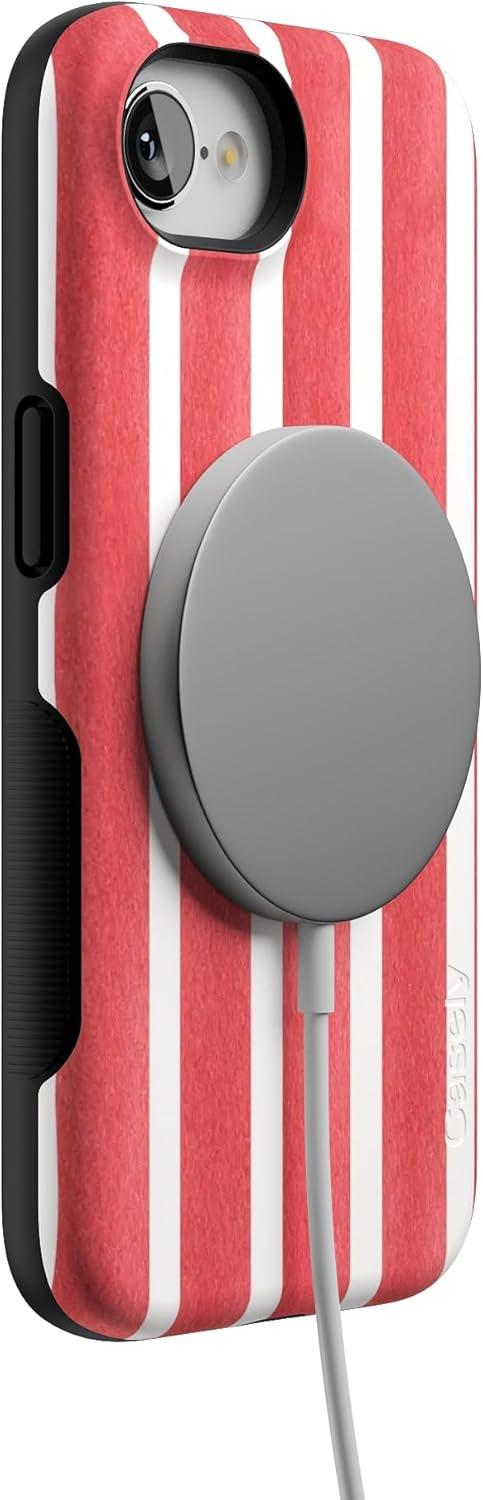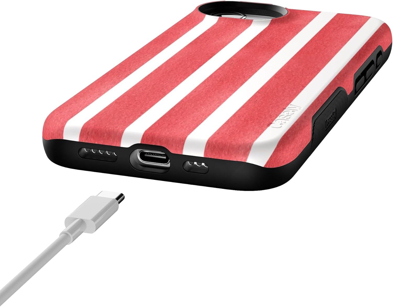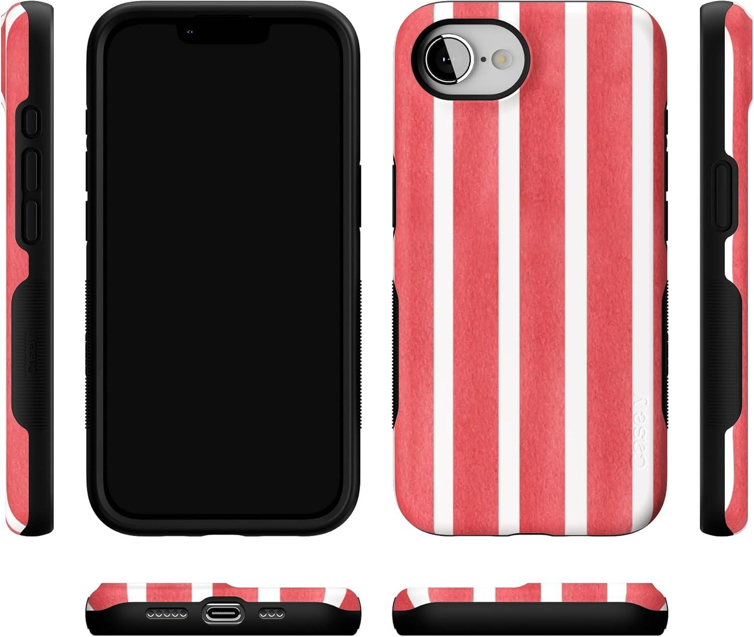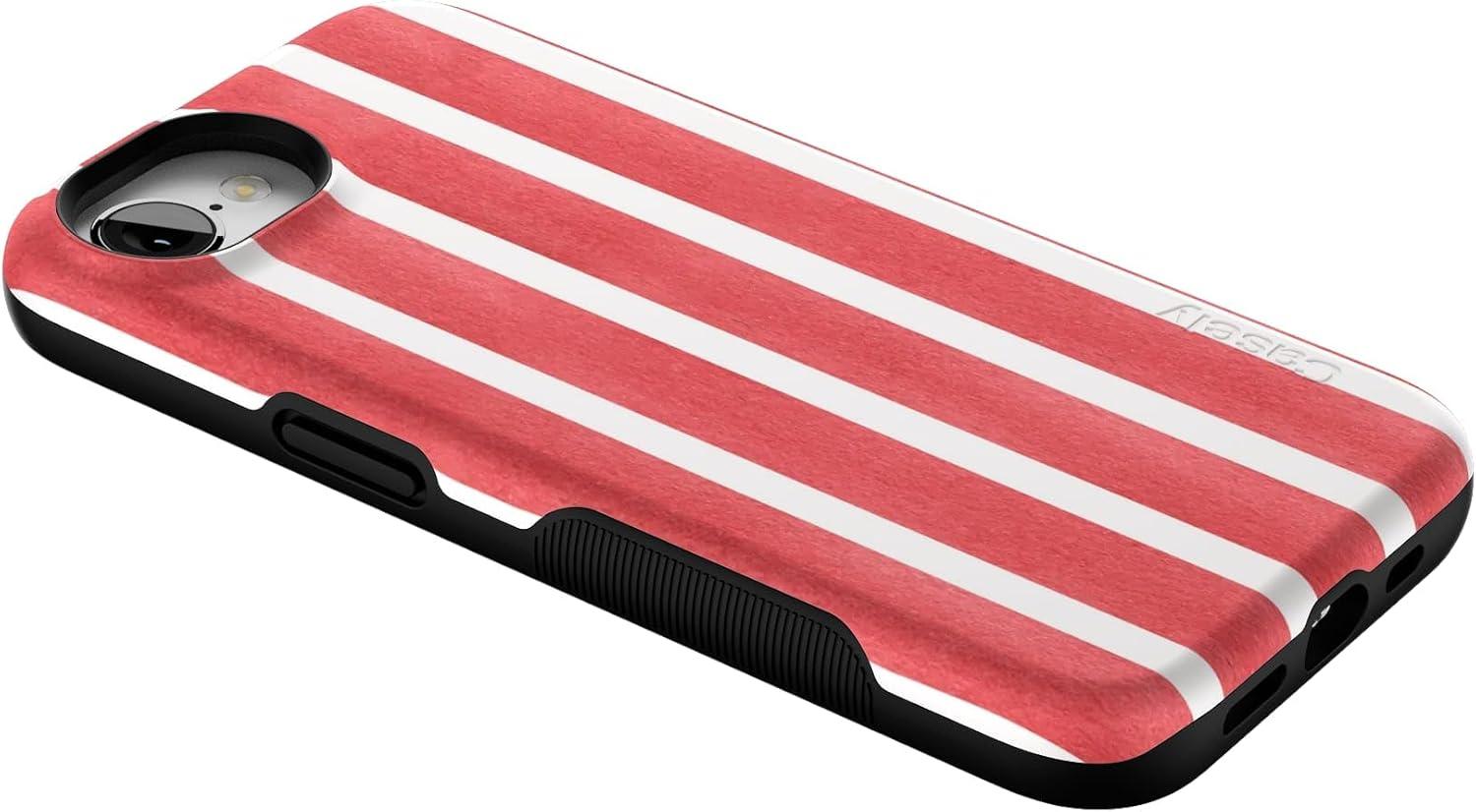 Casely iPhone 16e Case | Pretty in Pastel | Blush Stripes | Bold Protective Design | Compatible with MagSafe(East Coast Summer | Red Stripes)