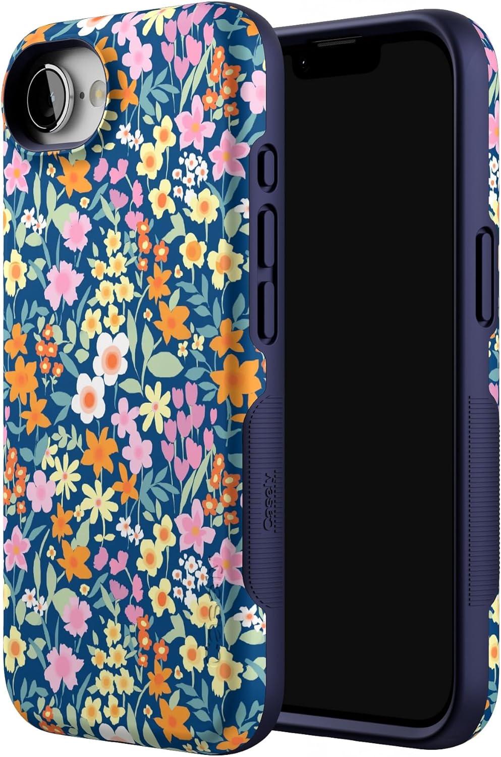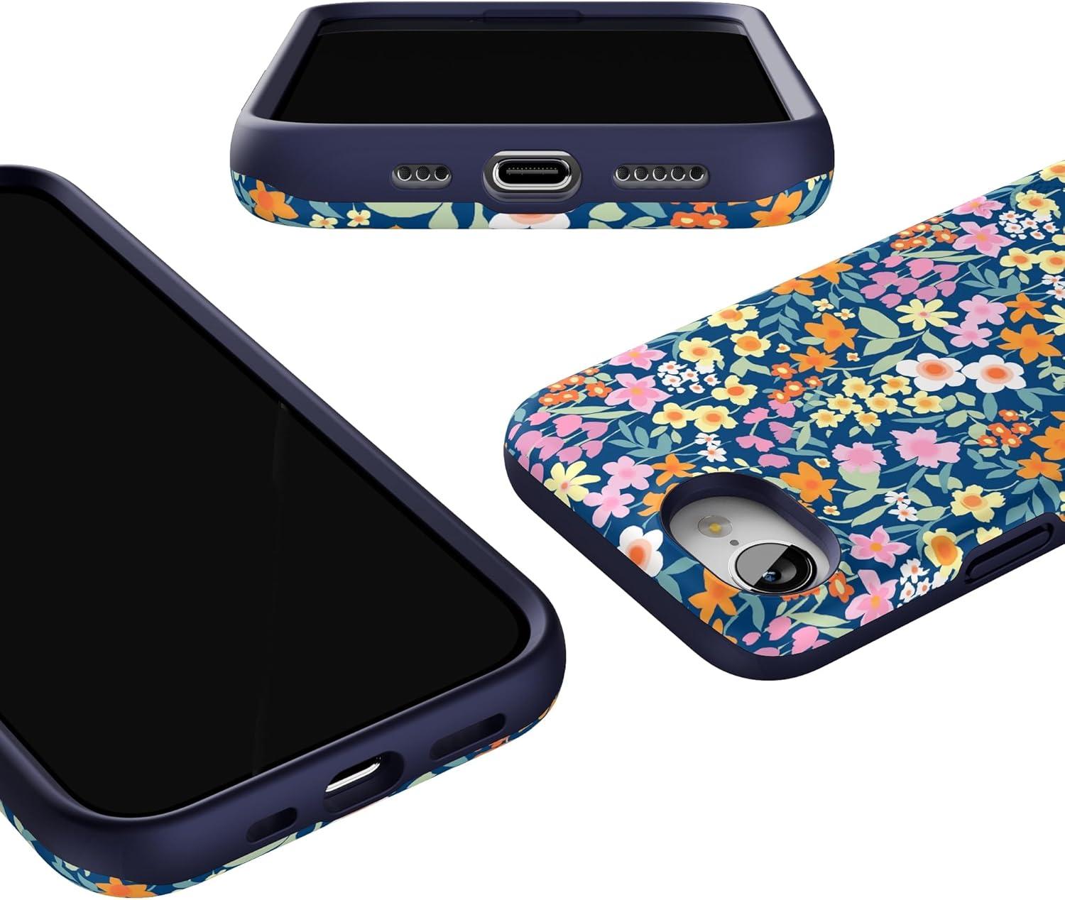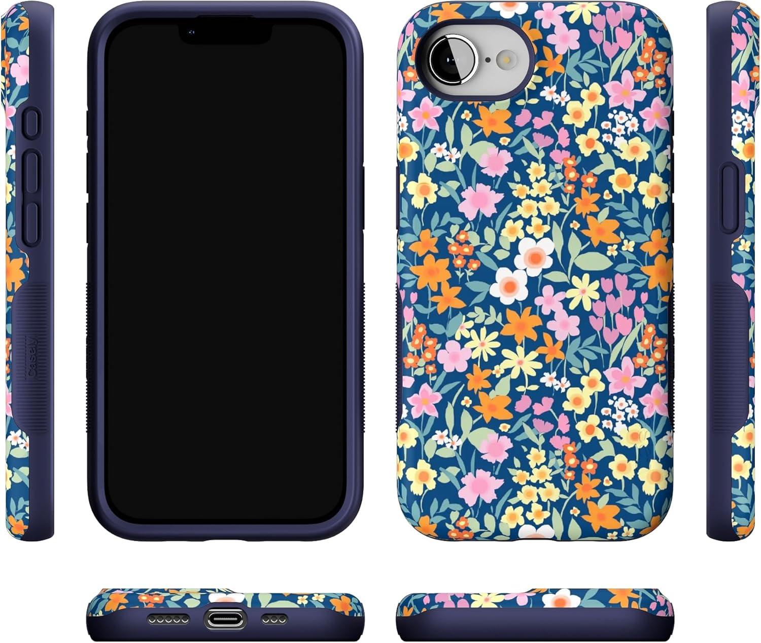 Casely iPhone 16e Case | Pretty in Pastel | Blush Stripes | Bold Protective Design | Compatible with MagSafe(Full Bloom | Navy Floral)
