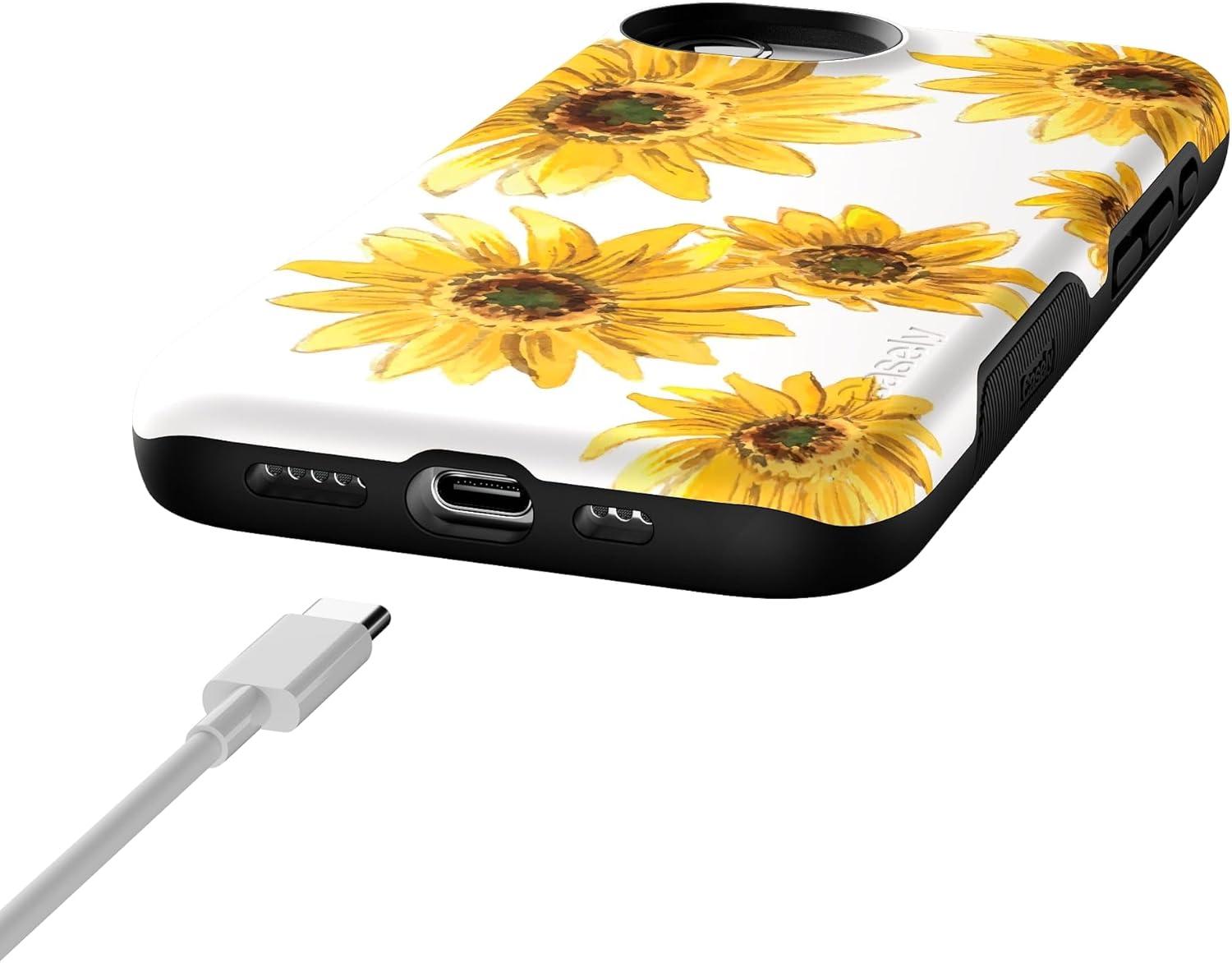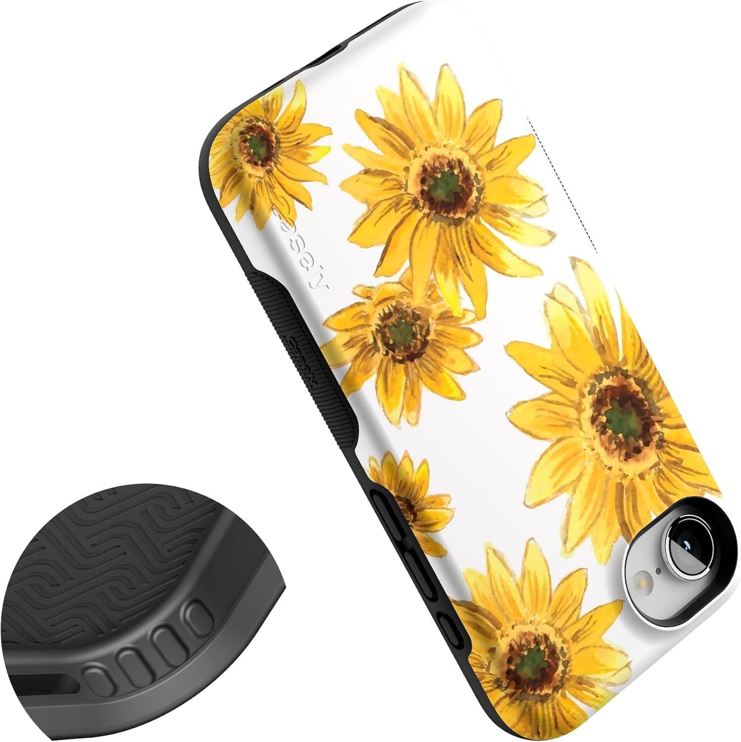 Casely iPhone 16e Case | Pretty in Pastel | Blush Stripes | Bold Protective Design | Compatible with MagSafe(Golden Garden | Yellow Sunflower Floral)