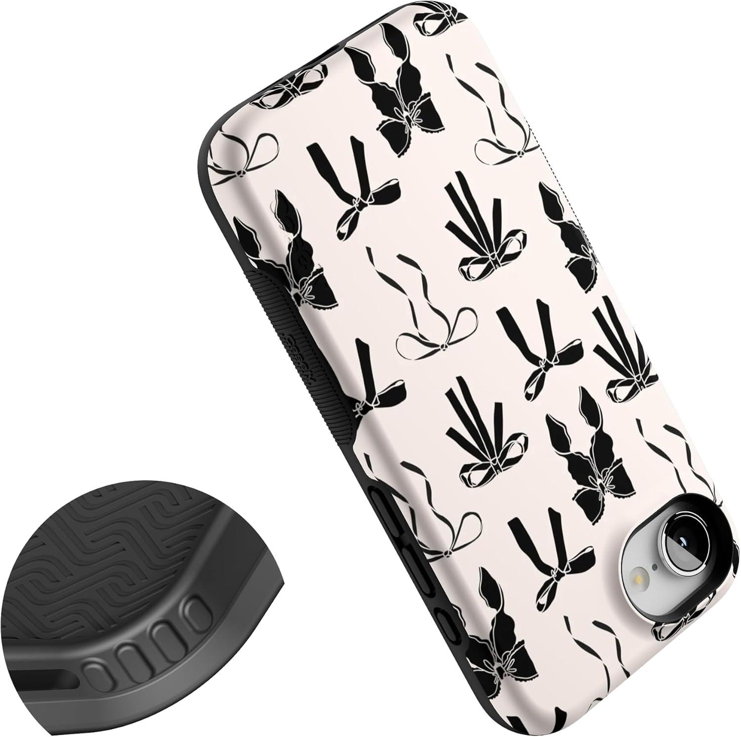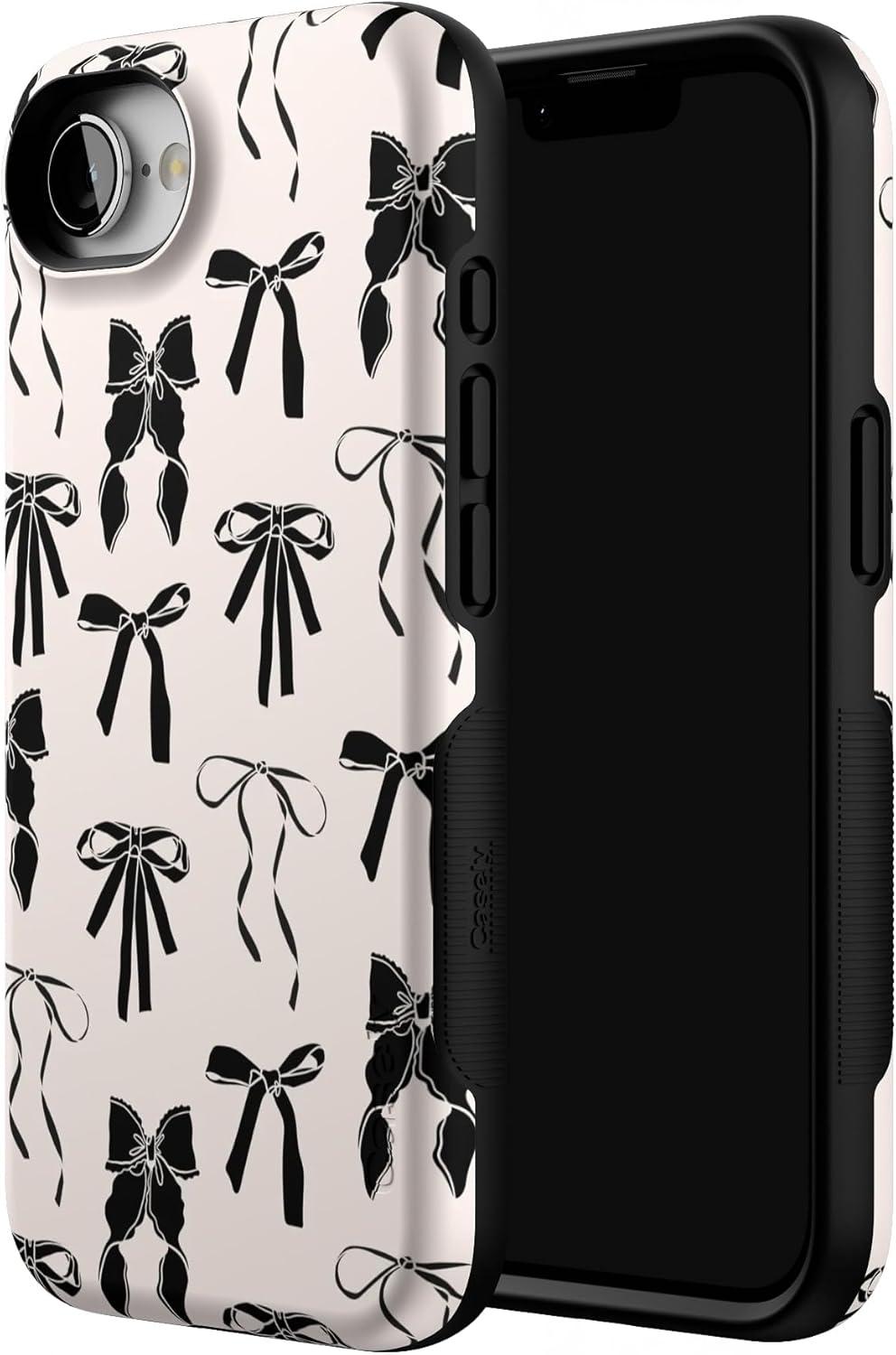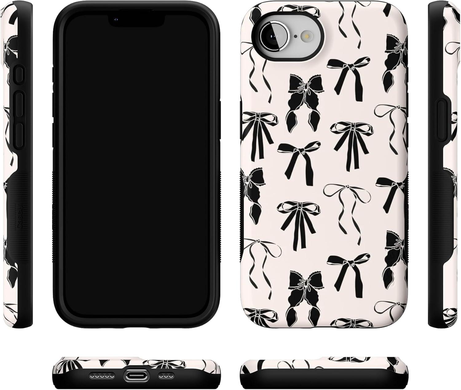 Casely iPhone 16e Case | Pretty in Pastel | Blush Stripes | Bold Protective Design | Compatible with MagSafe(Goth Girlie | Black Bows)