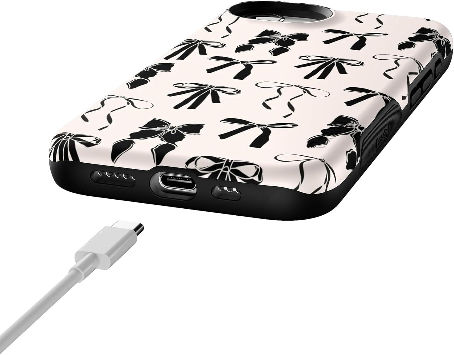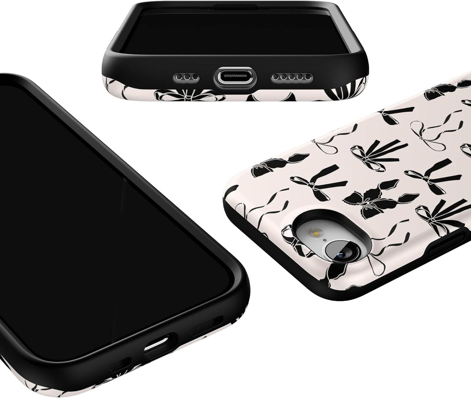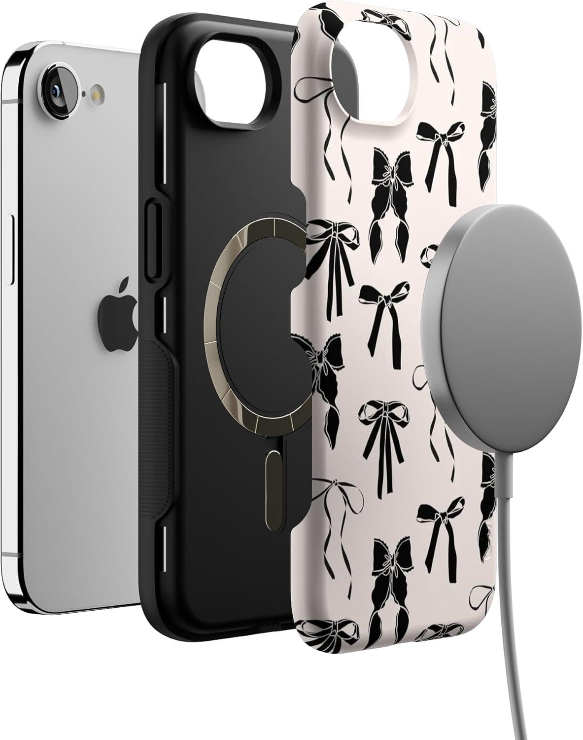 Casely iPhone 16e Case | Pretty in Pastel | Blush Stripes | Bold Protective Design | Compatible with MagSafe(Goth Girlie | Black Bows)