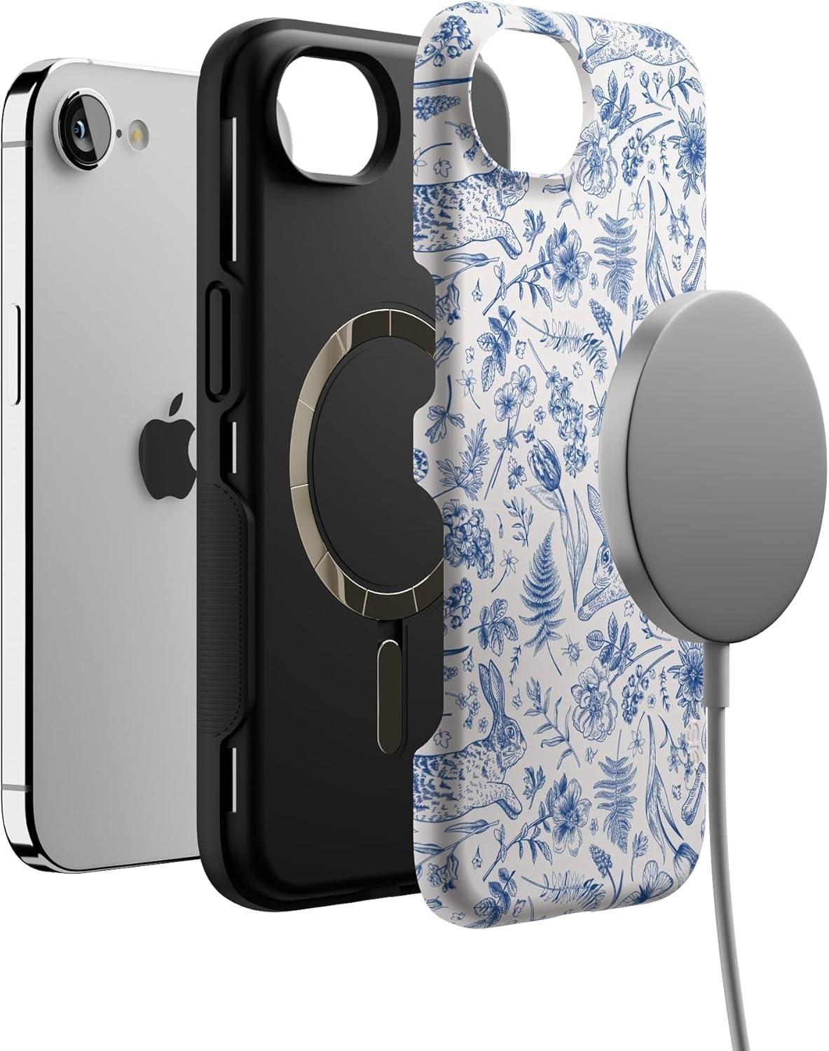Casely iPhone 16e Case | Pretty in Pastel | Blush Stripes | Bold Protective Design | Compatible with MagSafe(Hop & Bloom | Bunny Toile)