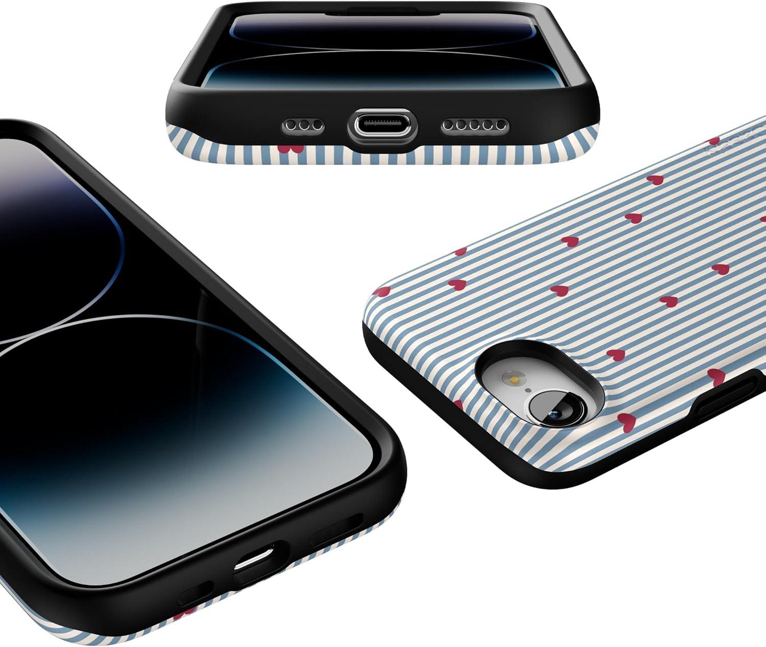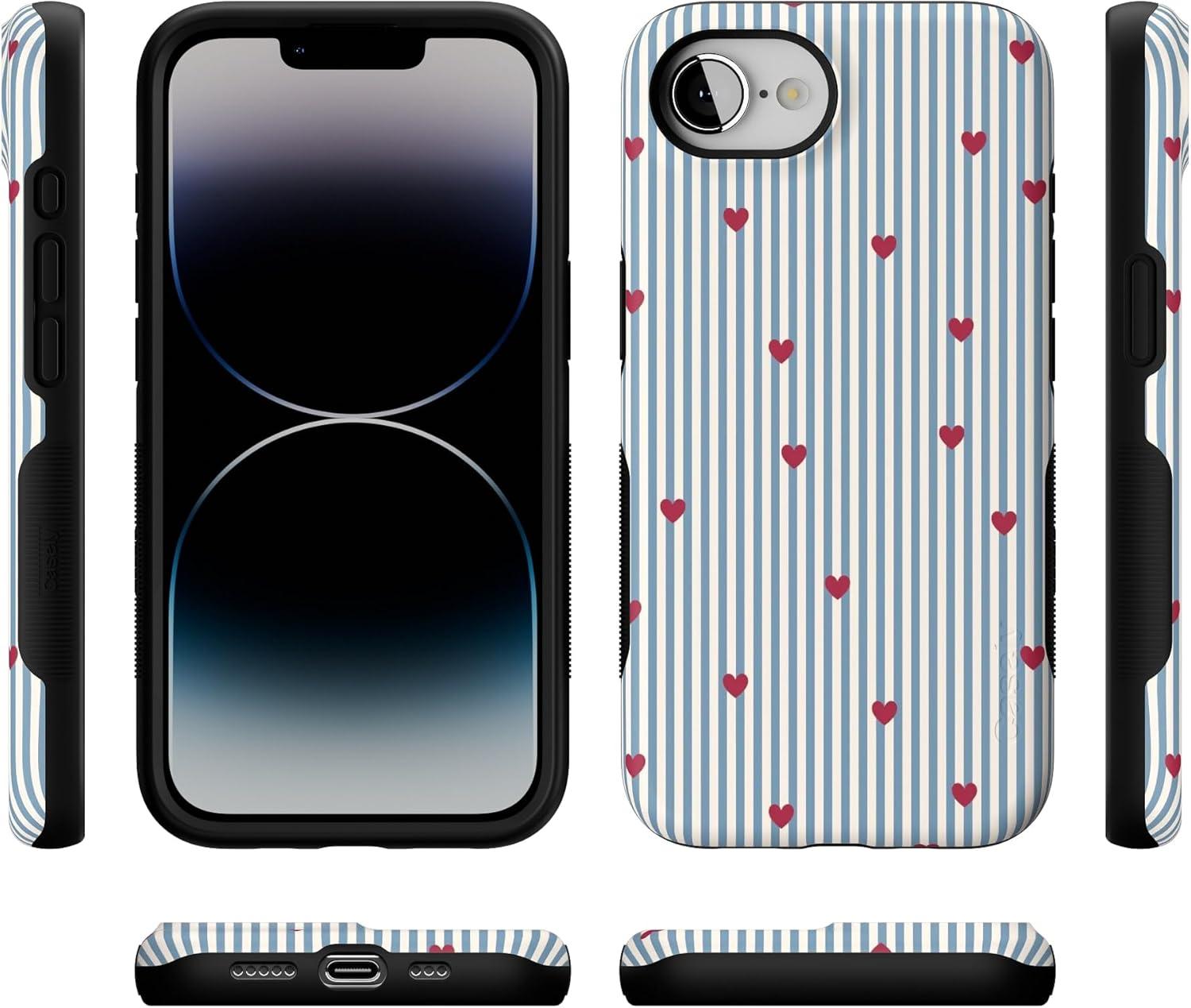Casely iPhone 16e Case | Pretty in Pastel | Blush Stripes | Bold Protective Design | Compatible with MagSafe(Love Lines | Blue Stripes)