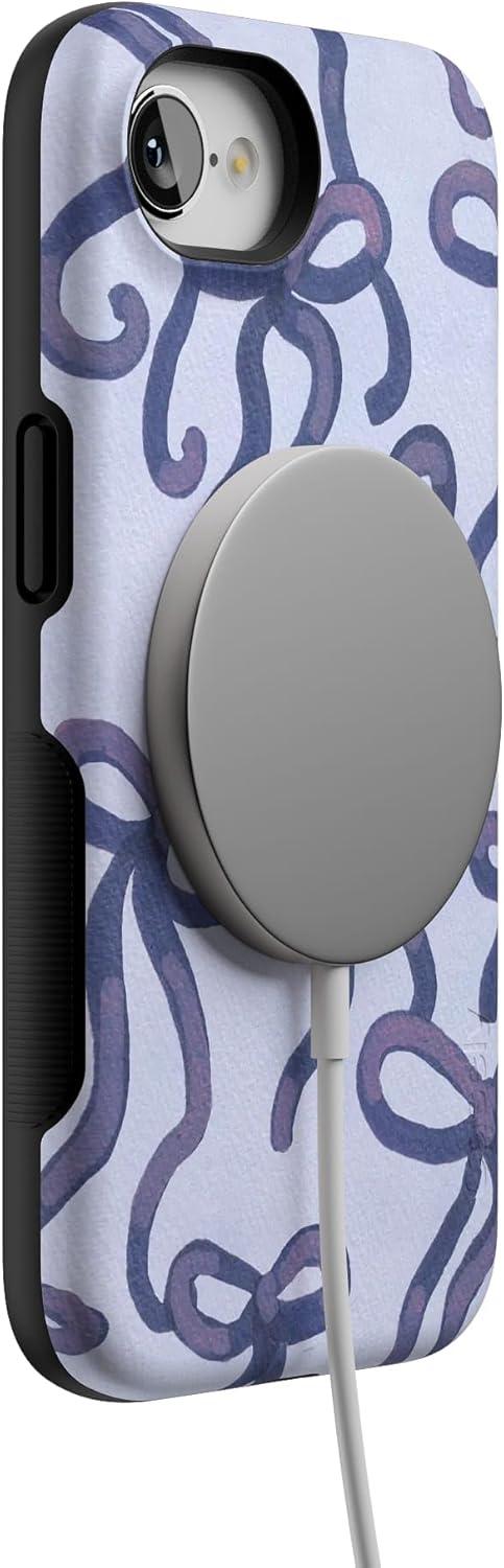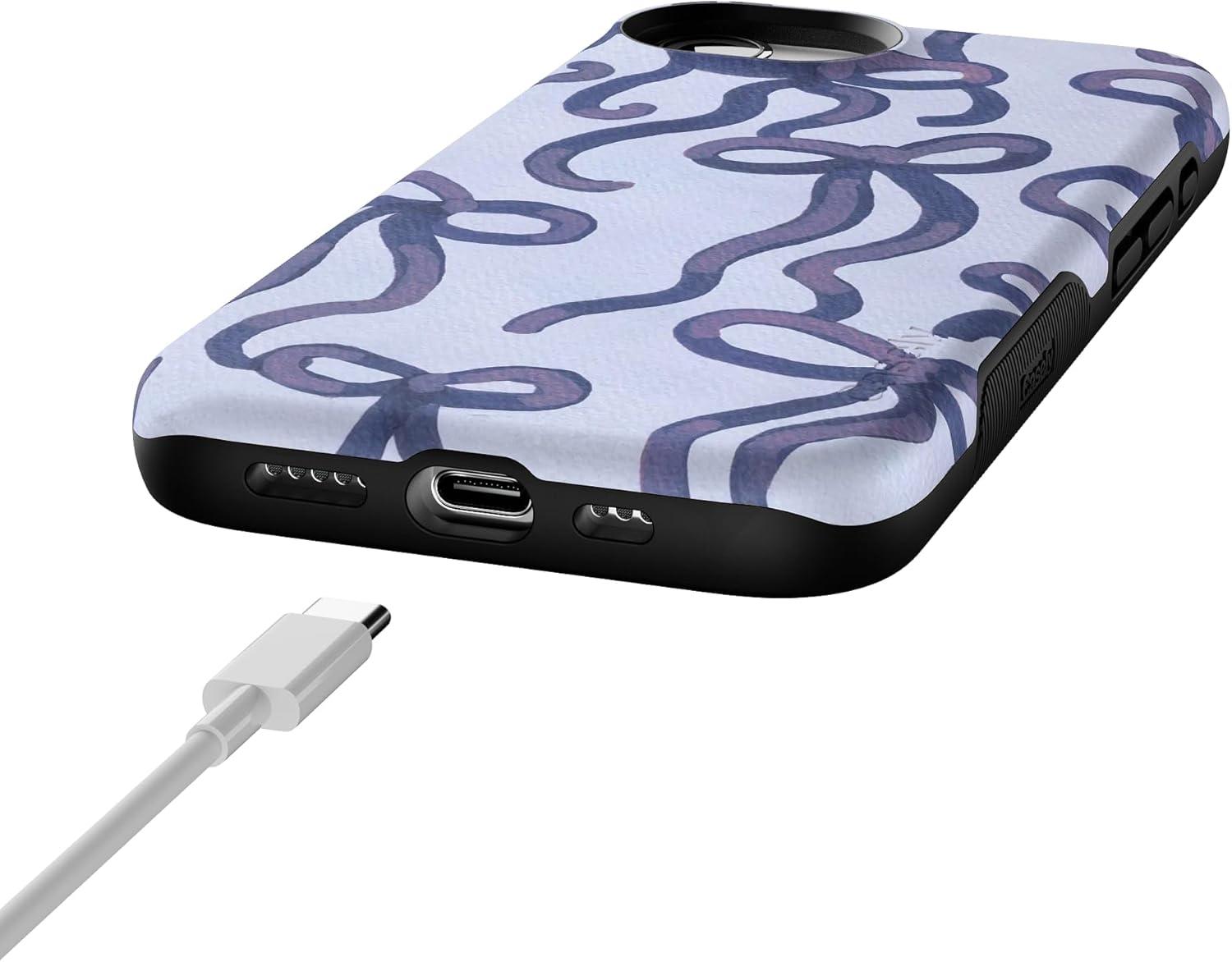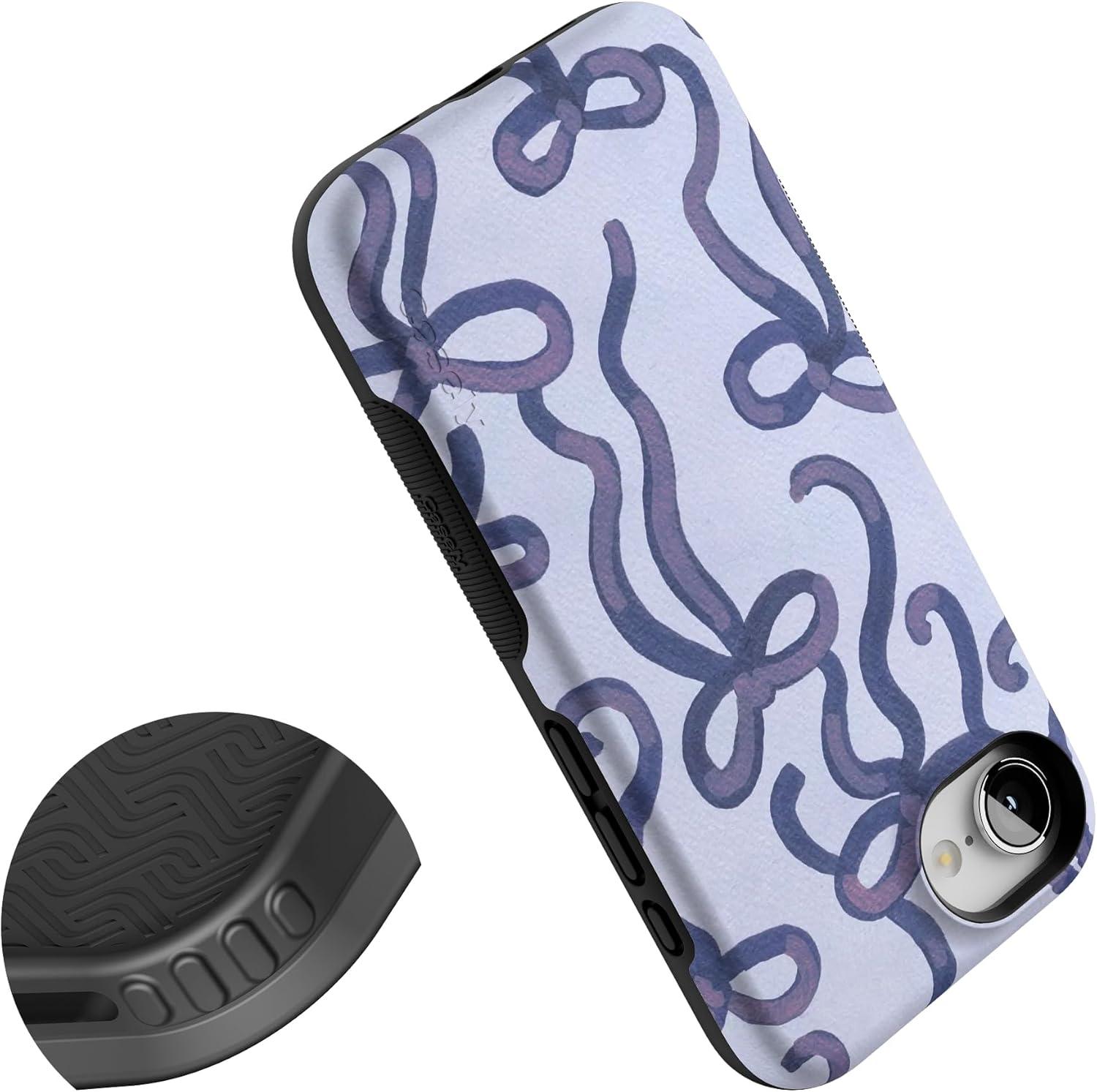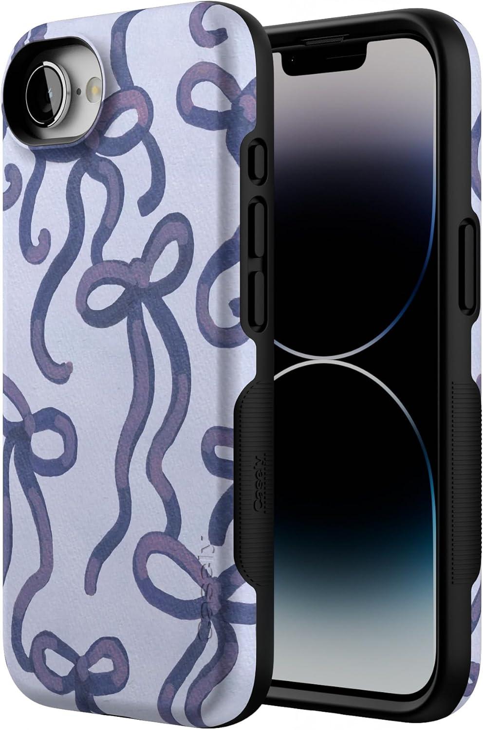 Casely iPhone 16e Case | Pretty in Pastel | Blush Stripes | Bold Protective Design | Compatible with MagSafe(Love Me Knot | Blue Bow)
