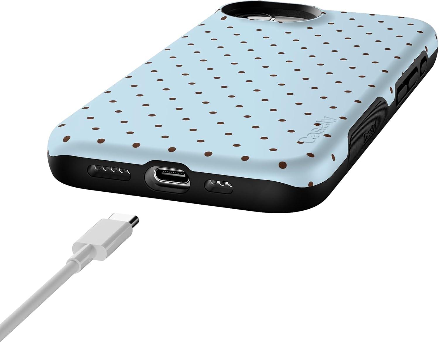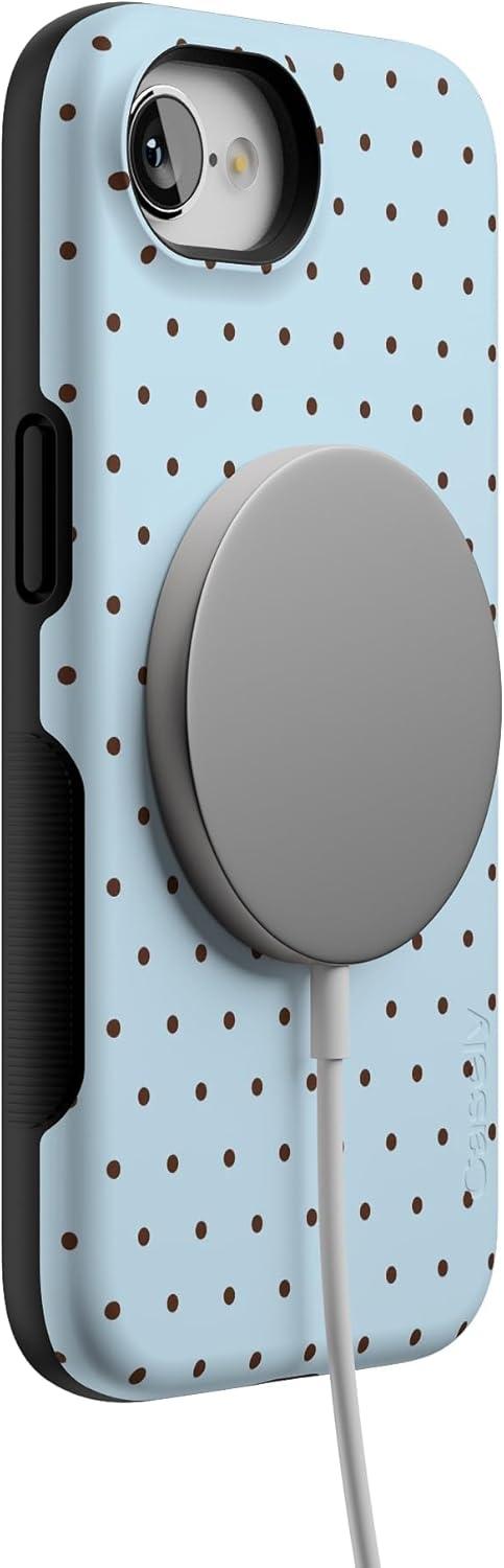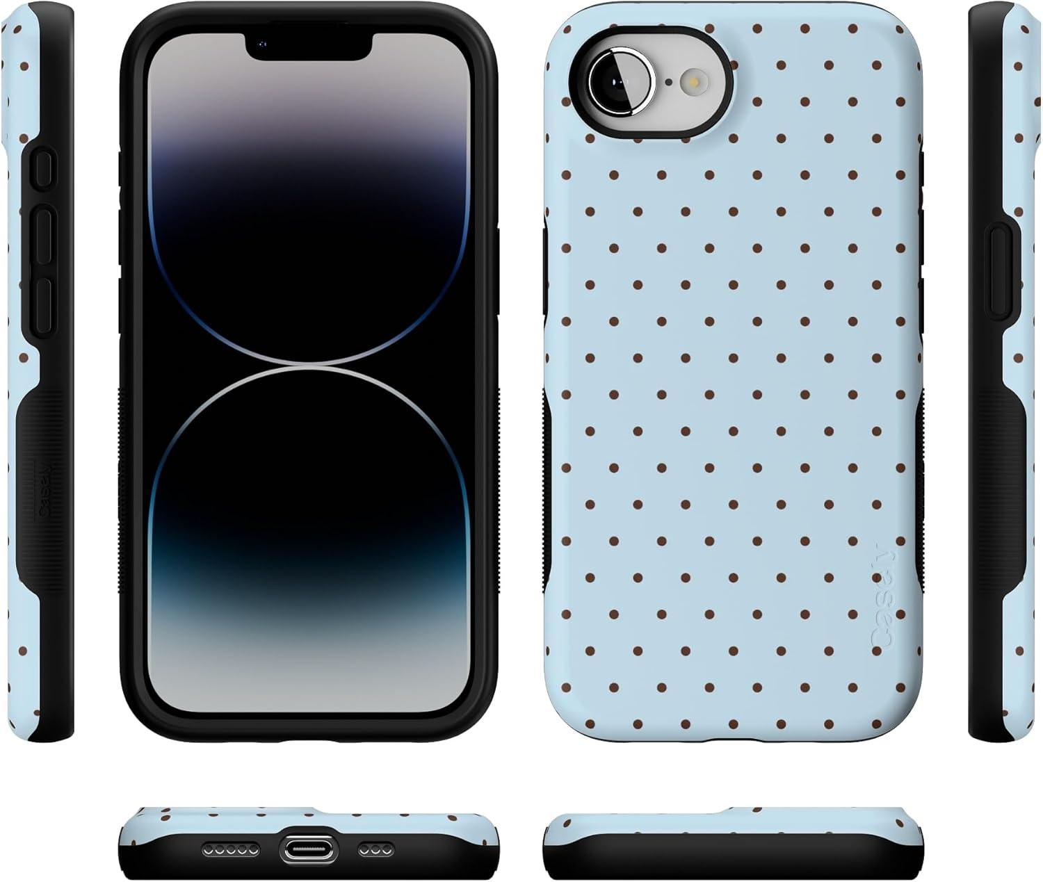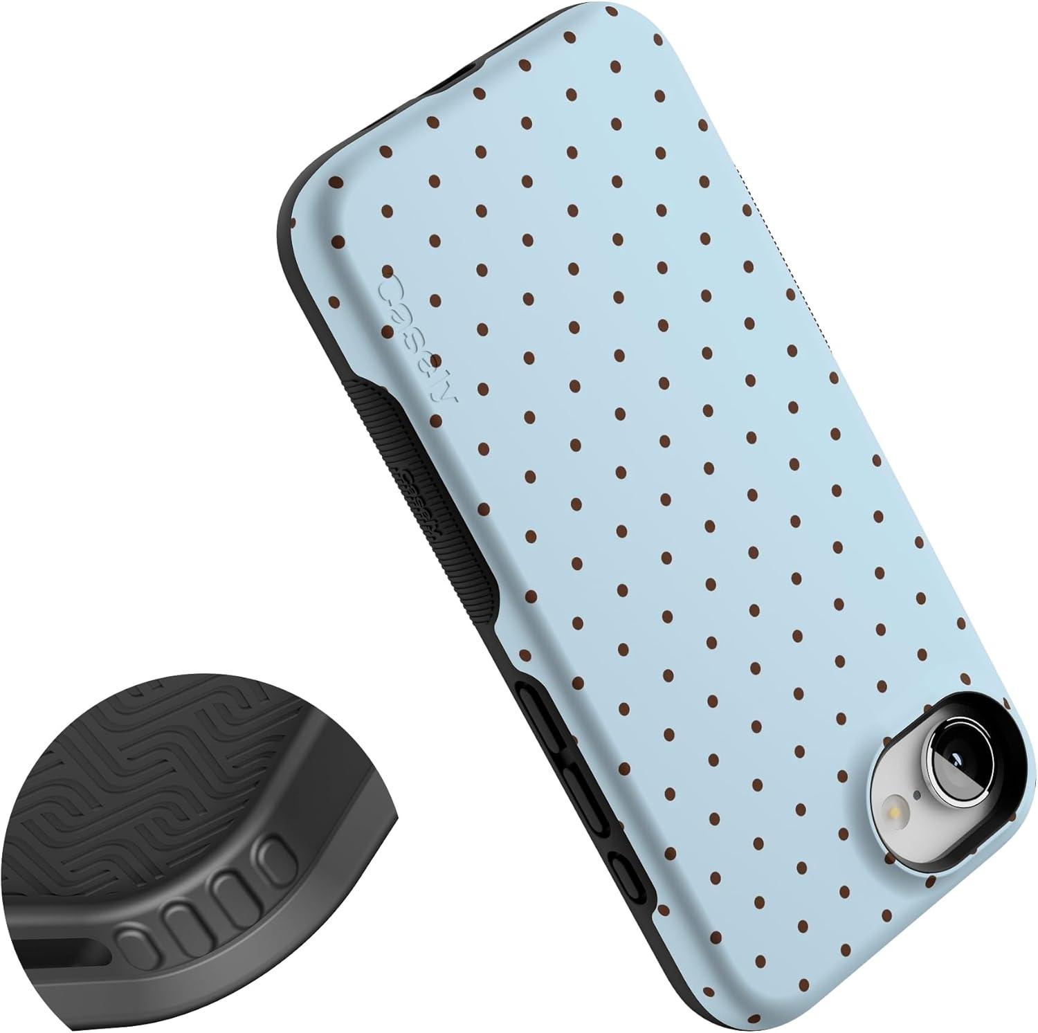 Casely iPhone 16e Case | Pretty in Pastel | Blush Stripes | Bold Protective Design | Compatible with MagSafe(On the Dot | Blue & Brown Polka Dot)