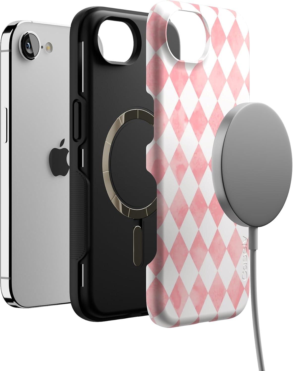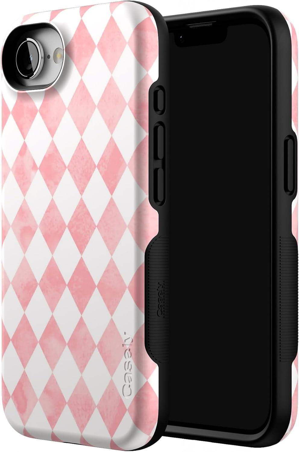 Casely iPhone 16e Case | Pretty in Pastel | Blush Stripes | Bold Protective Design | Compatible with MagSafe(Queen of Diamonds | Pink Watercolor)