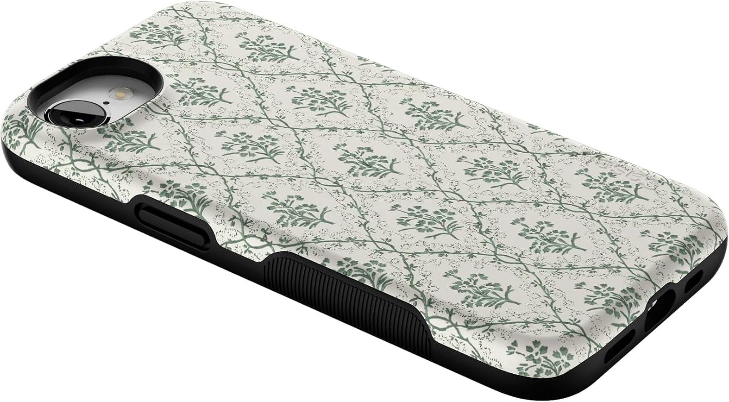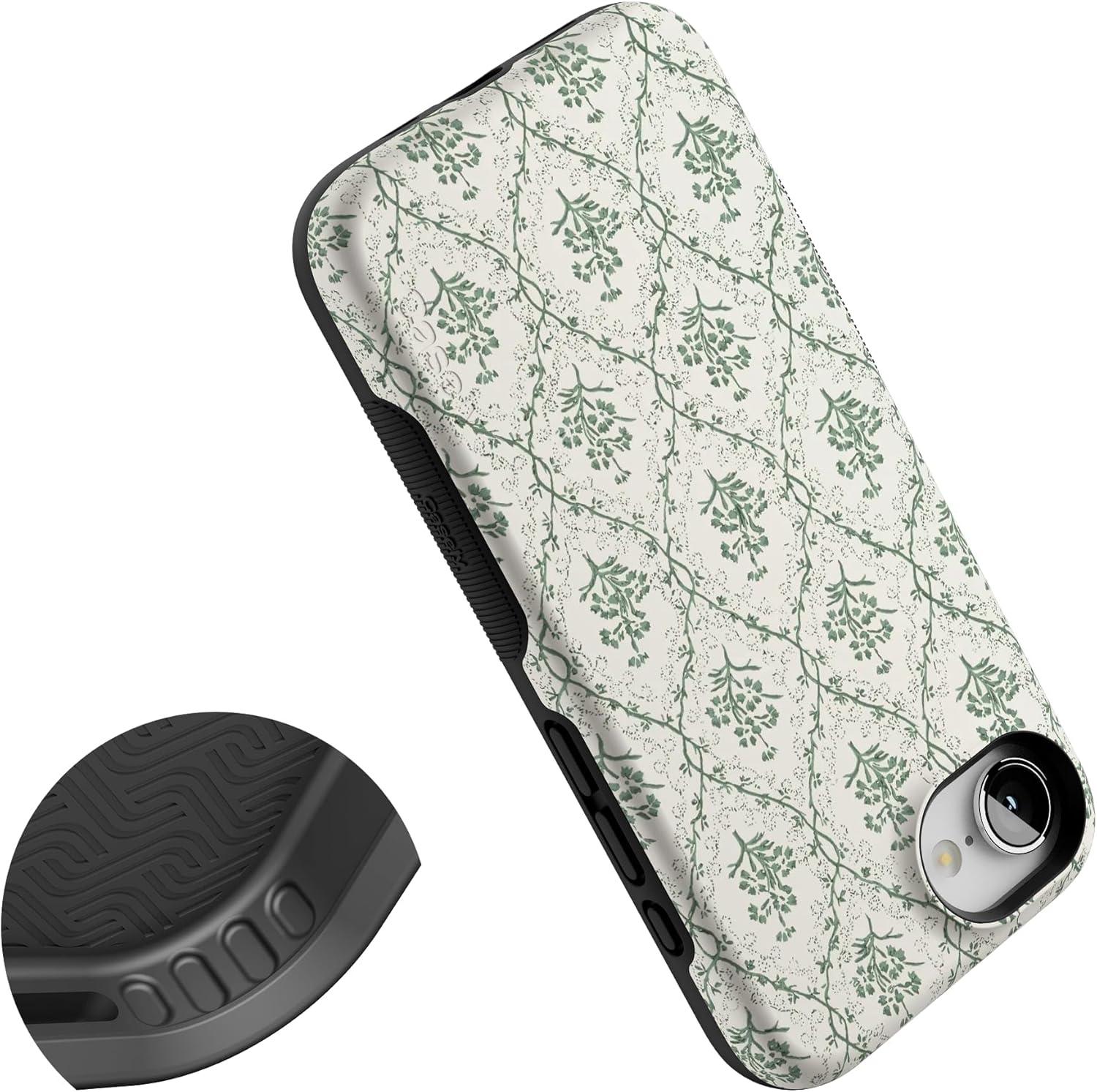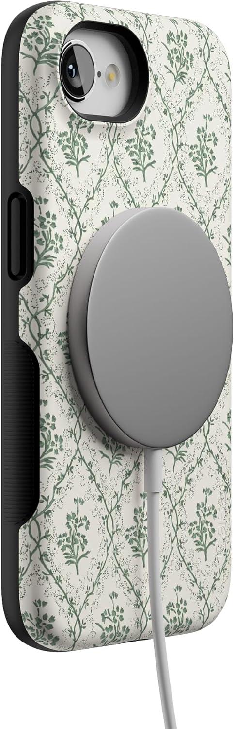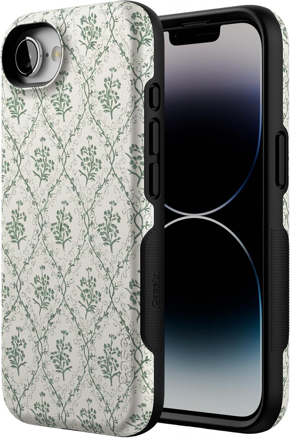 Casely iPhone 16e Case | Pretty in Pastel | Blush Stripes | Bold Protective Design | Compatible with MagSafe(Sage Tapestry | Floral Vines)