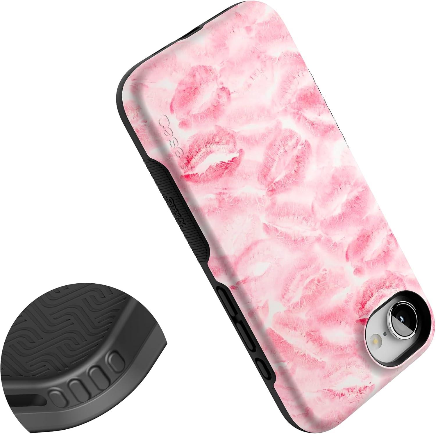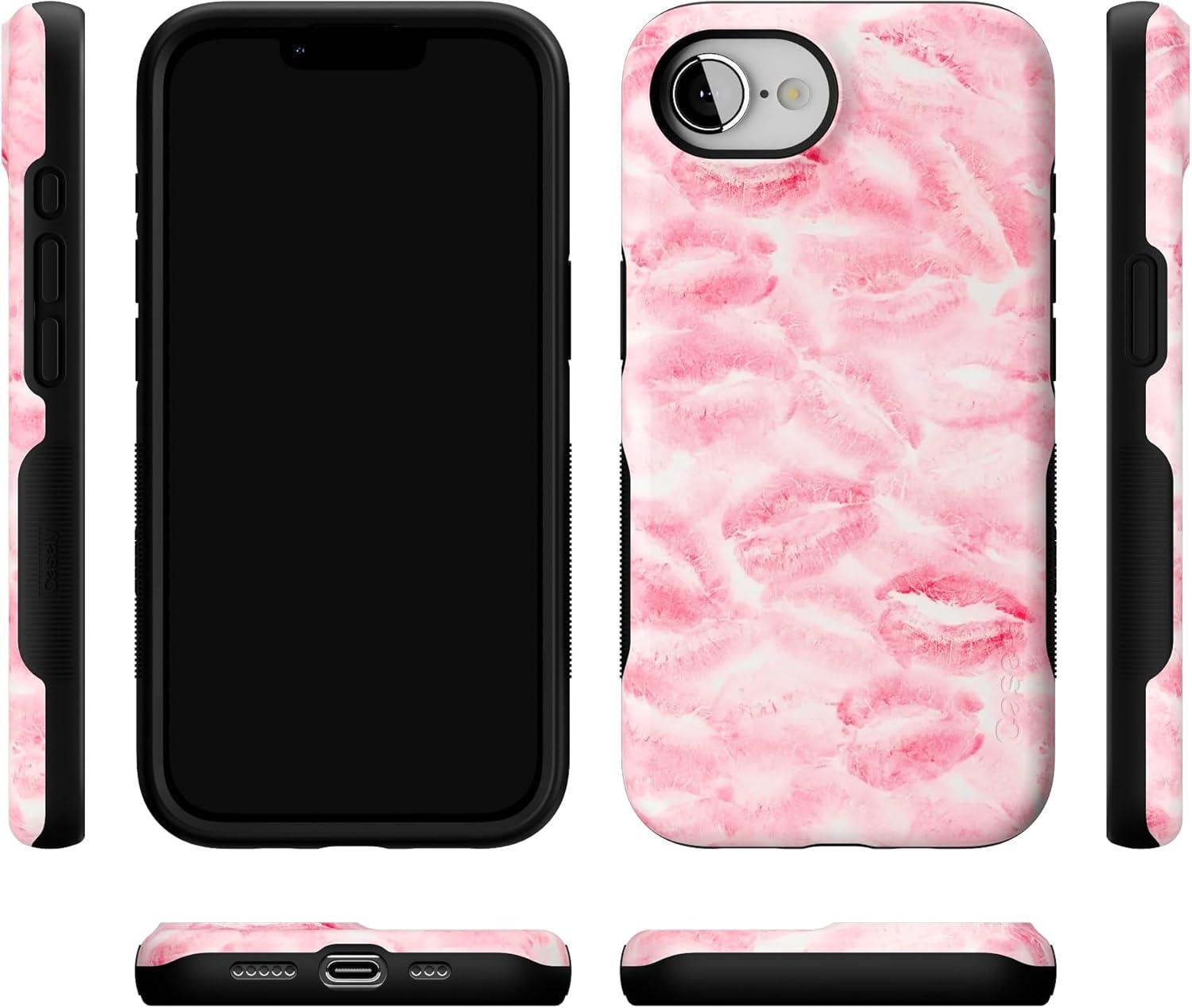 Casely iPhone 16e Case | Pretty in Pastel | Blush Stripes | Bold Protective Design | Compatible with MagSafe(Sealed with a Kiss | Pink Lipstick)