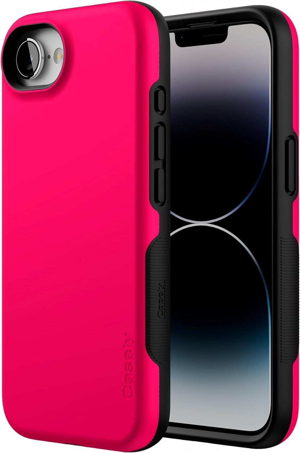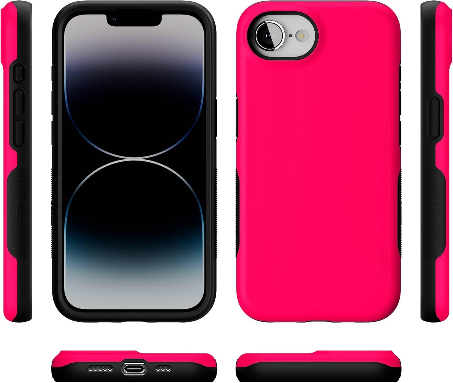 Casely iPhone 16e Case | Pretty in Pastel | Blush Stripes | Bold Protective Design | Compatible with MagSafe(Think Pink | Solid Neon Pink)