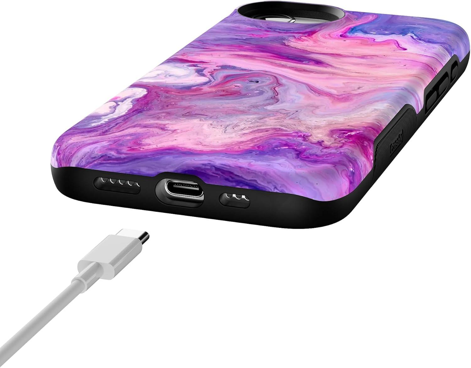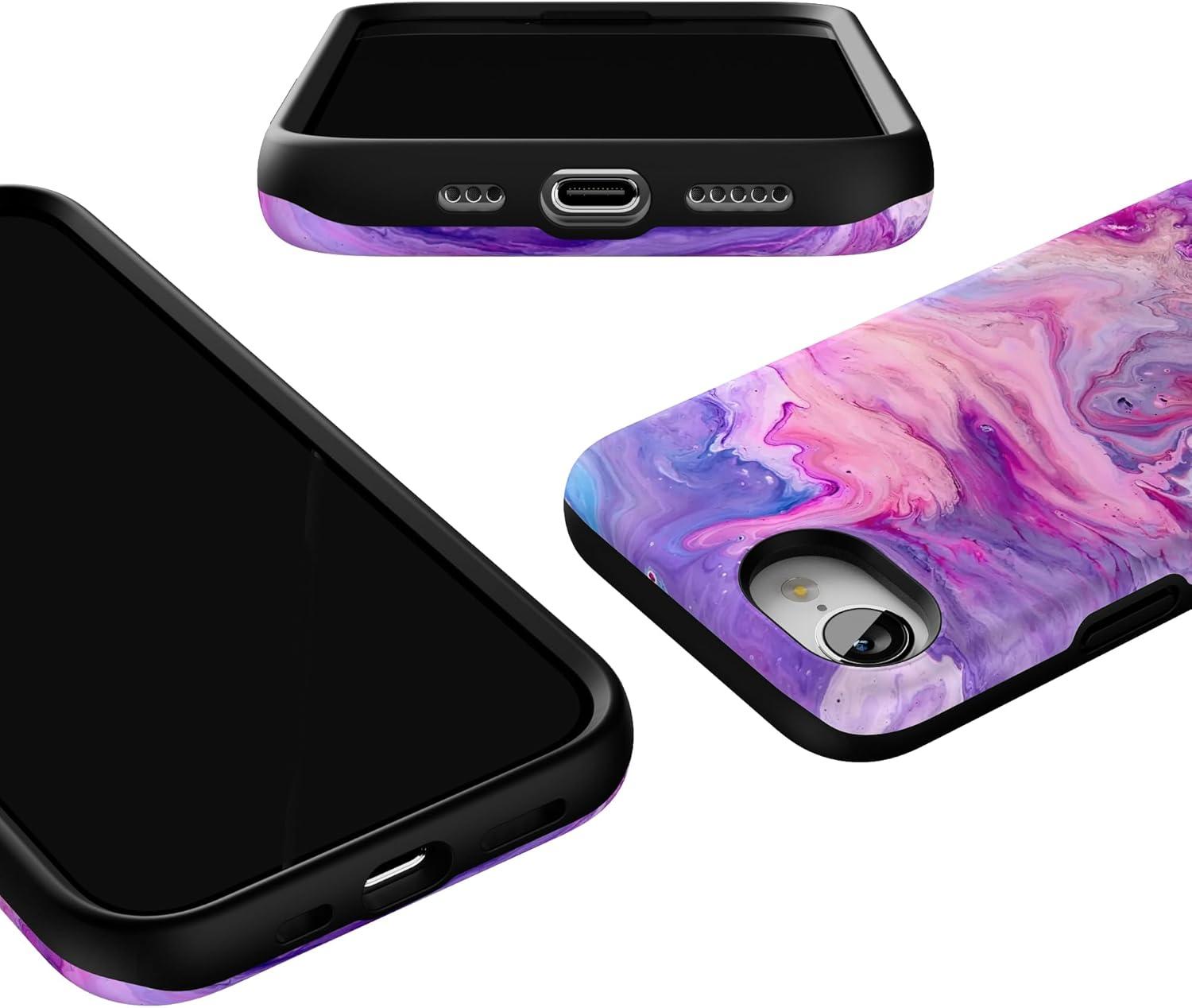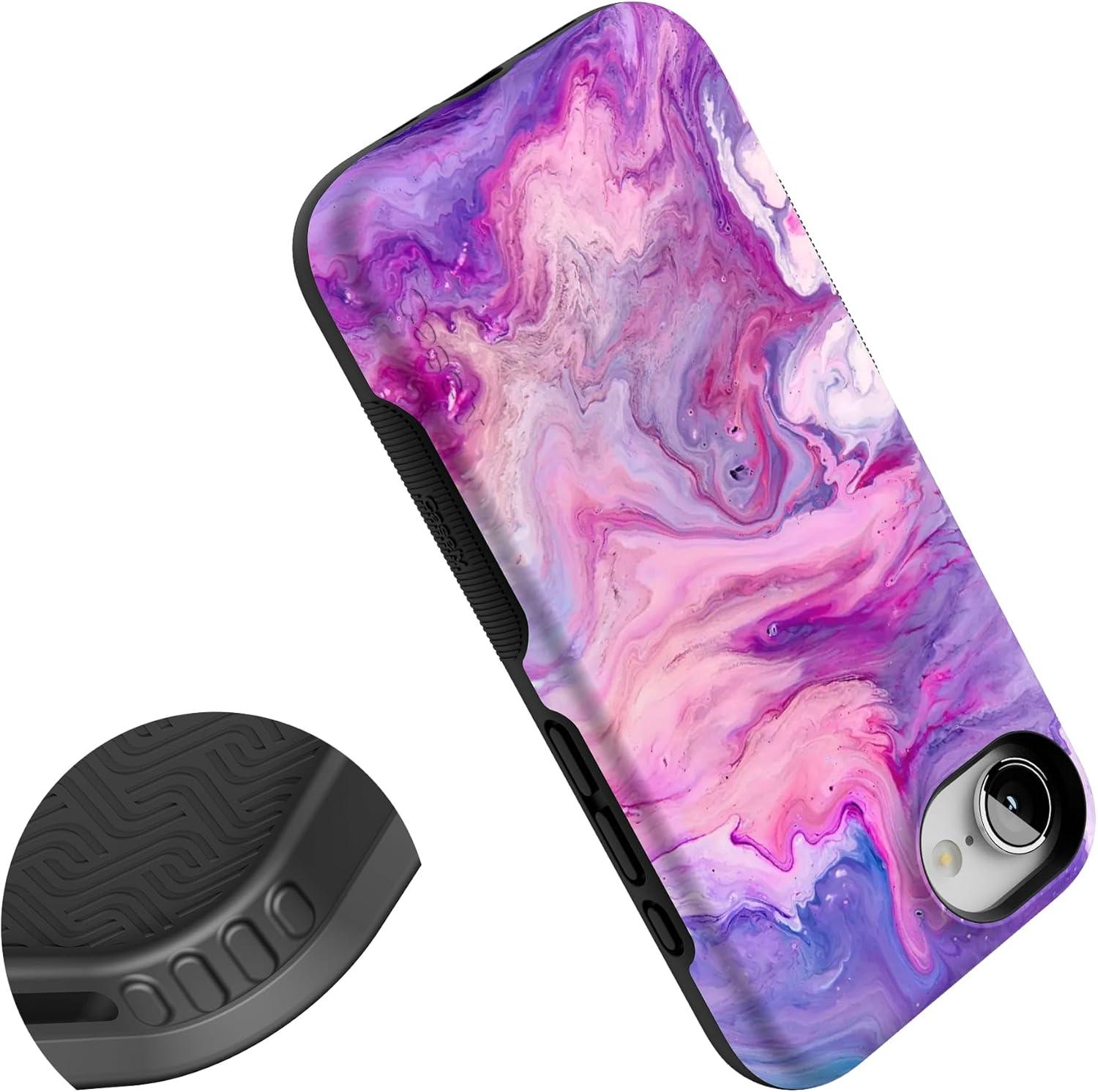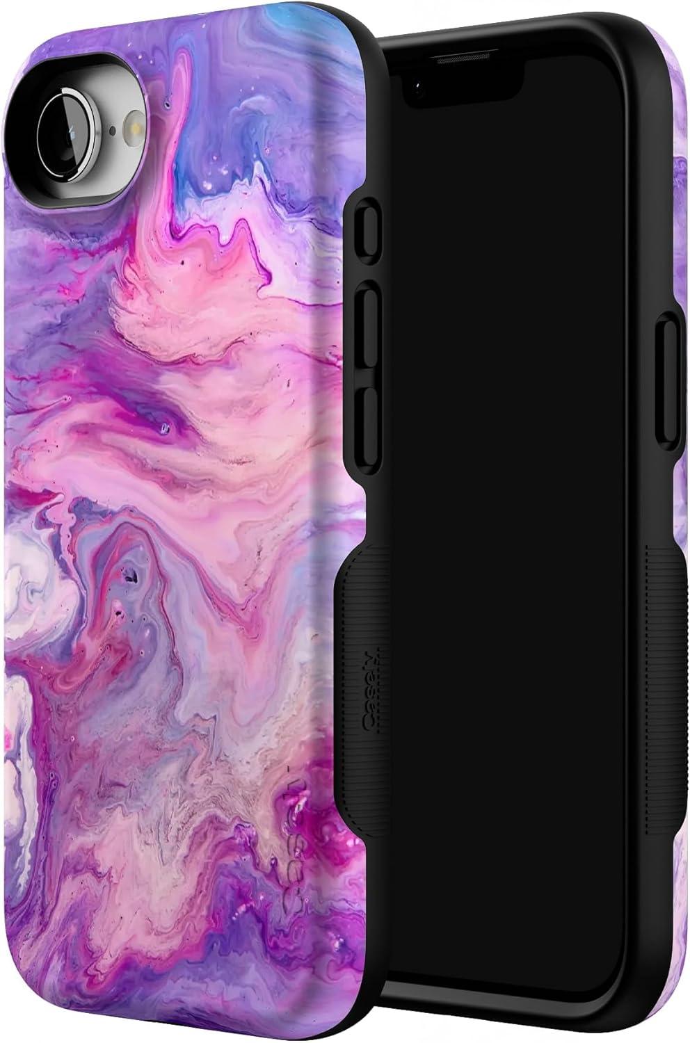 Casely iPhone 16e Case | Pretty in Pastel | Blush Stripes | Bold Protective Design | Compatible with MagSafe(Tie Dying Over You | Purple Marble)