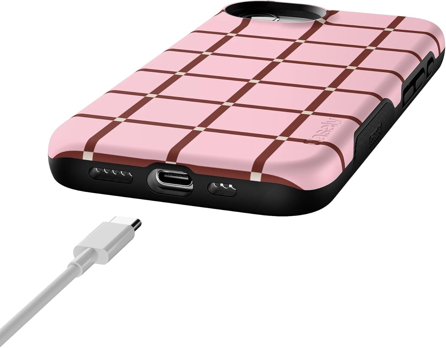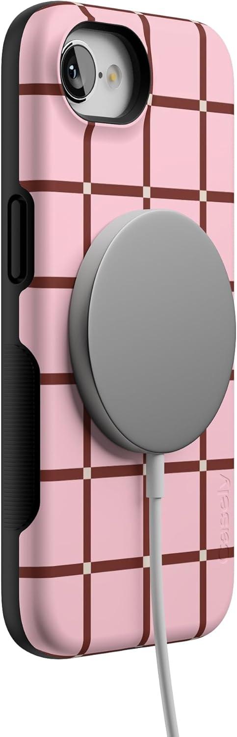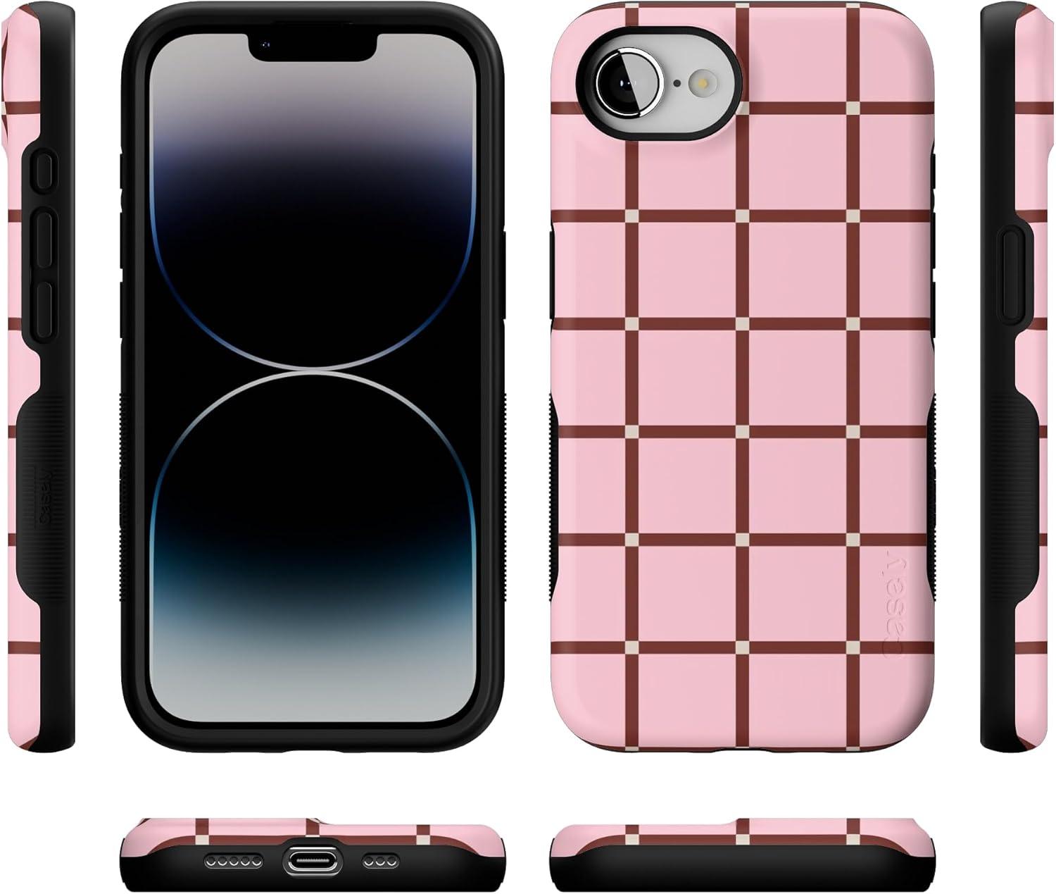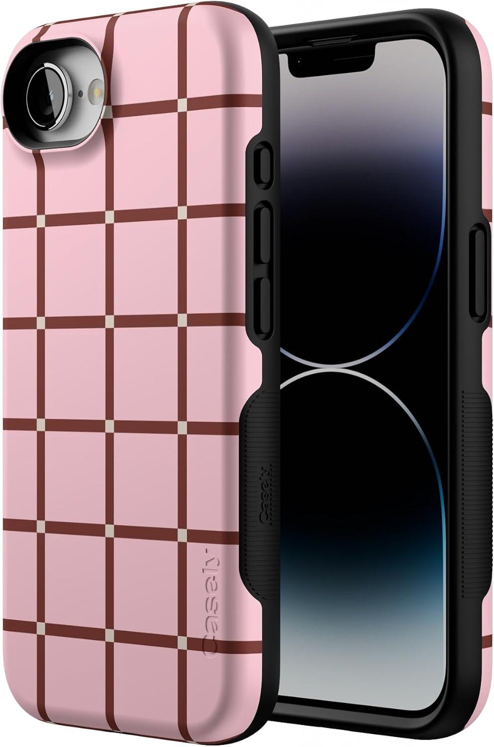Casely iPhone 16e Case | Pretty in Pastel | Blush Stripes | Bold Protective Design | Compatible with MagSafe(Uptown Gridlock | Pink Checkerboard)