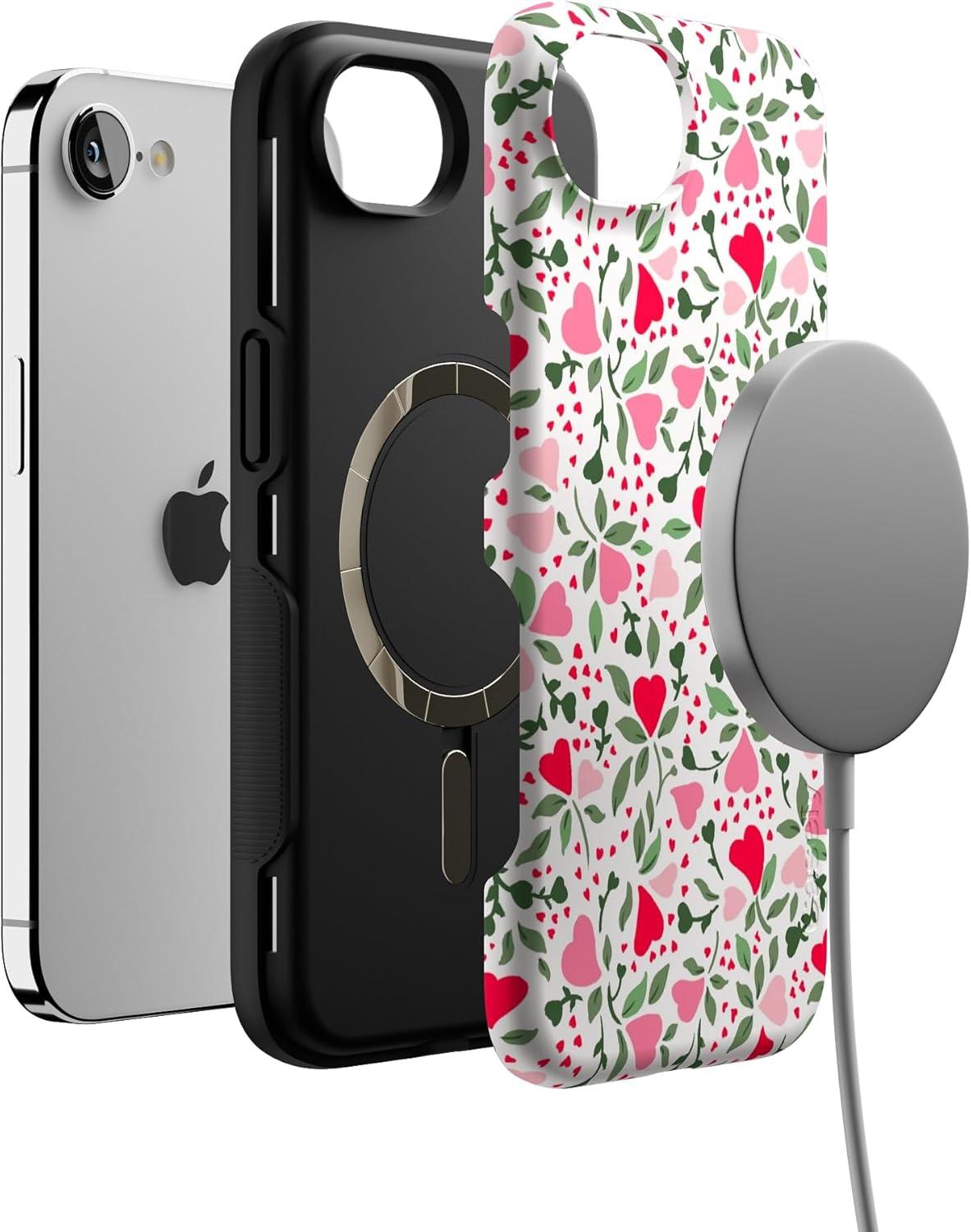 Casely iPhone 16e Case | Pretty in Pastel | Blush Stripes | Bold Protective Design | Compatible with MagSafe(Vines of Love | Floral Heart)