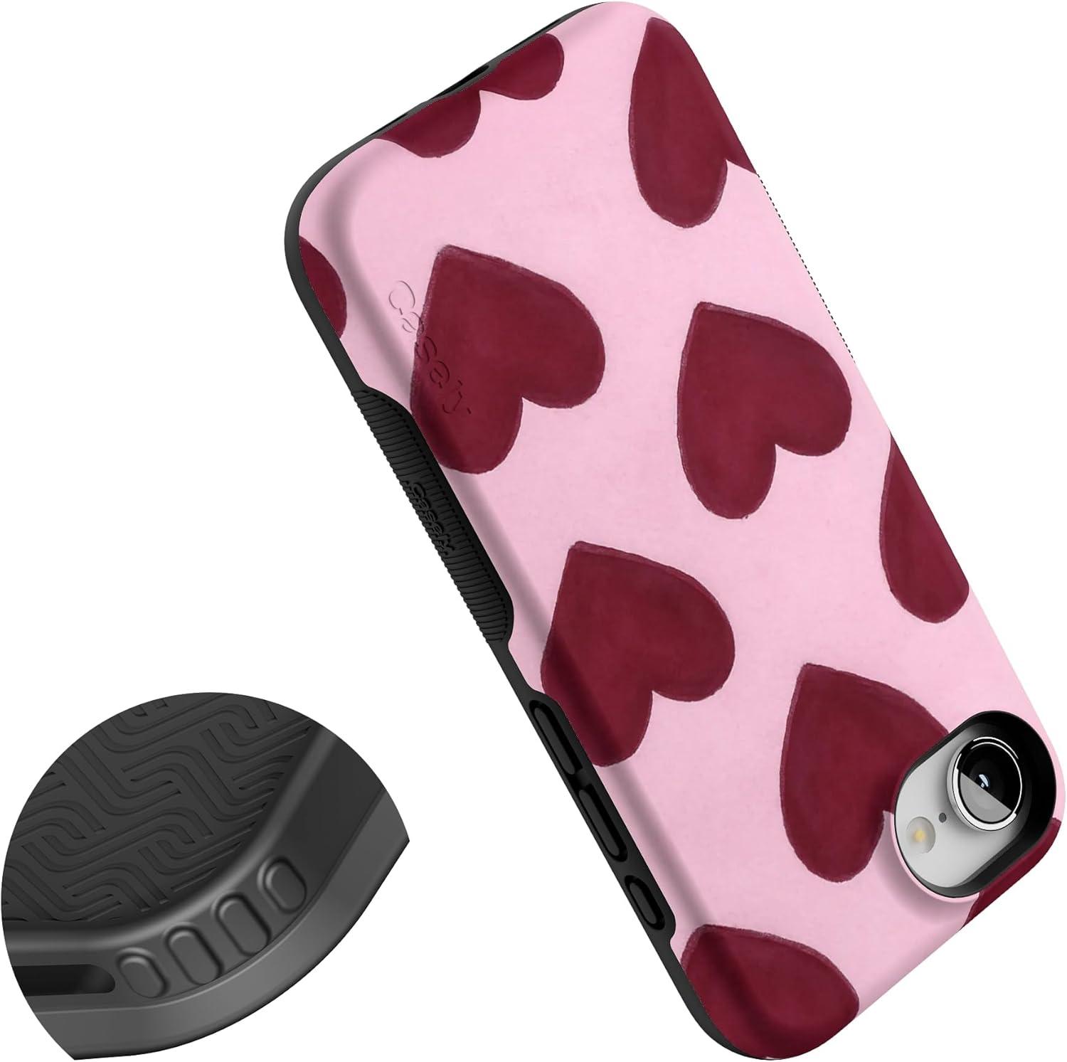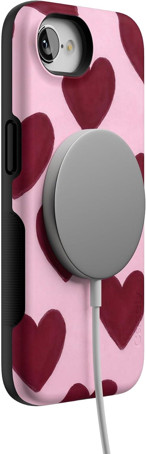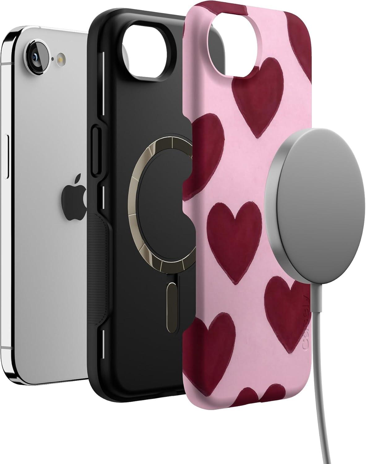 Casely iPhone 16e Case | Pretty in Pastel | Blush Stripes | Bold Protective Design | Compatible with MagSafe(Whole Lotta Love | Plum Hearts)