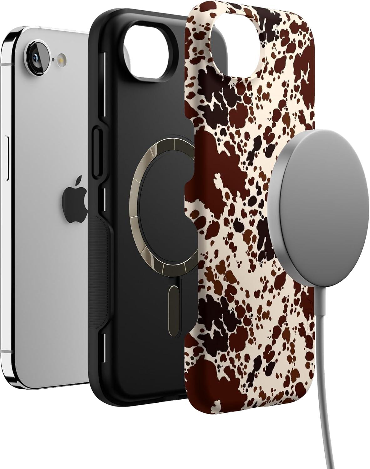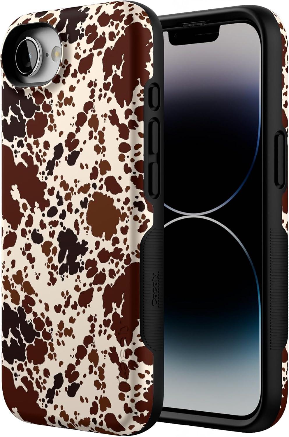 Casely iPhone 16e Case | Sunday in Brooklyn | Blue Stripes | Bold Protective Design | Compatible with MagSafe(Cowgirl Envy | Cow Print)
