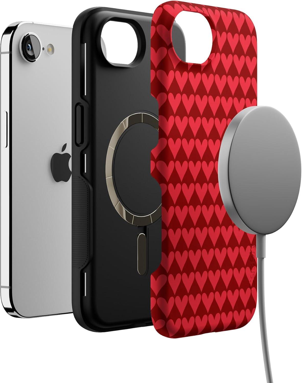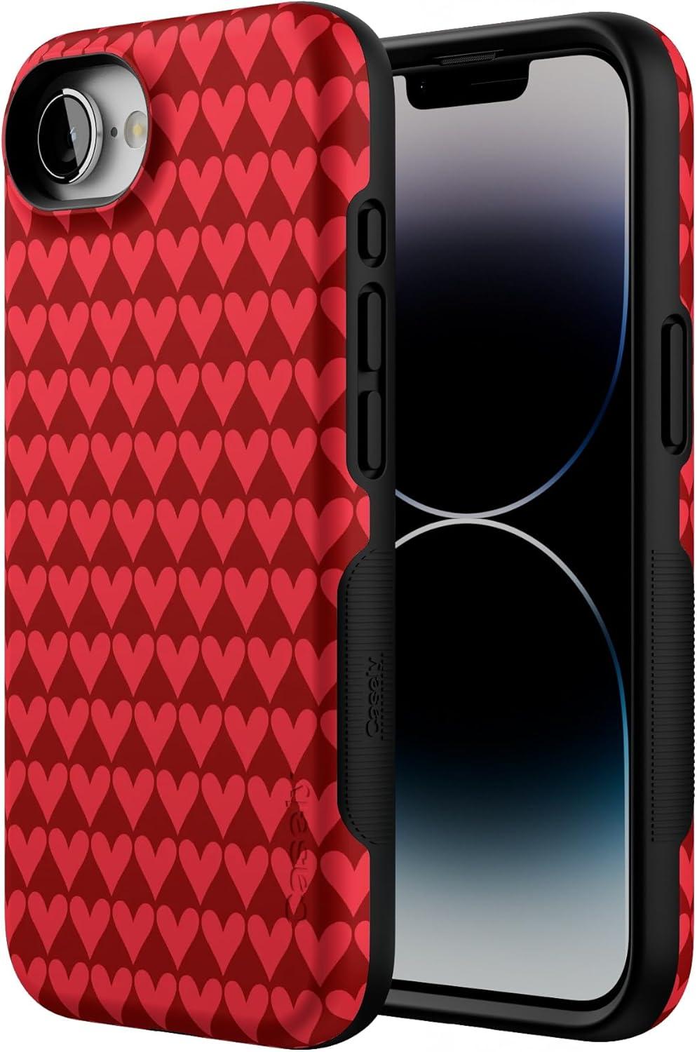 Casely iPhone 16e Case | Sunday in Brooklyn | Blue Stripes | Bold Protective Design | Compatible with MagSafe(Crazy in Love | Red Hearts)