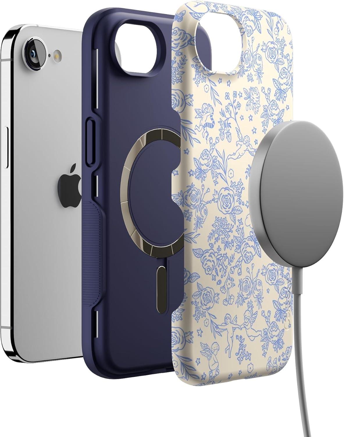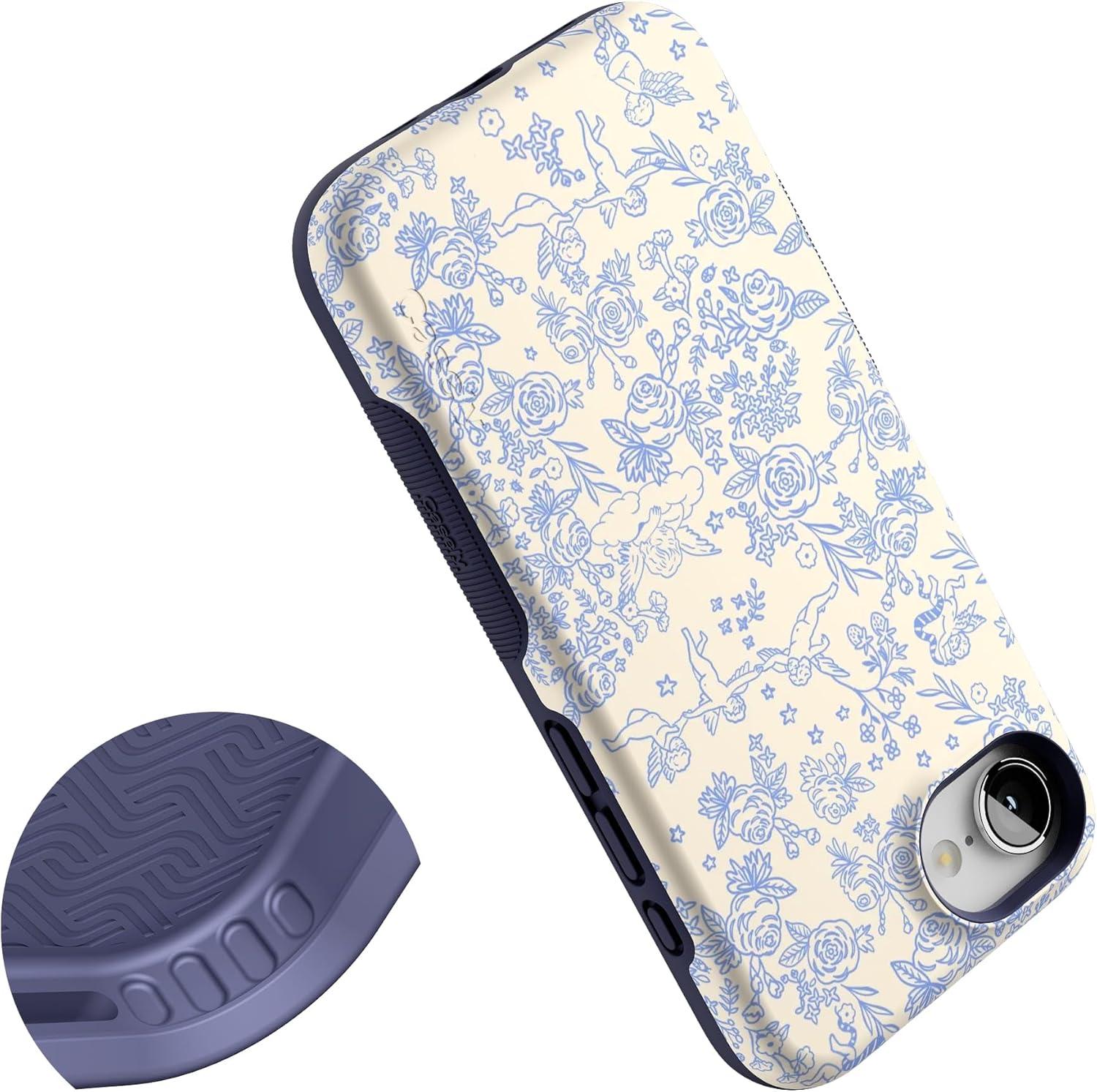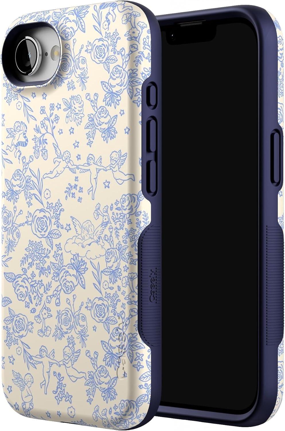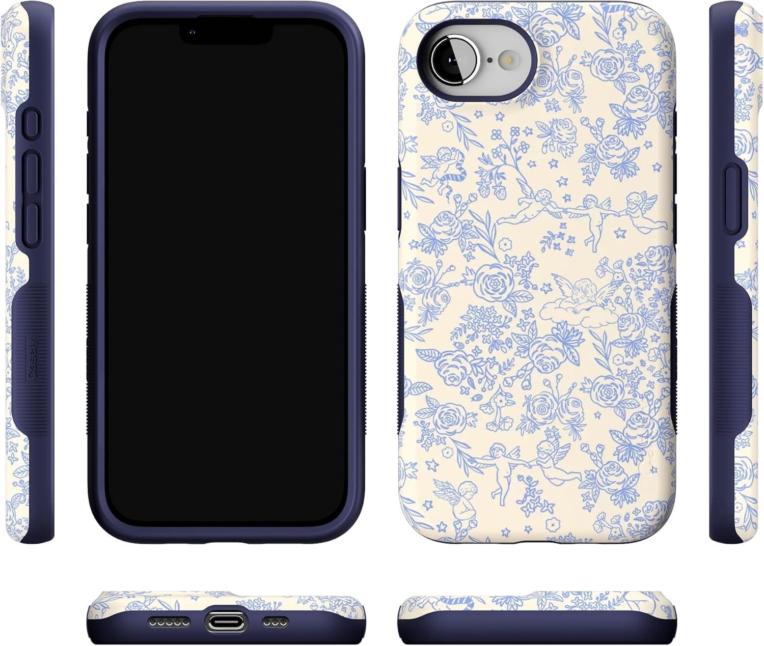 Casely iPhone 16e Case | Sunday in Brooklyn | Blue Stripes | Bold Protective Design | Compatible with MagSafe(Cupid’s Canvas | Periwinkle Floral)