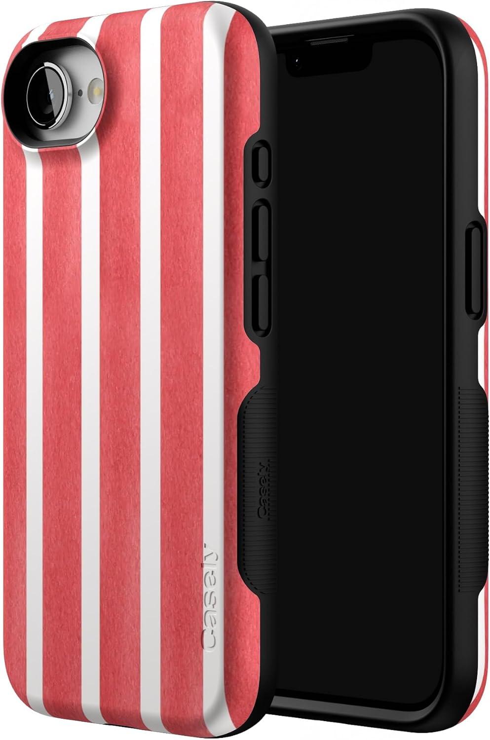 Casely iPhone 16e Case | Sunday in Brooklyn | Blue Stripes | Bold Protective Design | Compatible with MagSafe(East Coast Summer | Red Stripes)