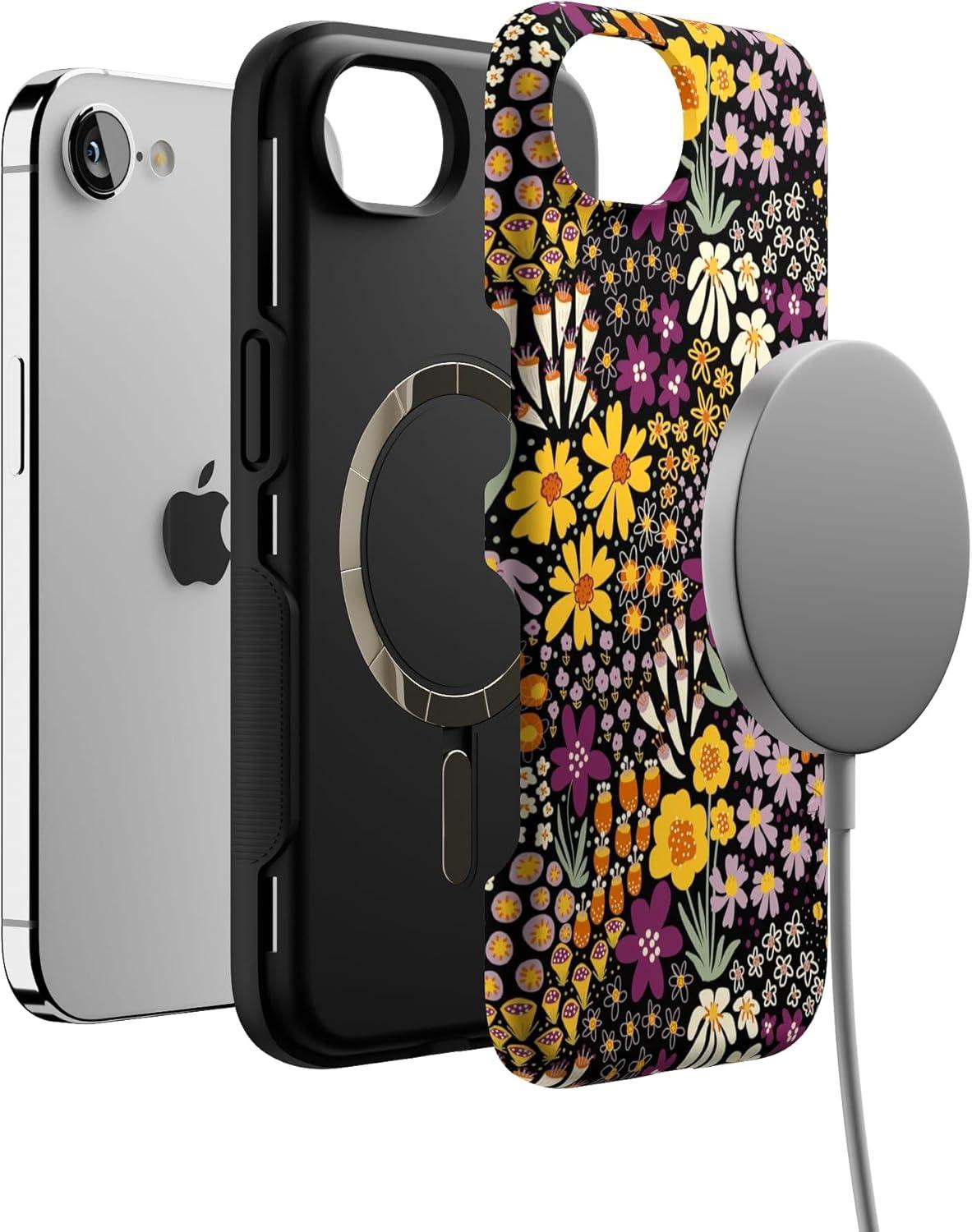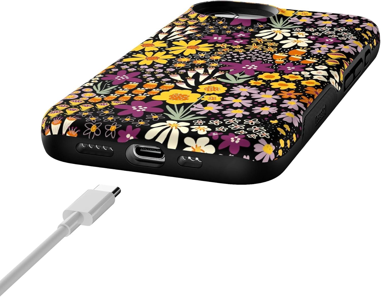Casely iPhone 16e Case | Sunday in Brooklyn | Blue Stripes | Bold Protective Design | Compatible with MagSafe(Falling for You | Plum Floral)