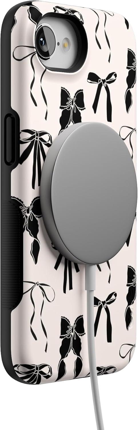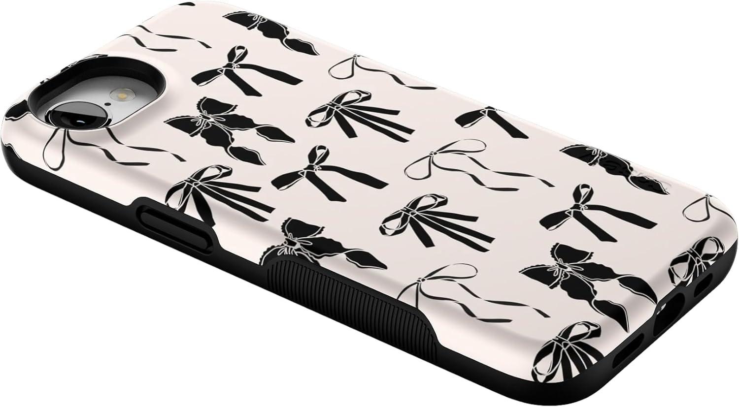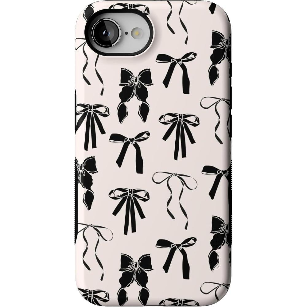 Casely iPhone 16e Case | Sunday in Brooklyn | Blue Stripes | Bold Protective Design | Compatible with MagSafe(Goth Girlie | Black Bows)