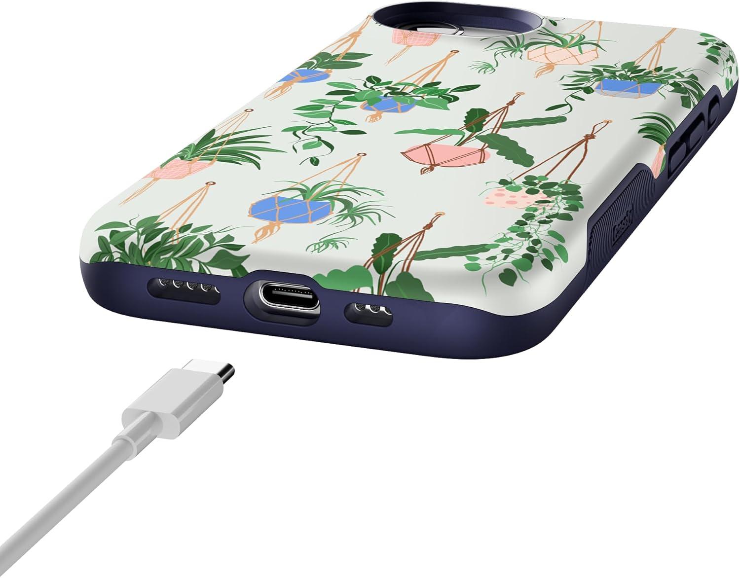 Casely iPhone 16e Case | Sunday in Brooklyn | Blue Stripes | Bold Protective Design | Compatible with MagSafe(Hanging Around | Potted Plants Floral)