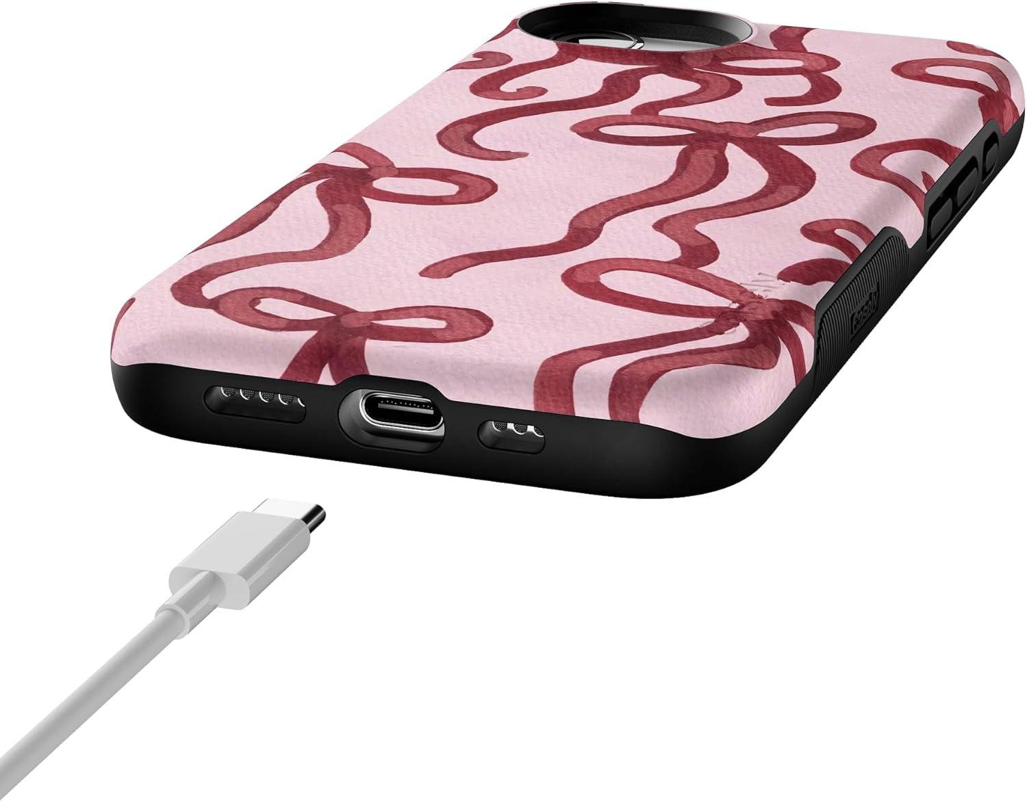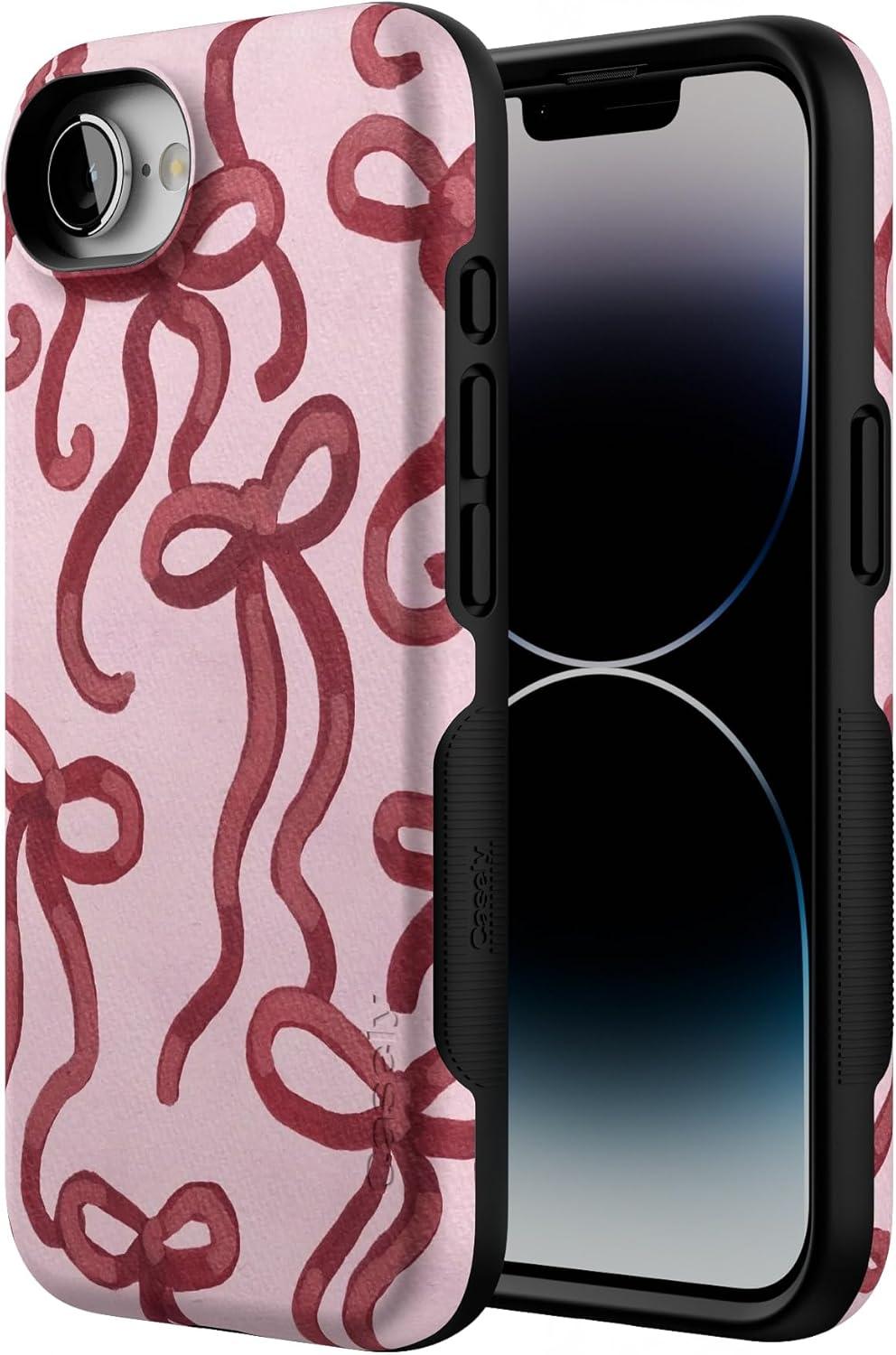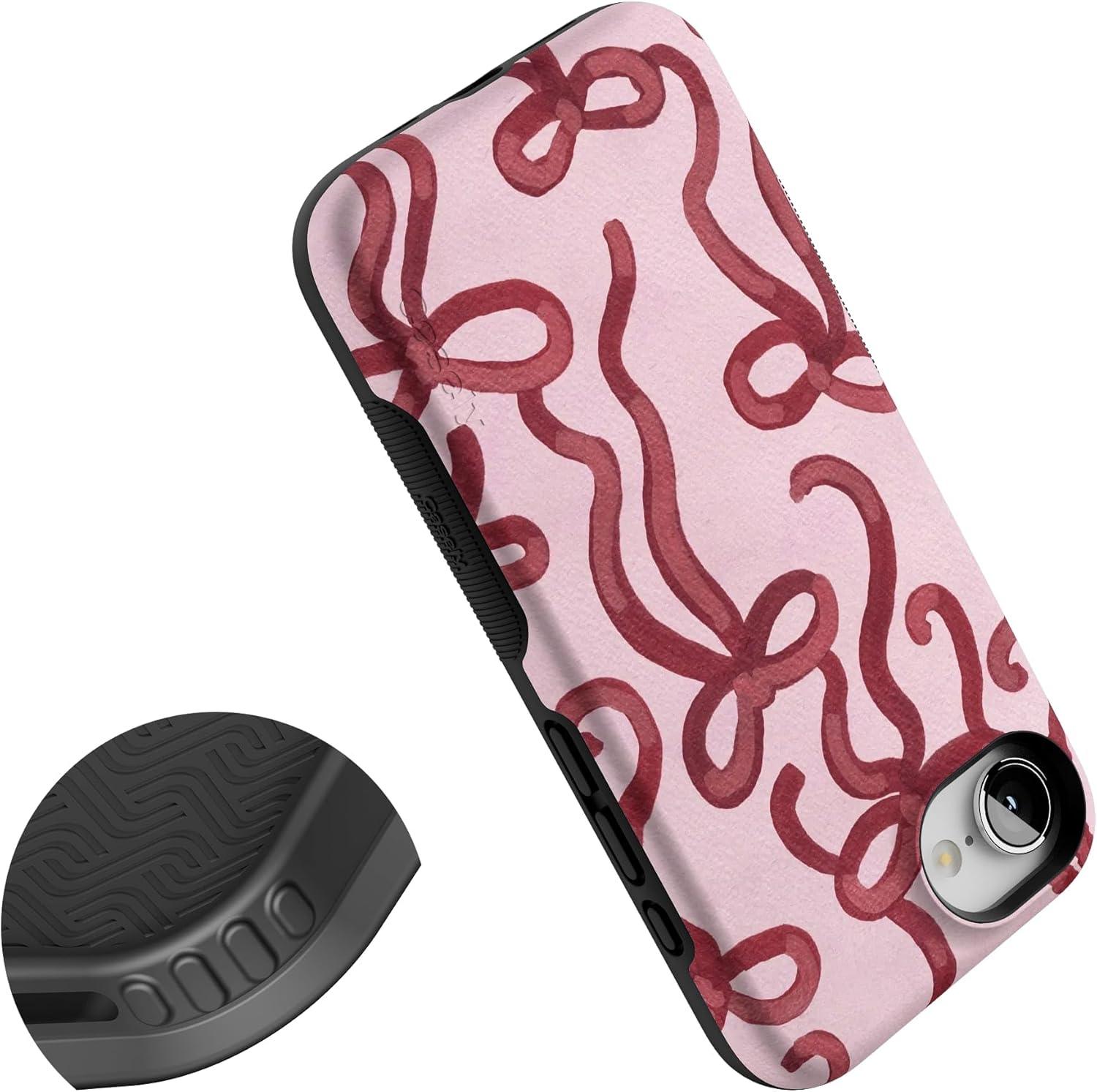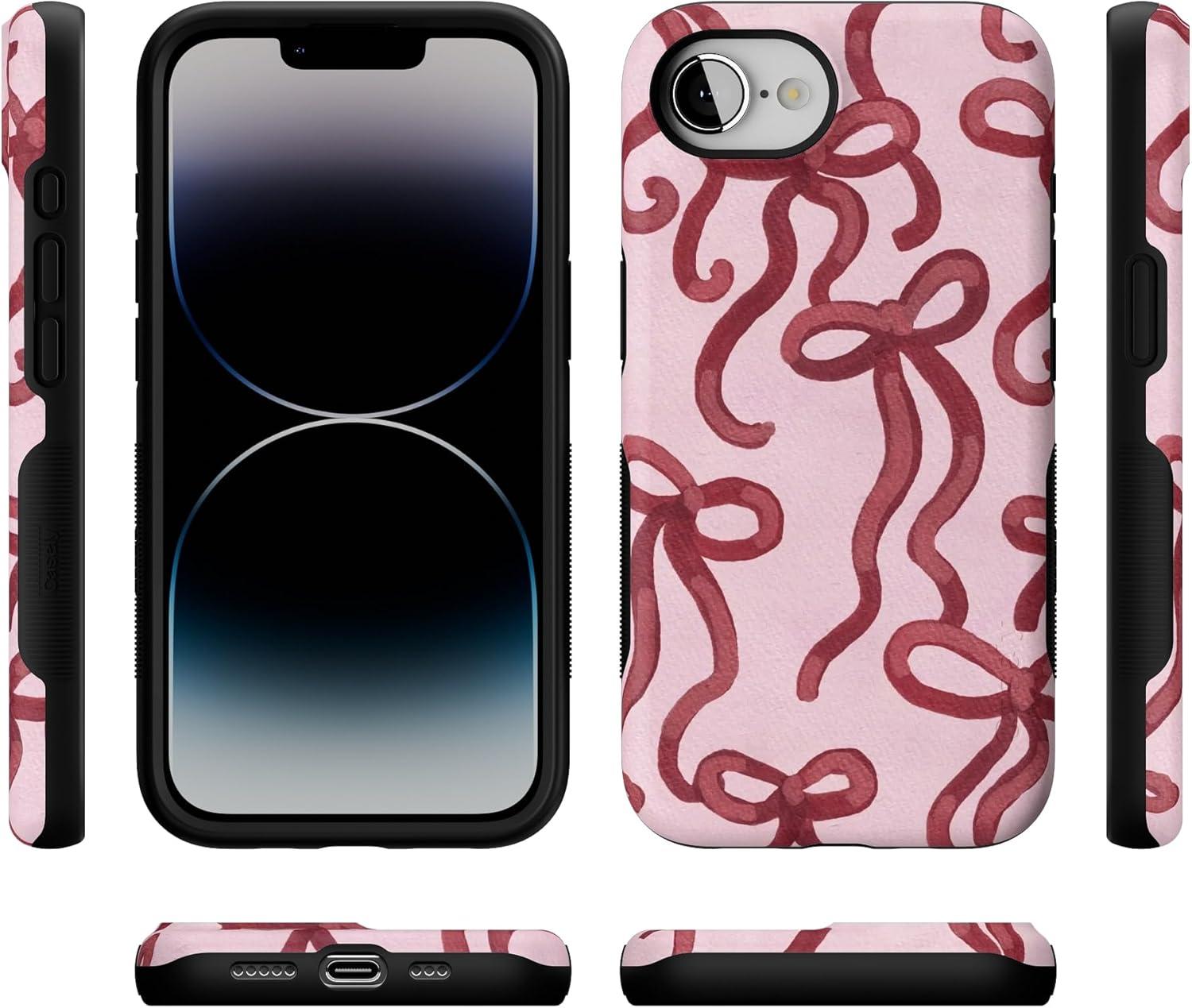 Casely iPhone 16e Case | Sunday in Brooklyn | Blue Stripes | Bold Protective Design | Compatible with MagSafe(Love Me Knot | Mauve Bow)