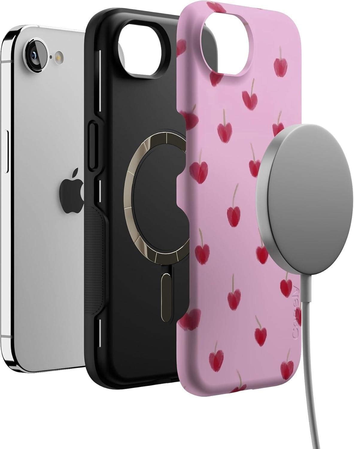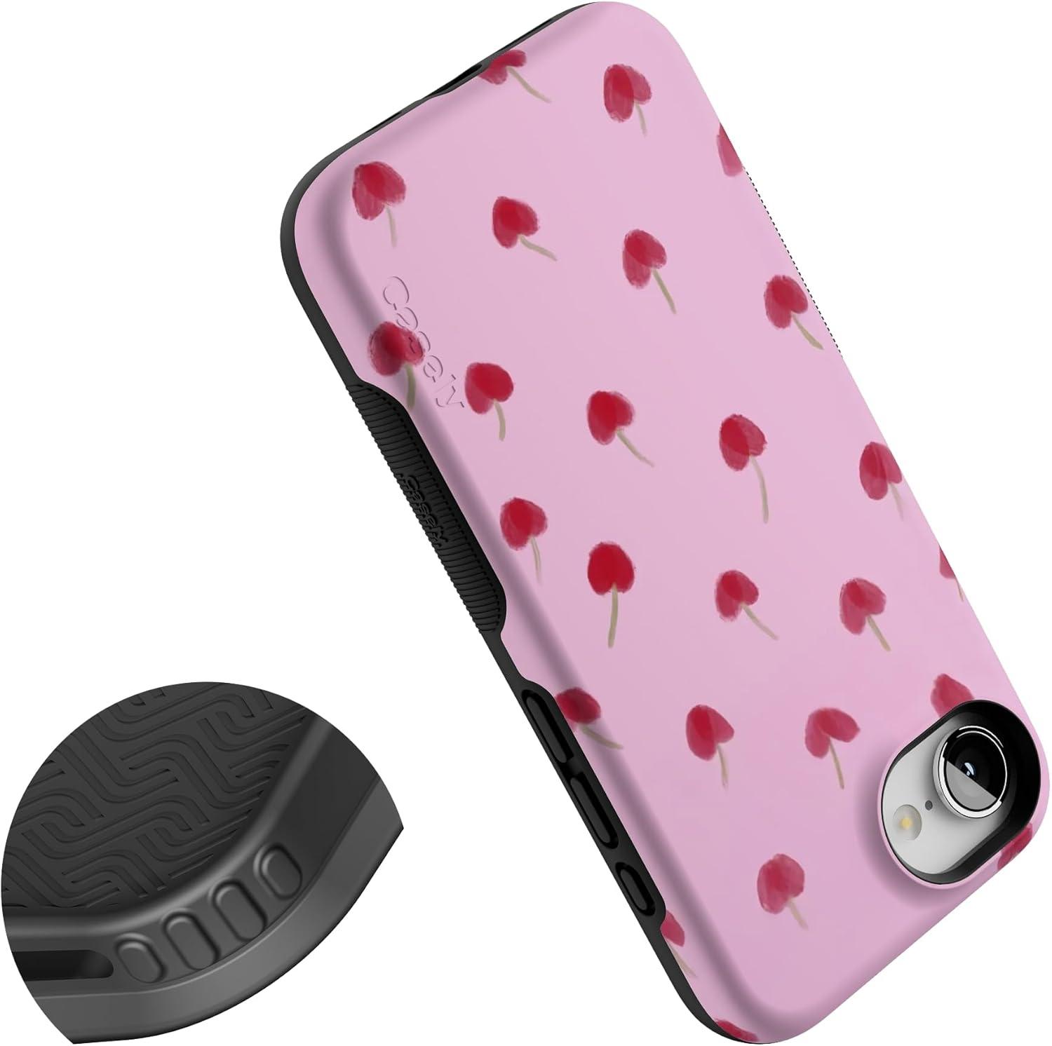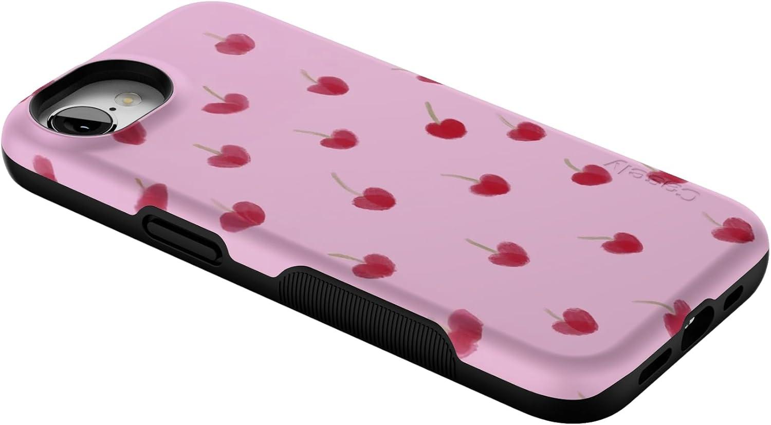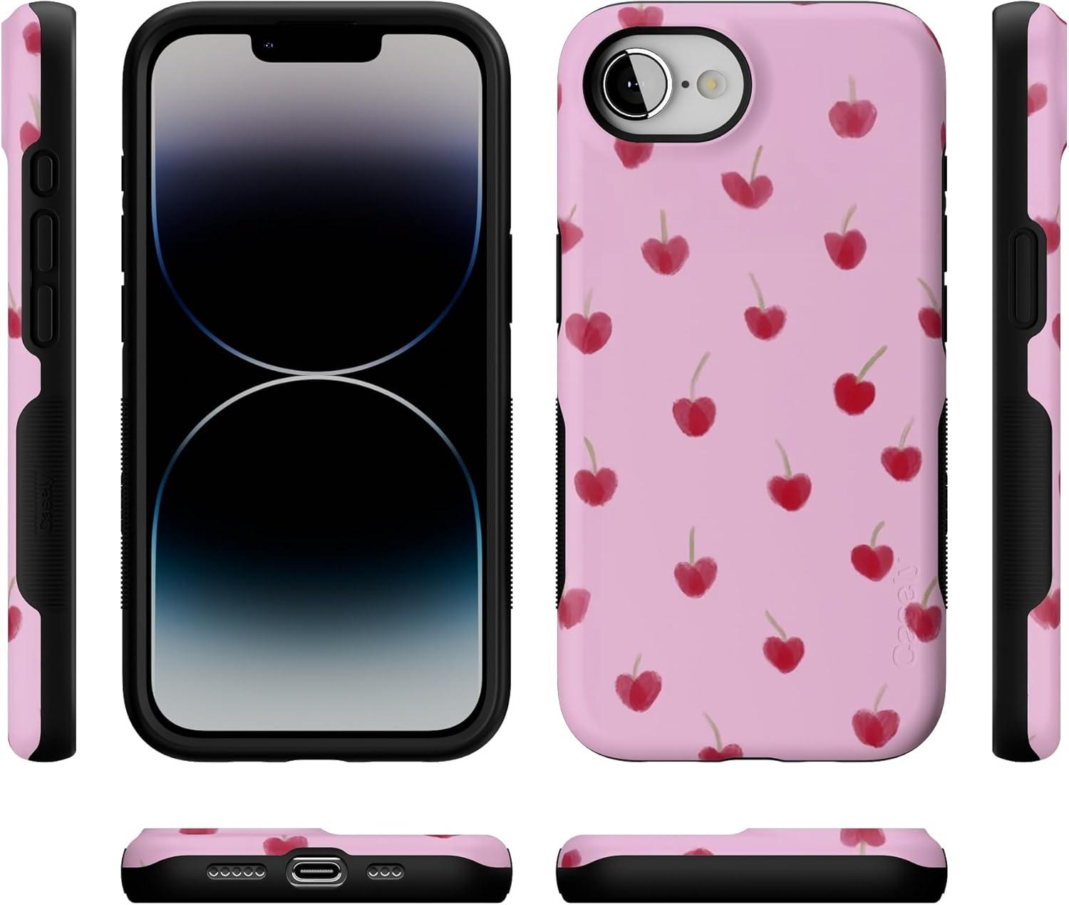 Casely iPhone 16e Case | Sunday in Brooklyn | Blue Stripes | Bold Protective Design | Compatible with MagSafe(Very Cherry | Painted Cherries)