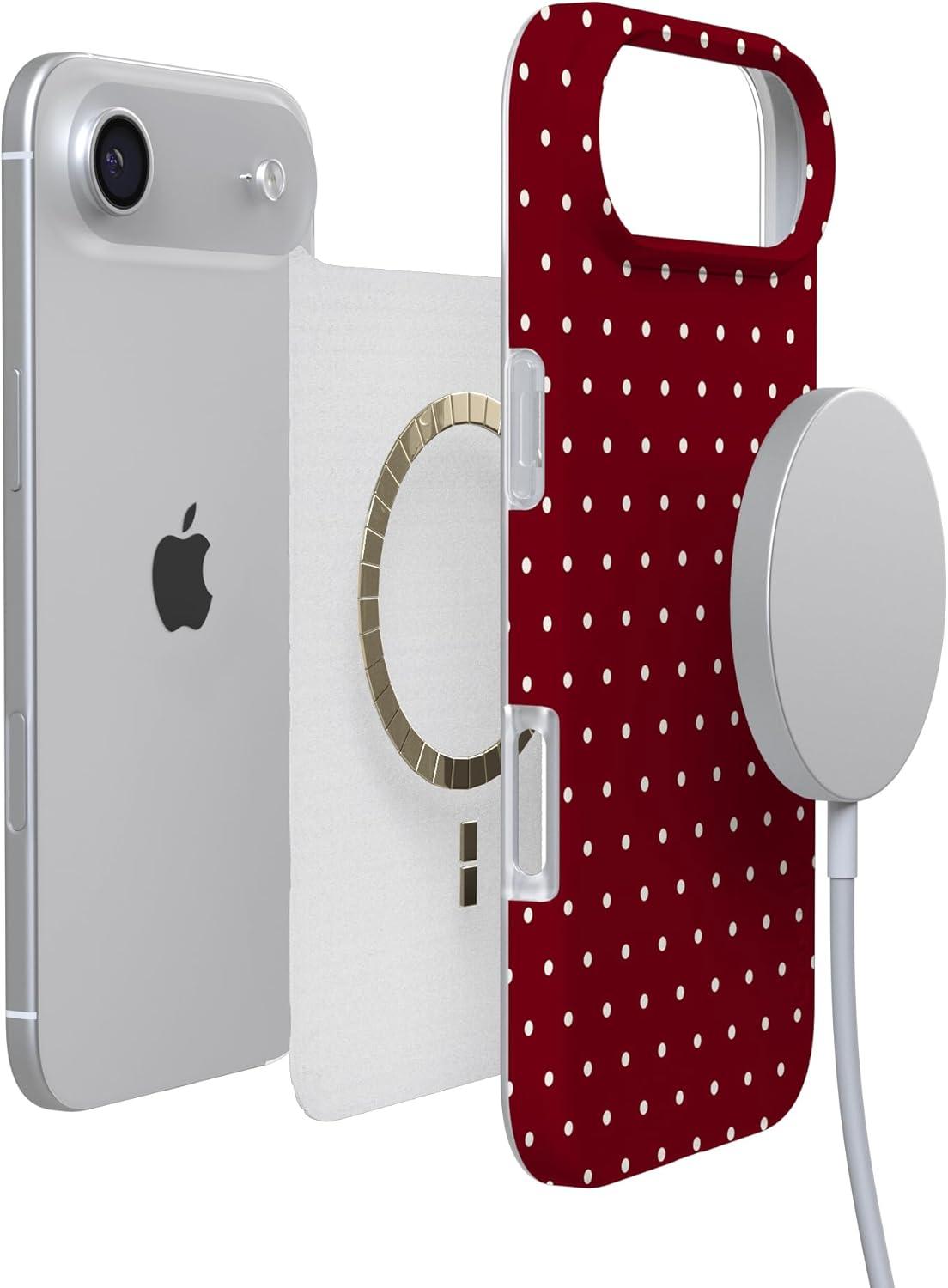Casely iPhone 17 Air Case | Coastal Checkers | Pura Vida | Compatible with MagSafe | Classic Ultra Slim Design(On the Dot | Maroon Polka Dot)