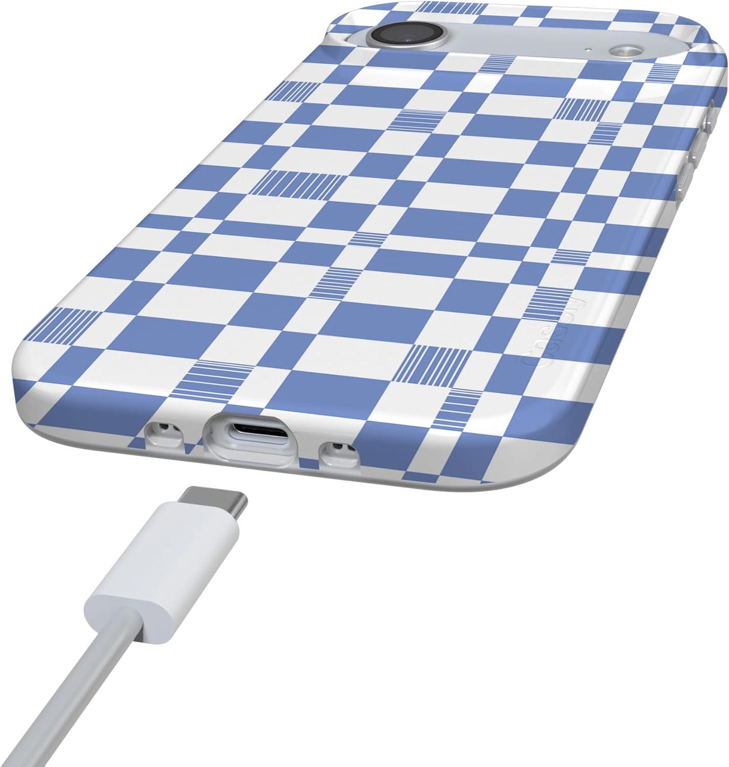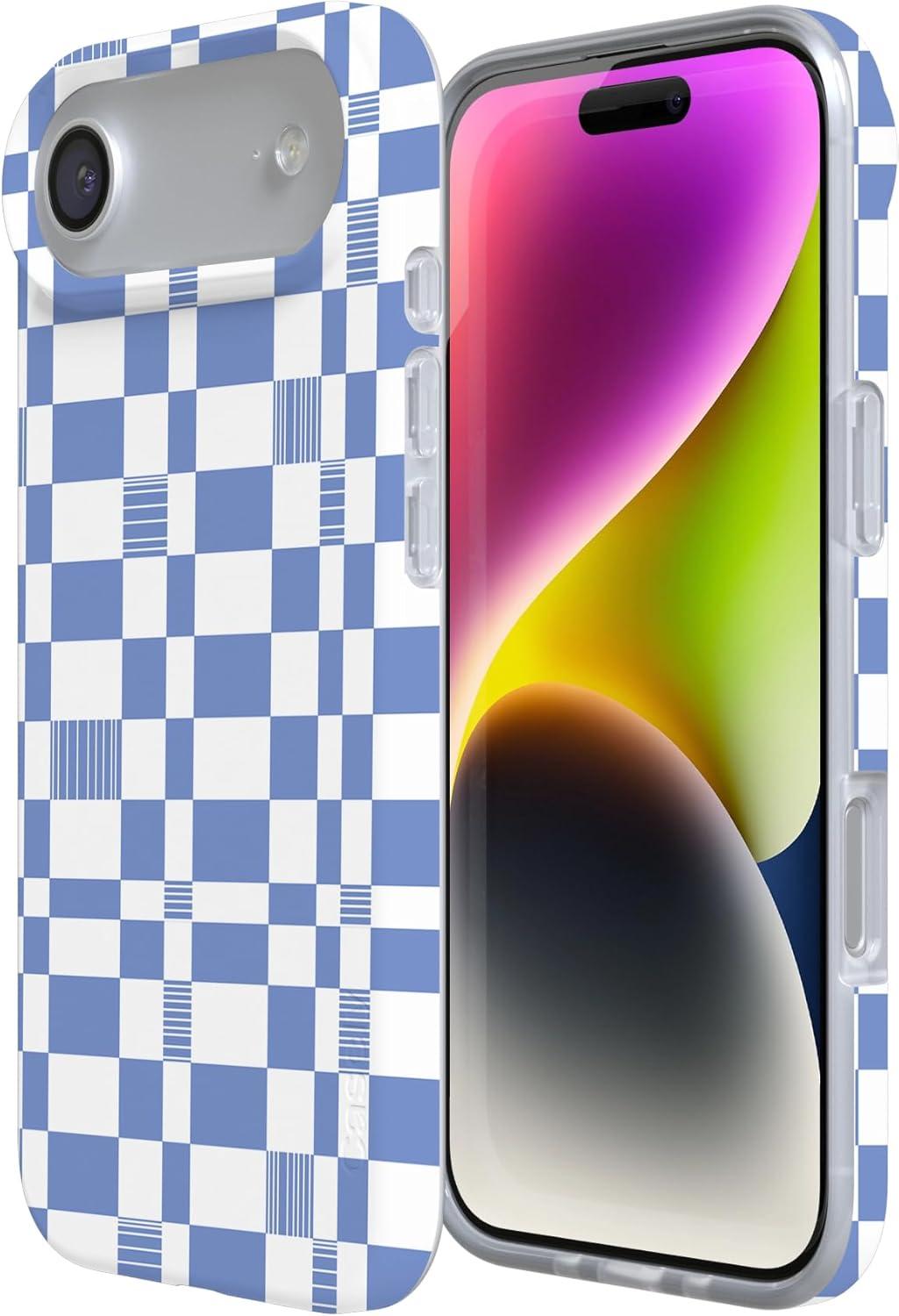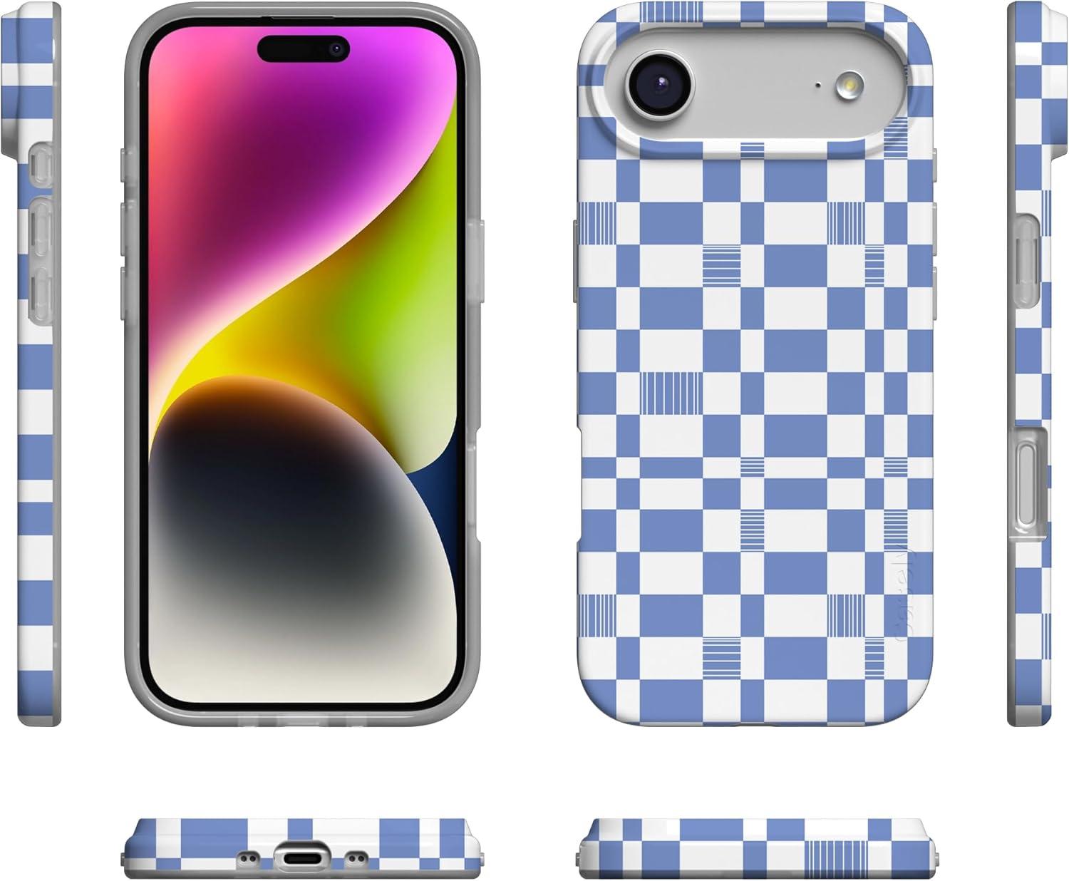 Casely iPhone 17 Air Case | Coastal Checkers | Pura Vida | Compatible with MagSafe | Classic Ultra Slim Design(Reality Check | Periwinkle)