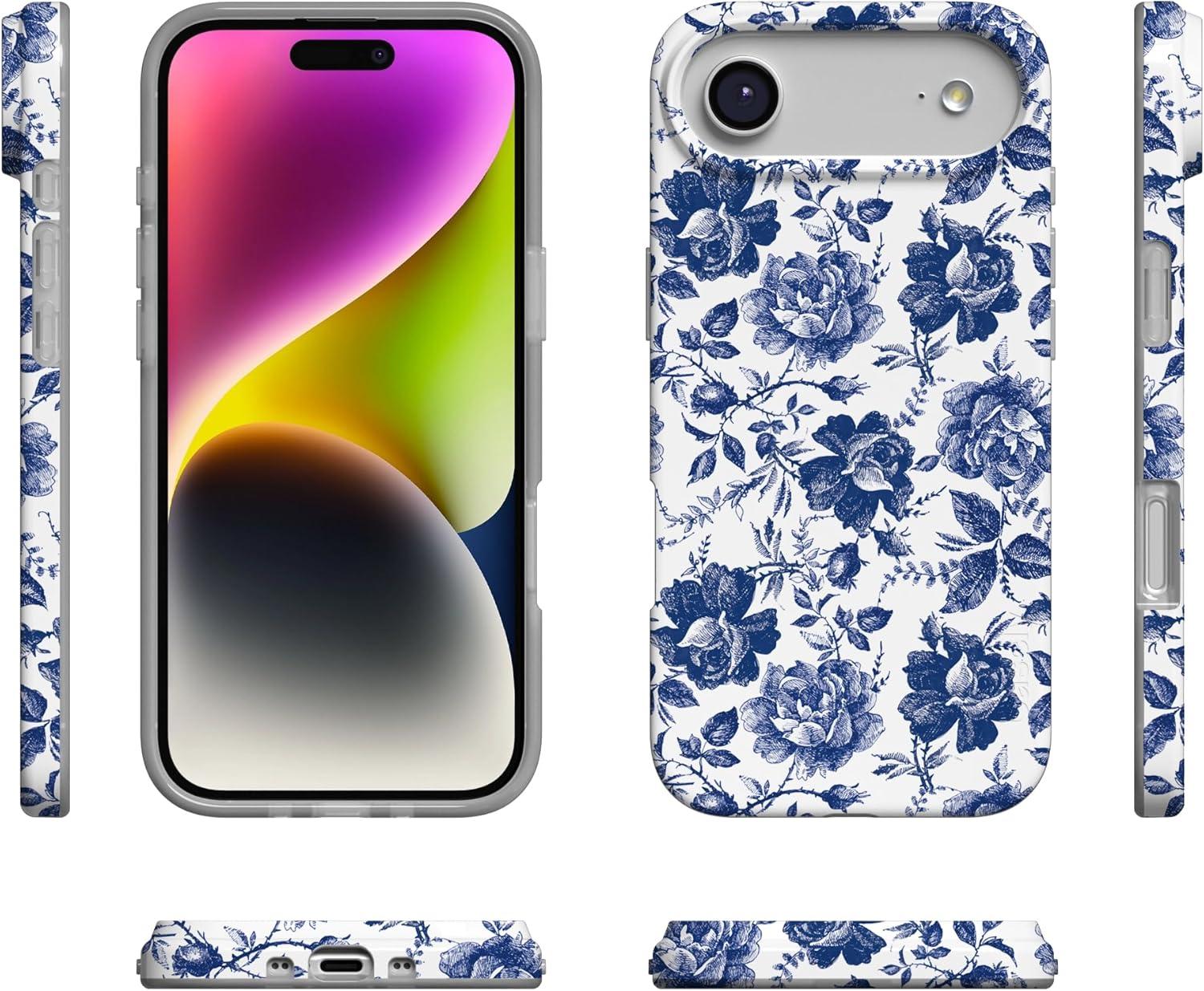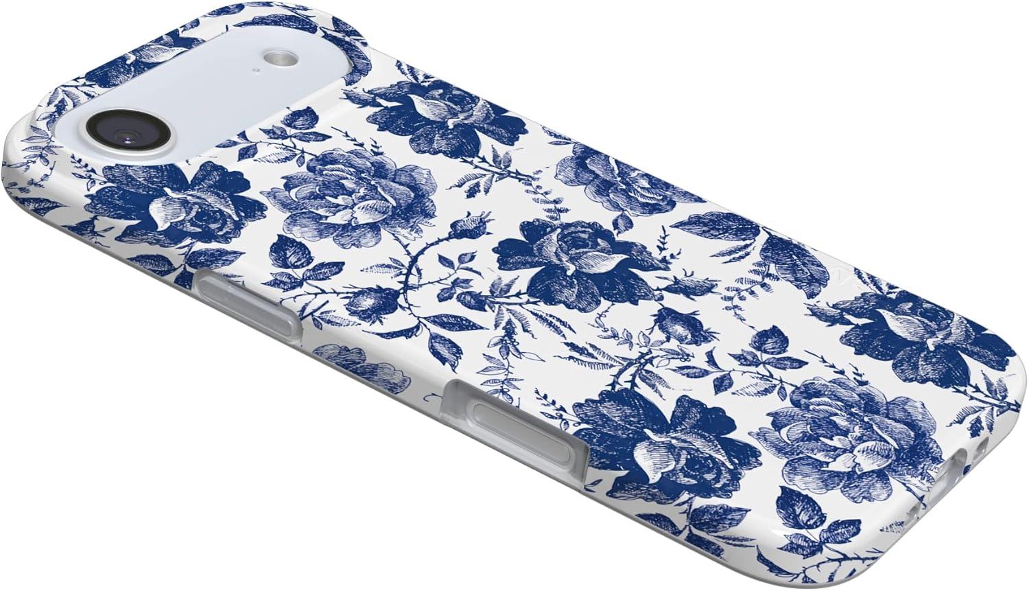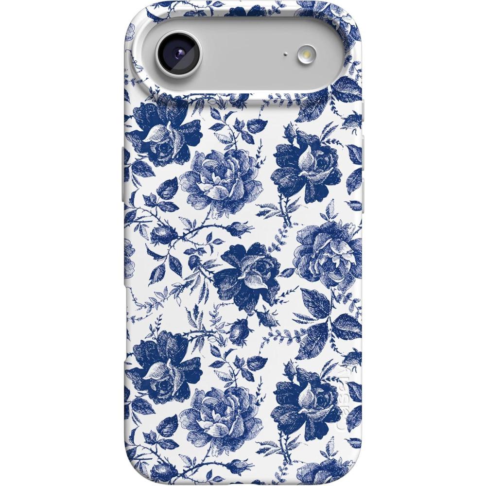 Casely iPhone 17 Air Case | Coastal Checkers | Pura Vida | Compatible with MagSafe | Classic Ultra Slim Design(Rose to Fame | Blue & White Rose Floral)