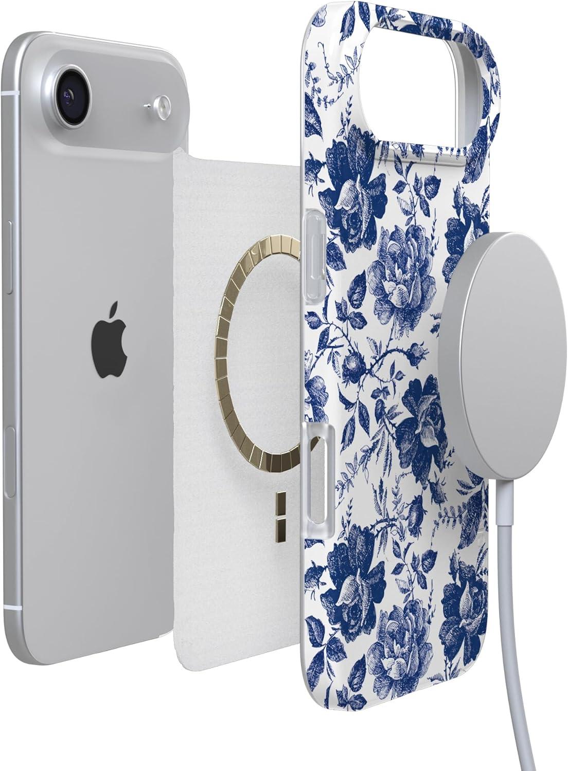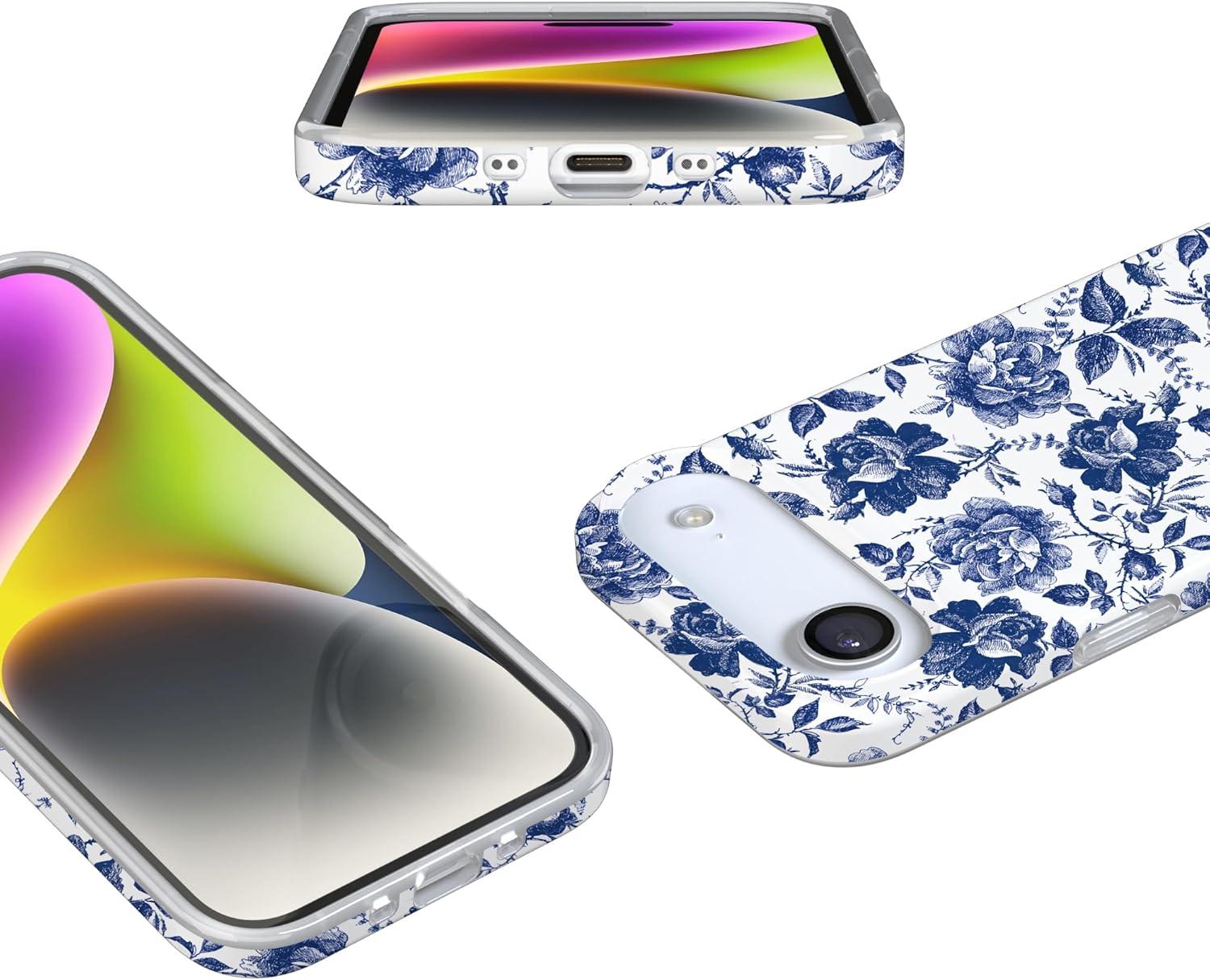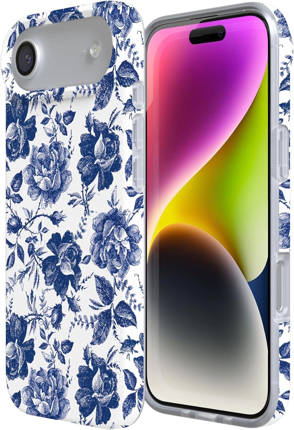 Casely iPhone 17 Air Case | Coastal Checkers | Pura Vida | Compatible with MagSafe | Classic Ultra Slim Design(Rose to Fame | Blue & White Rose Floral)