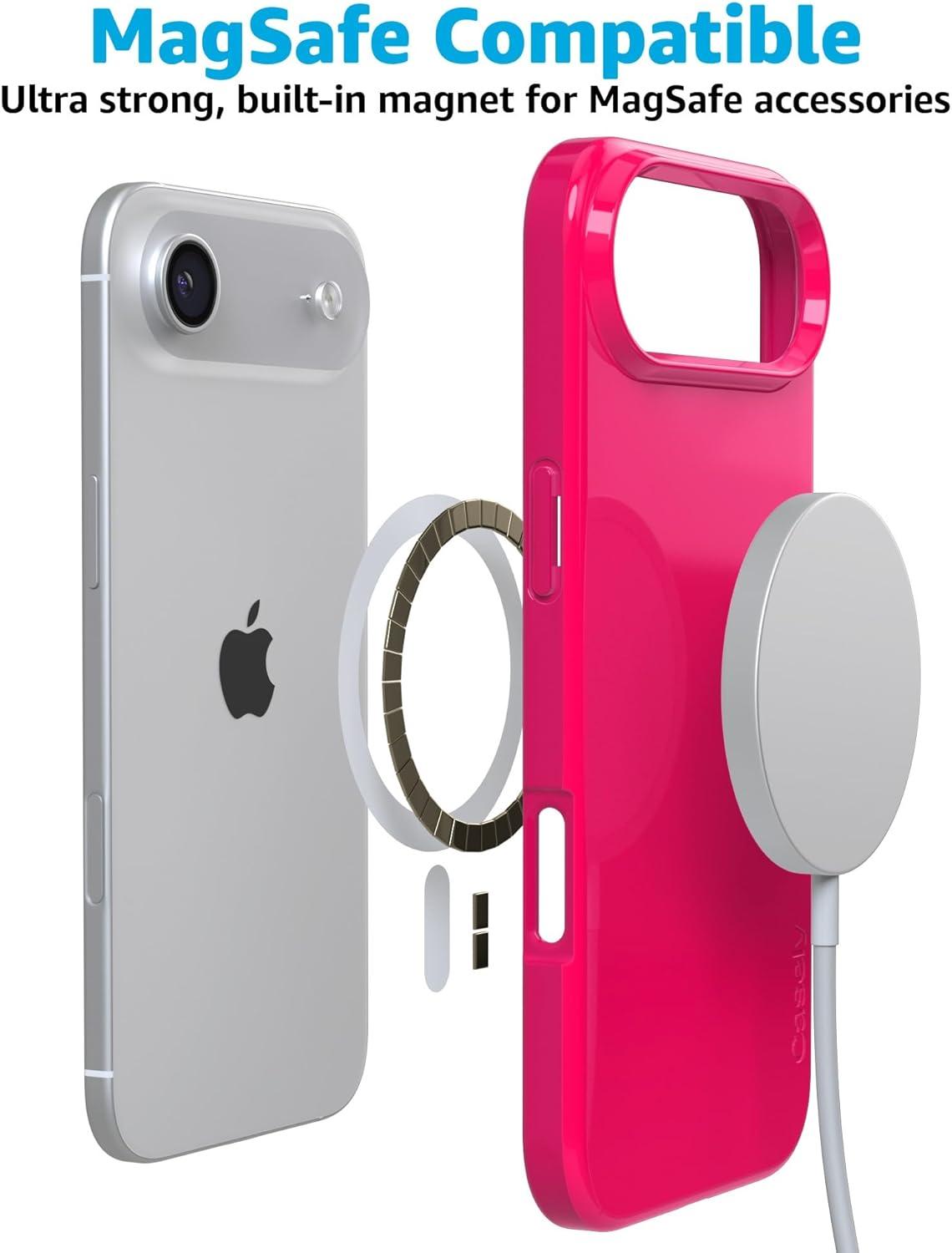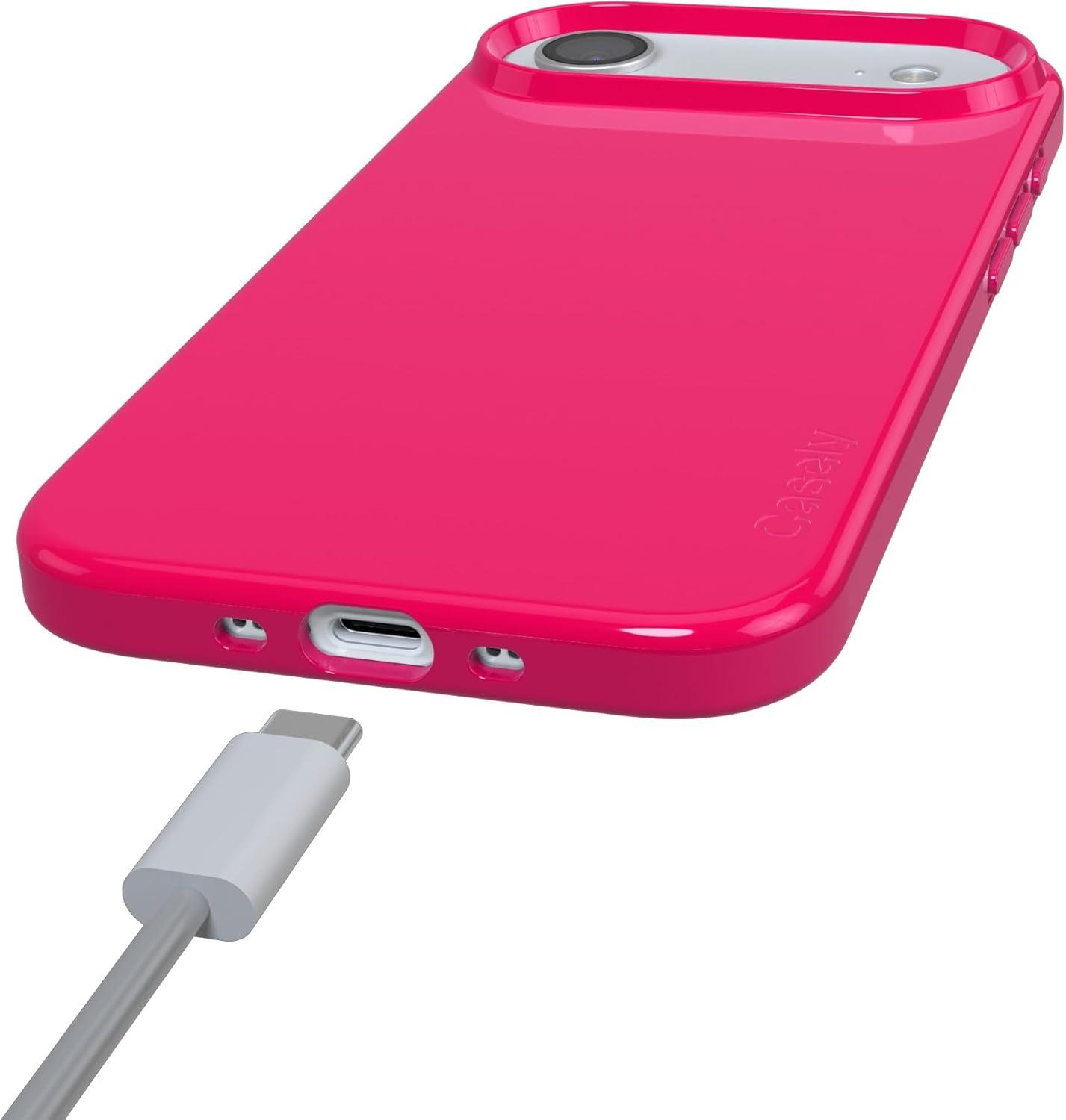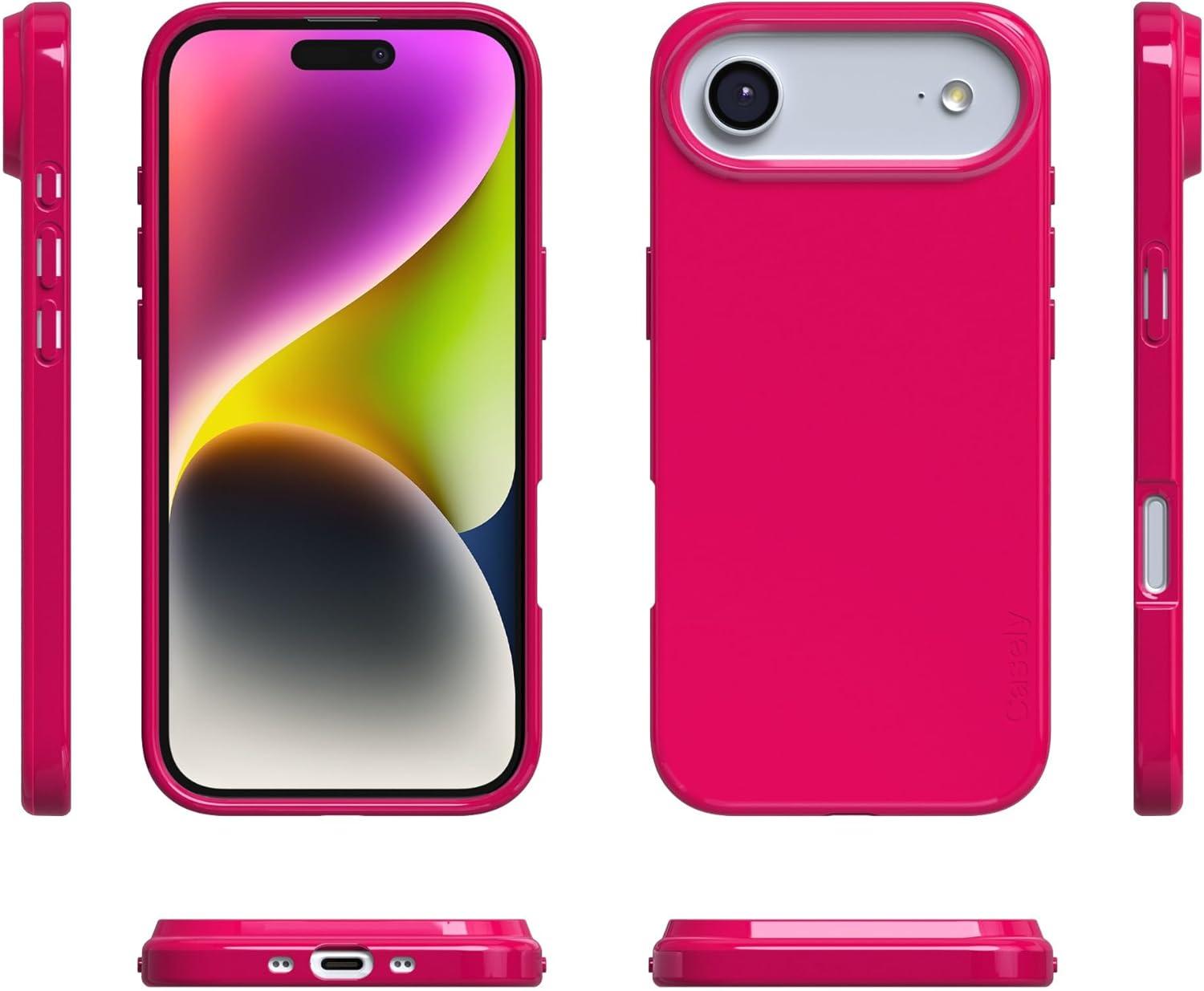 Casely iPhone 17 Air Case | Coastal Checkers | Pura Vida | Compatible with MagSafe | Classic Ultra Slim Design(Think Pink | Solid Neon Pink)